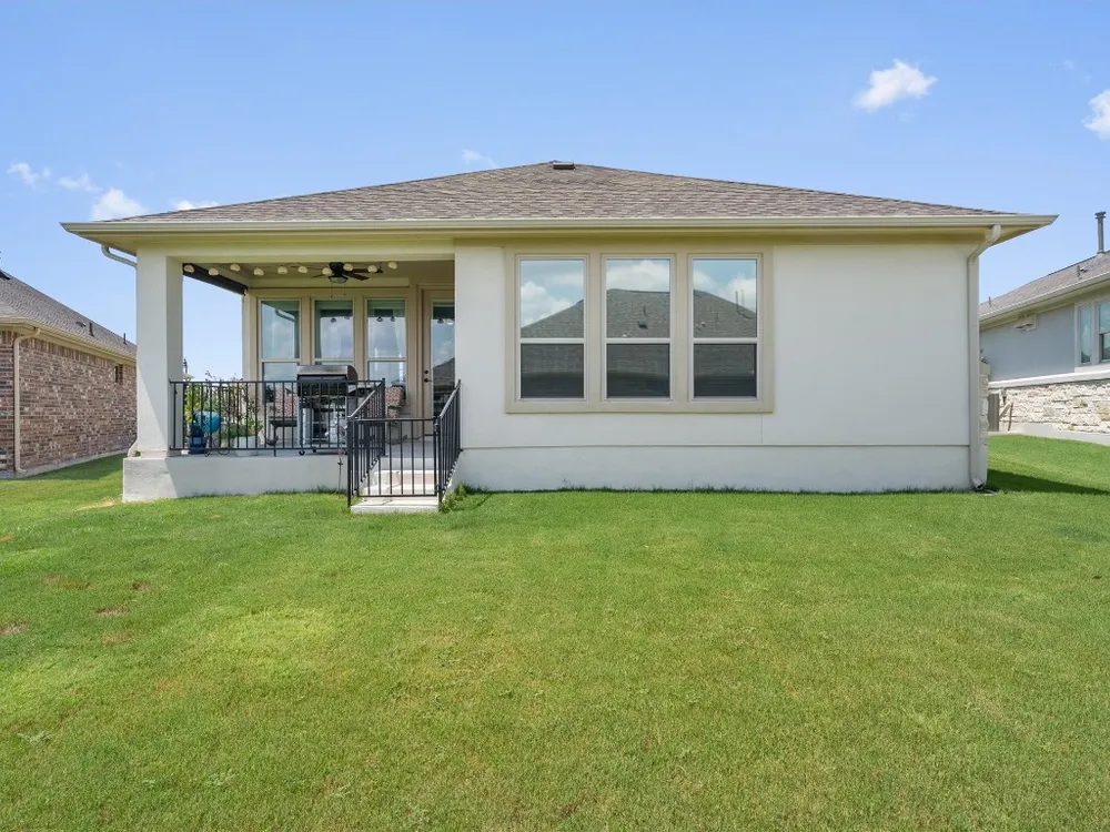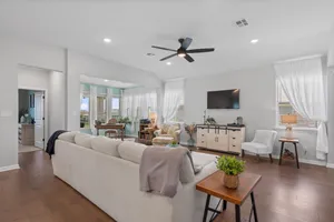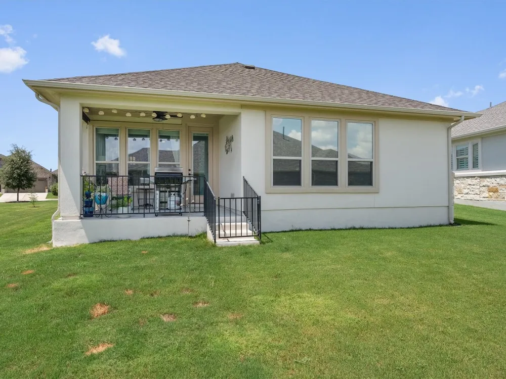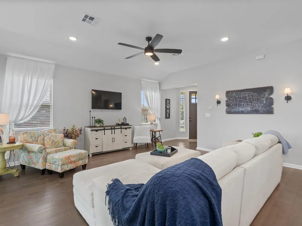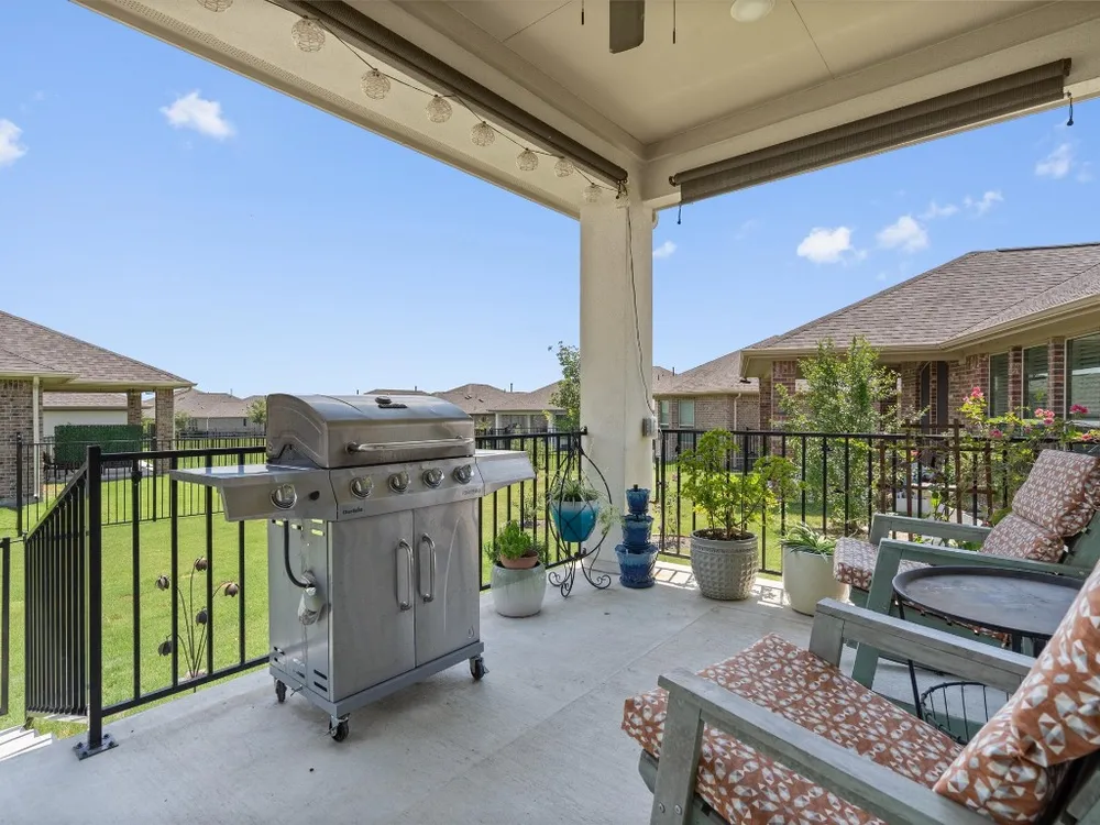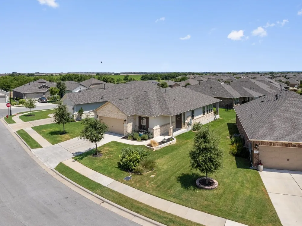 Welcome to your next chapter in the vibrant 55+ community of Heritage at Vizcaya—where charm, comfort, and convenience come together beautifully. From the moment you arrive, you’ll appreciate the easy-care landscaping framing the exterior of this meticulously maintained home with a 2.5 car garage. Step inside and you’re greeted by an open, light-filled floor plan with wood floors that flow through the main living areas. The kitchen is a true showpiece, seamlessly connected to the living and dining areas. It boasts gleaming quartz countertops, an island with bar seating perfect for casual meals, neutral cabinetry with convenient pullout drawers, stainless steel appliances, and a striking hexagon tile backsplash. A spacious pantry completes the space, making both cooking and entertaining effortless and enjoyable. Just off the living area, you’ll find a flexible space ready to become whatever your heart desires—turn it into a reading nook, a sun room, an office, a craft space, or another seating area. Your primary suite is the perfect retreat, featuring a dual vanity, walk-in shower with built-in seating, and a roomy walk-in closet. The additional bedroom and nearby full bath give you space and flexibility for guests or a home office. Out back, the covered patio is the perfect place to sip your morning coffee or unwind in the evening breeze, with roller shades providing shade and privacy whenever you need it. And the best part? Heritage at Vizcaya offers a lifestyle as appealing as the home itself—enjoy scenic walking trails, a well-equipped fitness center, bocce ball and pickleball courts, a heated resort-style pool, and a lively calendar of events that make it easy to connect with neighbors. Conveniently located with quick access to both TX-130 and I-35, you’re also just minutes from shopping centers, grocery stores, and a variety of dining options. This is more than a house—it’s a place to truly enjoy life.