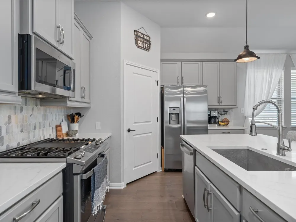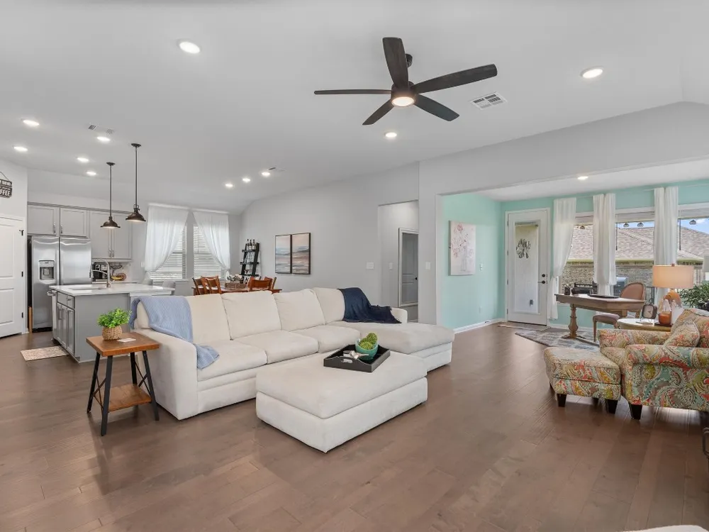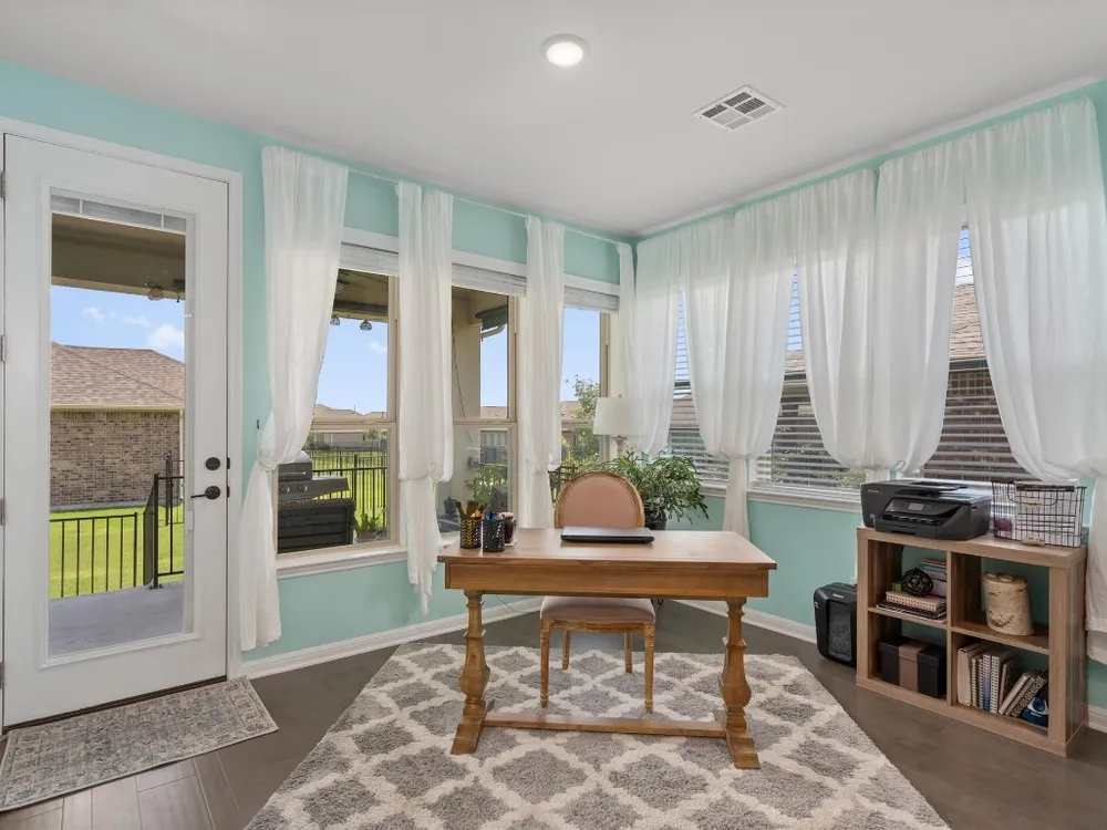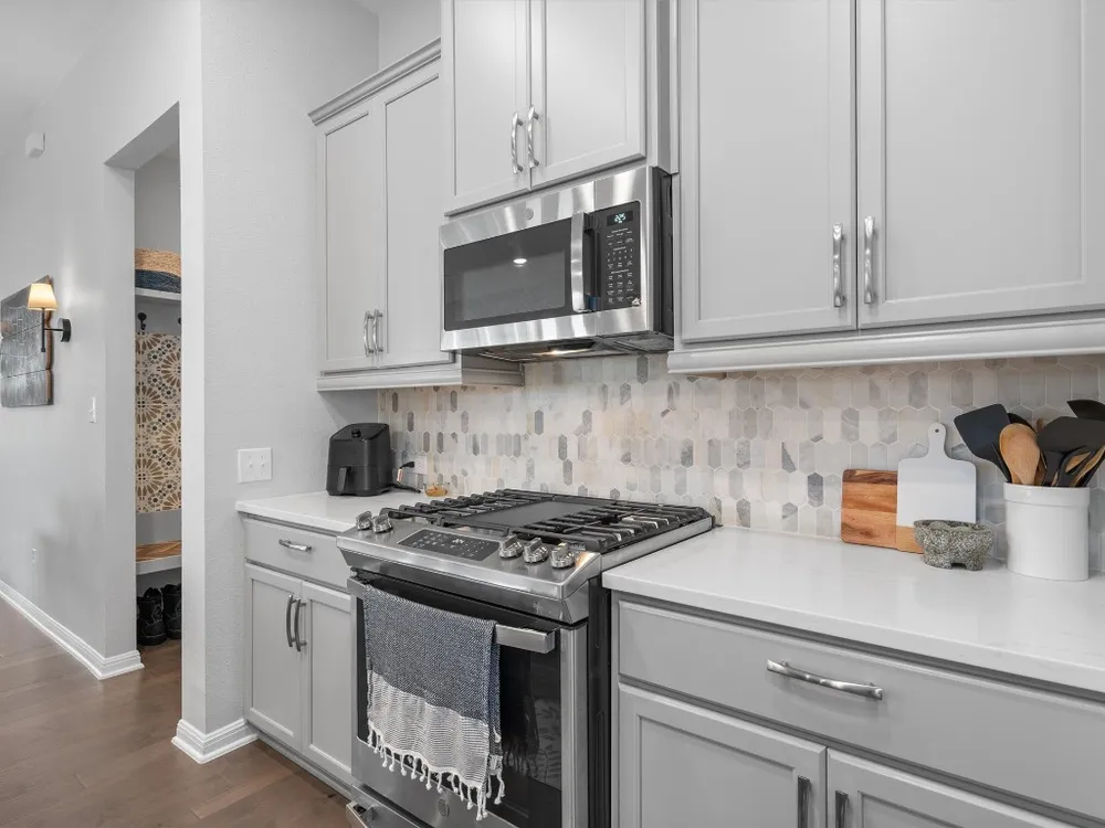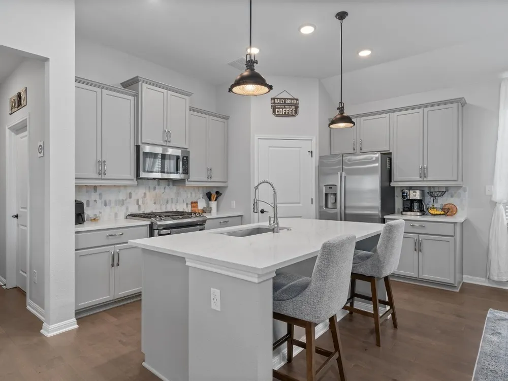 Welcome to your next chapter in the vibrant 55+ community of Heritage at Vizcaya—where charm, comfort, and convenience come together beautifully. From the moment you arrive, you’ll appreciate the easy-care landscaping framing the exterior of this meticulously maintained home with a 2.5 car garage. Step inside and you’re greeted by an open, light-filled floor plan with wood floors that flow through the main living areas. The kitchen is a true showpiece, seamlessly connected to the living and dining areas. It boasts gleaming quartz countertops, an island with bar seating perfect for casual meals, neutral cabinetry with convenient pullout drawers, stainless steel appliances, and a striking hexagon tile backsplash. A spacious pantry completes the space, making both cooking and entertaining effortless and enjoyable. Just off the living area, you’ll find a flexible space ready to become whatever your heart desires—turn it into a reading nook, a sun room, an office, a craft space, or another seating area. Your primary suite is the perfect retreat, featuring a dual vanity, walk-in shower with built-in seating, and a roomy walk-in closet. The additional bedroom and nearby full bath give you space and flexibility for guests or a home office. Out back, the covered patio is the perfect place to sip your morning coffee or unwind in the evening breeze, with roller shades providing shade and privacy whenever you need it. And the best part? Heritage at Vizcaya offers a lifestyle as appealing as the home itself—enjoy scenic walking trails, a well-equipped fitness center, bocce ball and pickleball courts, a heated resort-style pool, and a lively calendar of events that make it easy to connect with neighbors. Conveniently located with quick access to both TX-130 and I-35, you’re also just minutes from shopping centers, grocery stores, and a variety of dining options. This is more than a house—it’s a place to truly enjoy life.