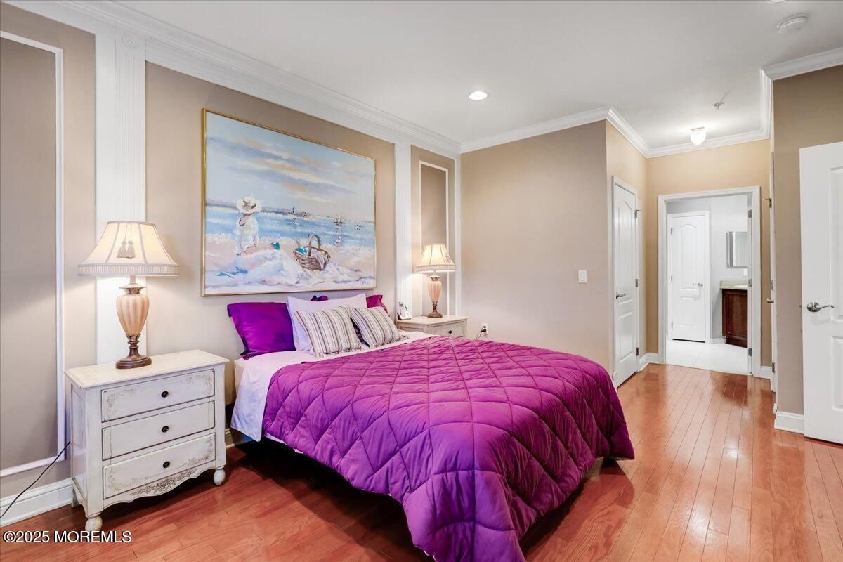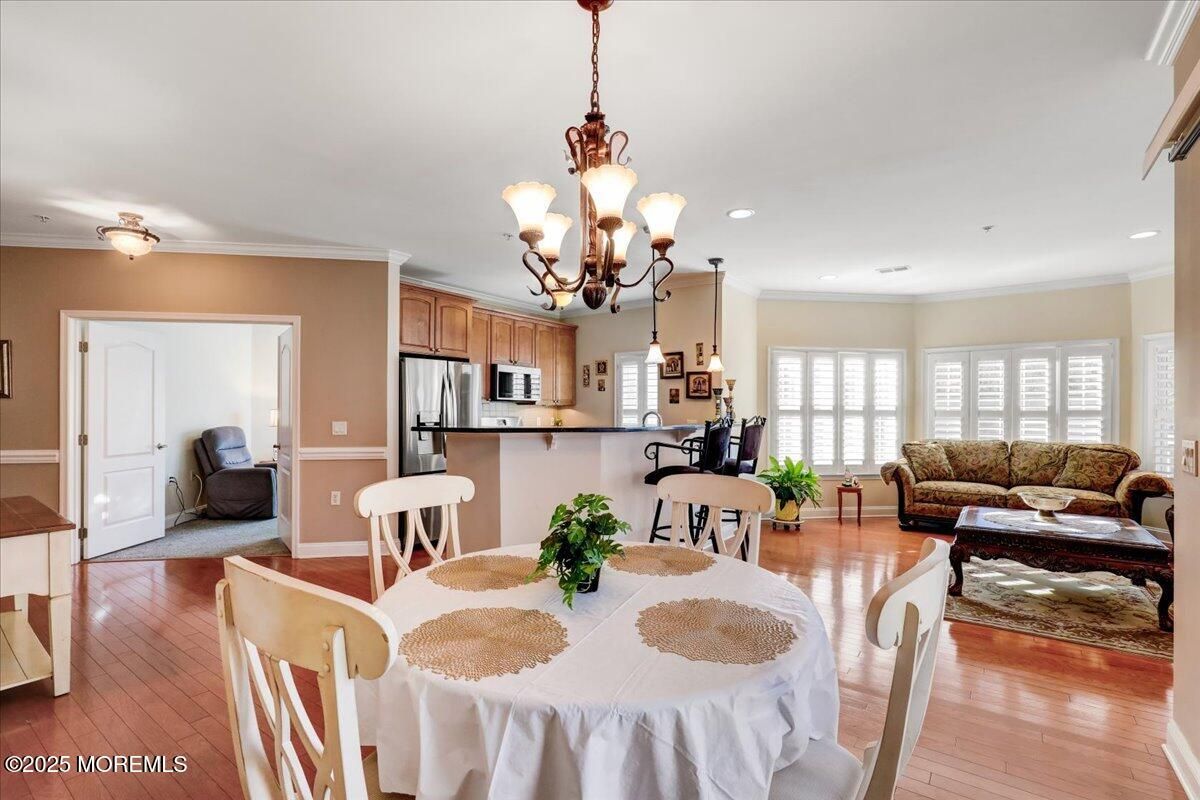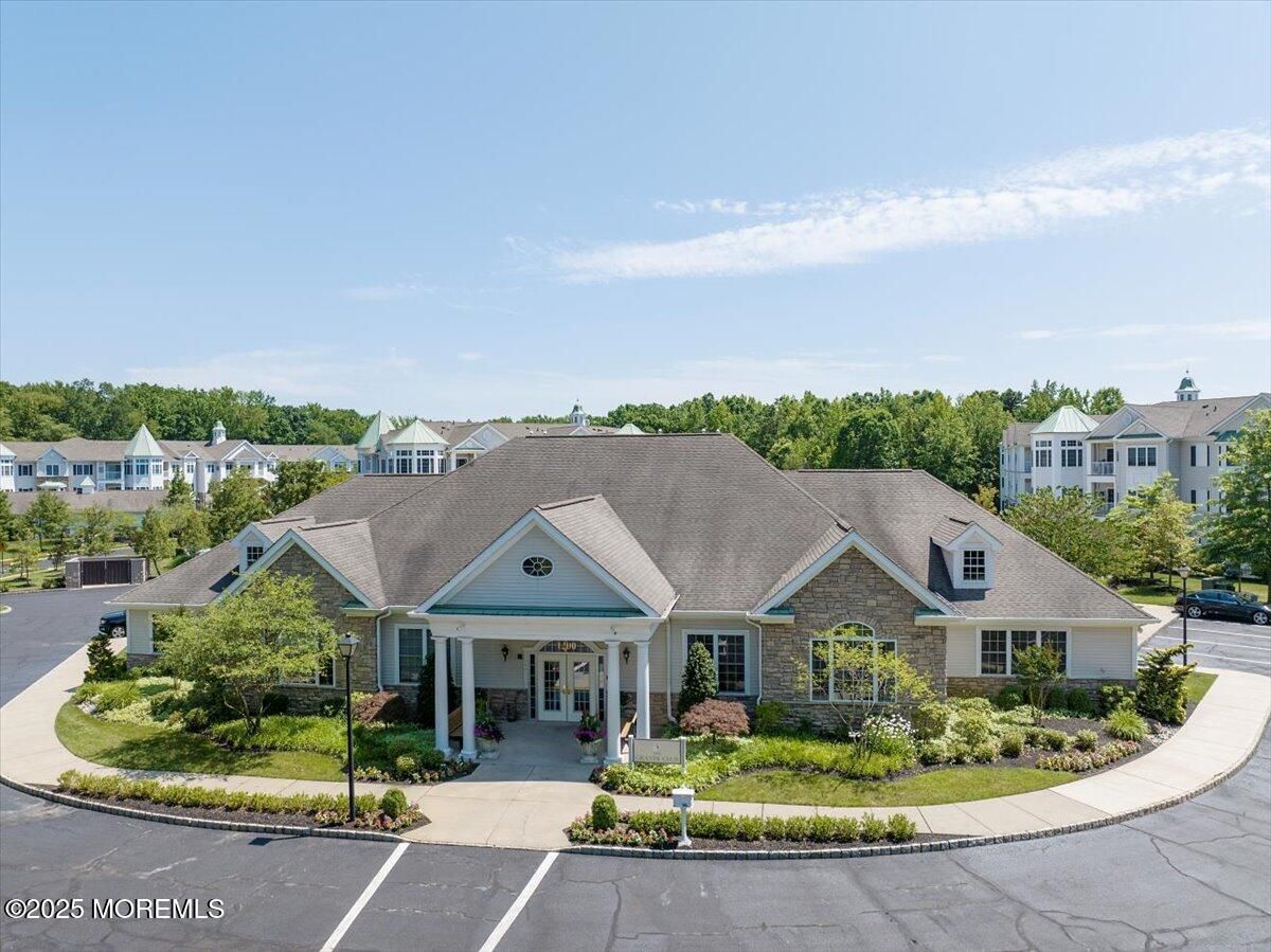 This beautiful end-unit, Harrington model is full of upgrades. Hardwood floors, decorative molding and premium finishes can be found throughout this immaculately maintained home. This home features 2 bedrooms, 2 full baths and both a large living room and den. The large primary bedroom features an en suite bath and two large walk-in closets with custom shelving. Most appliances are newer and the condo features a beautiful, neutral color scheme allowing its new owner to simply move right in. Premium shutters on all of the numerous windows and high ceilings throughout the home fill the space with tons of natural light. This home also features convenient, in-unit laundry. A patio off the living/dining room faces the woods, allowing a private space for outdoor relaxing. Plaza Grande at Old Bridge is an upscale 55+ community. It is privately located, yet conveniently close to shopping, dining and transportation. Amenities abound throughout Plaza Grande, including a clubhouse, pool, tennis courts, fitness center, and more. This unit's building features its own community library/game room and lounge. Social clubs and activities are available to residents. This home is truly special. Upscale and easy living awaits. Schedule an appointment to see it today!