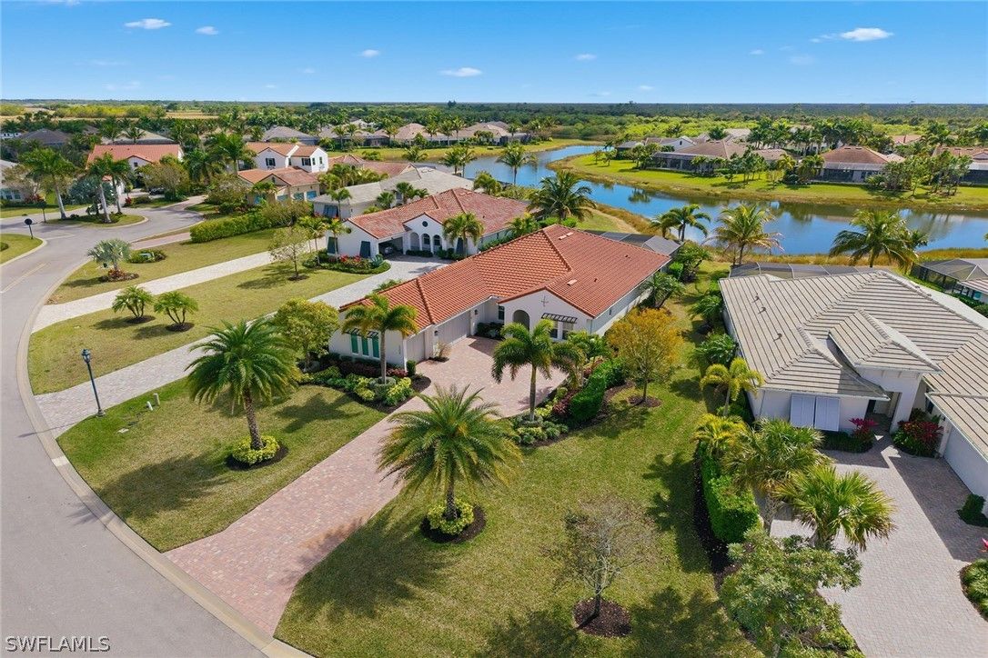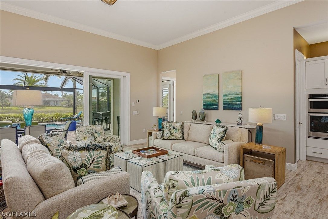 Welcome to 3206 Cotuit Lane in Marsh Cove! beautifully designed Navarra II model, offering 4 bedrooms plus a den/office and 4.5 bathrooms, with 2,813 square feet of thoughtfully curated living space. Located within the award-winning Fiddler’s Creek community, this exceptional home showcases Ashton Woods’ signature craftsmanship, high standards, and inspirational design throughout. Perfectly positioned on a hand-selected, manicured lot with southern exposure, the home captures stunning long lake views and offers the rare opportunity to enjoy both sunrise and sunset daily. Designed for effortless entertaining and refined everyday living, the open-concept floor plan features a spacious great room filled with natural light and picturesque views through expansive sliding glass doors. The gourmet kitchen is the heart of the home and every chef’s dream, featuring a large island with elegant pendant lighting, white 42-inch cabinetry, a tiled backsplash, wall oven, walk-in pantry, ample storage, and warm LED under-cabinet lighting that highlights the upgraded finishes beautifully. Step outside to a private resort-style outdoor retreat, complete with a screened-in pool and raised spa with spillover, paver deck, expansive covered lanai, and a fully equipped outdoor kitchen with refrigerator. The space is enhanced by Woodard brand outdoor furniture and its own dedicated dishes and serving pieces—perfectly curated for alfresco dining, sunset gatherings, and relaxed Florida living. The primary suite serves as a serene sanctuary, offering tranquil lake views and a luxurious en suite bathroom with a walk-in glass shower, dual sinks, and a spacious walk-in closet. A private door from the primary bathroom provides direct access to the pool area, seamlessly blending indoor and outdoor living. Each additional bedroom includes its own en suite full bathroom, ensuring comfort and privacy for family and guests, while the versatile den offers flexibility for a home office or media space. The home is being offered fully furnished and has been lightly occupied for only nine total months since 2019, making it truly move-in ready. Residents of Fiddler’s Creek enjoy a premier lifestyle with world-class amenities including a luxurious clubhouse, resort-style pools, championship golf, tennis and pickleball, state-of-the-art fitness facilities, spa services, fine and casual dining, and a vibrant social calendar. Surrounded by lush landscaping and nature preserves, this exceptional community offers elegance, tranquility, and an active lifestyle—just minutes from Naples’ pristine beaches, shopping, and dining.