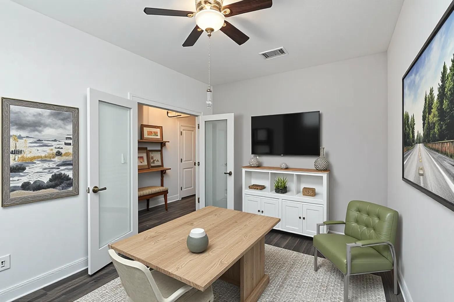 - Breakfast Bar, Ceiling Fan(s), Double Vanity, French Door(s)/Atrium Door(s), Granite Counters, High Ceilings, Kitchen Island, Main Level Primary, Open Floorplan, Pantry, Recessed Lighting, Study, Walk-In Closet(s)