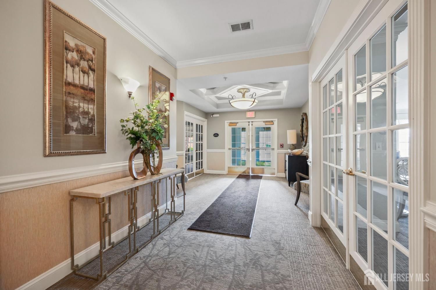 Premier 55+ community where luxury meets convenience! Beautifully maintained 2 Bedroom / 2 Bath condo w/1 car garage. Spacious, light filled open layout w/gleaming wood floors, recessed lighting & a neutral color palette. Sliding glass doors to balcony. The kitchen features granite countertops, a breakfast bar & ample cabinet space. The primary suite is complete with a walkin closet & a private ensuite bath w/double sink and soaking tub. The split bedroom layout is ideal for guests. Convenient in unit laundry. Plaza Grande offers a host of amenities and beautiful clubhouse with entertaining room, pool, gym, bocce, tennis, pickle ball, putting green and so much more. Conveniently located near Rt 9 and Rt 18.