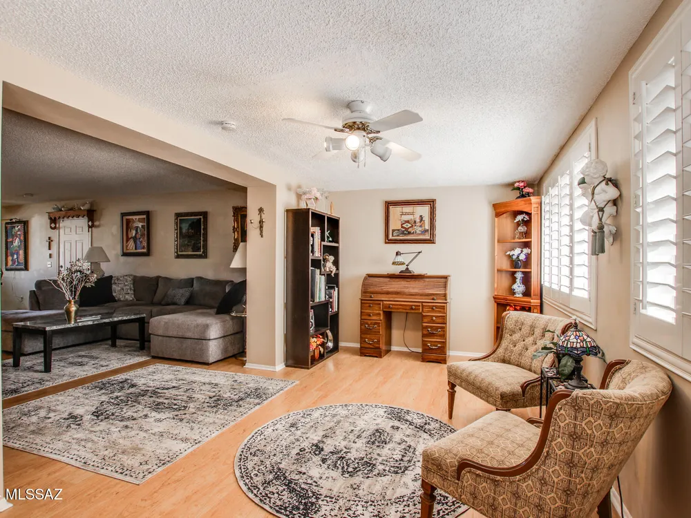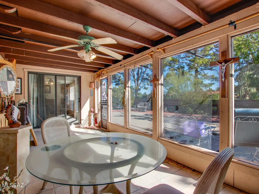 Move-in ready 3-bedroom, 2-bath home in a sought-after 55+ community near a scenic golf course in Green Valley, AZ. This property features a workshop, mature fruit trees, a bright Arizona room, and a private fenced yard for relaxation. Furniture is available, making your transition seamless. Ideally located near shopping and recreation, you'll enjoy access to all the amenities of Green Valley Recreation, including pools, fitness centers, and a variety of classes. A perfect blend of comfort, convenience, and an active lifestyle awaits!