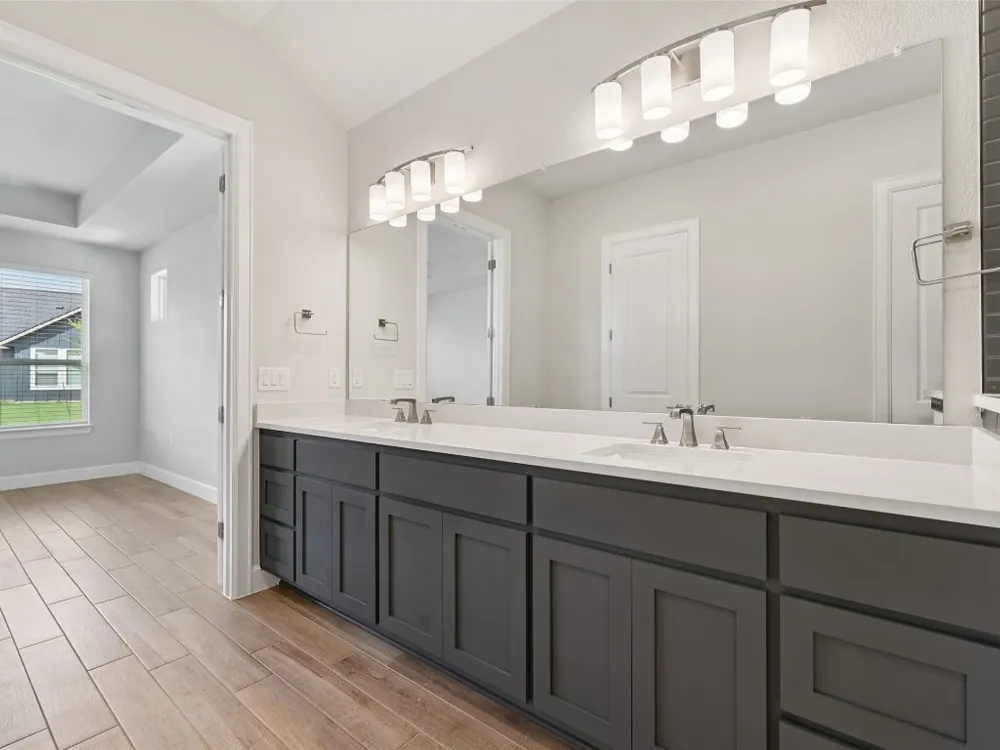 - Tray Ceiling(s), Ceiling Fan(s), Double Vanity, Kitchen Island, Main Level Primary, Pantry, Quartz Countertops, Smart Home, Walk-In Closet(s)