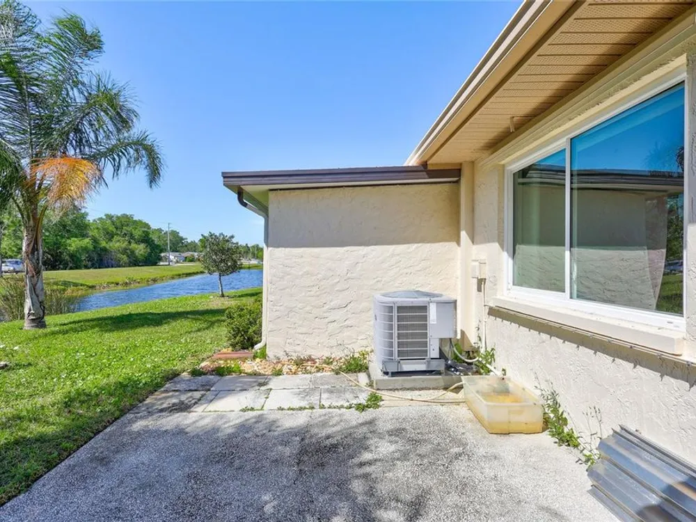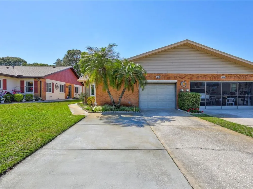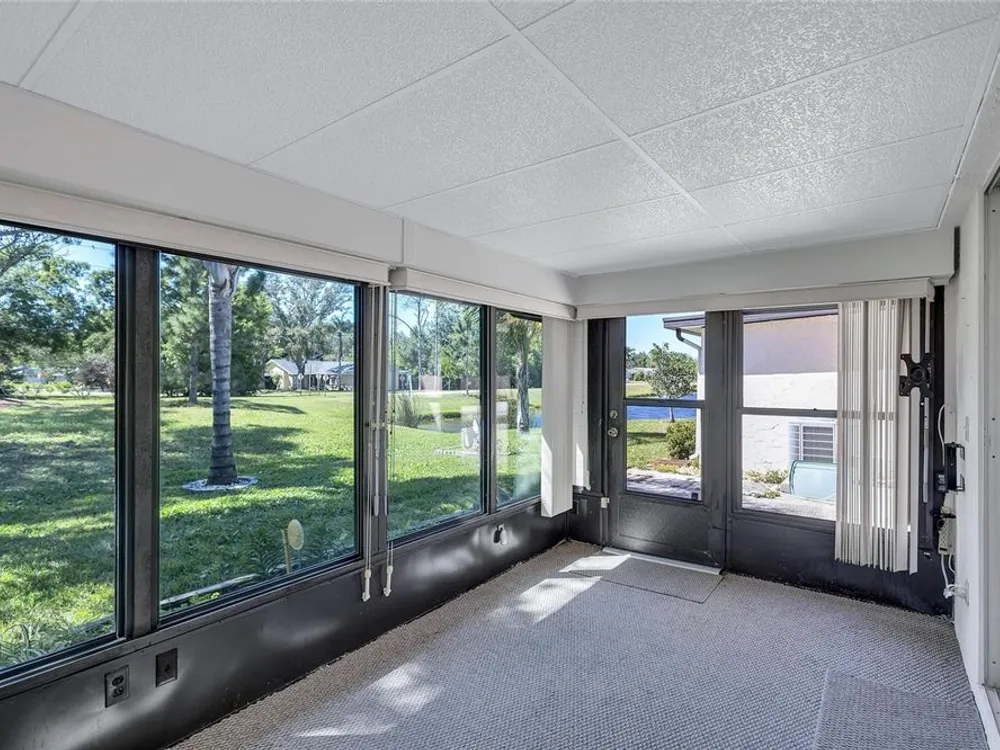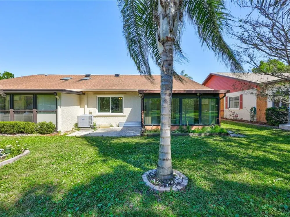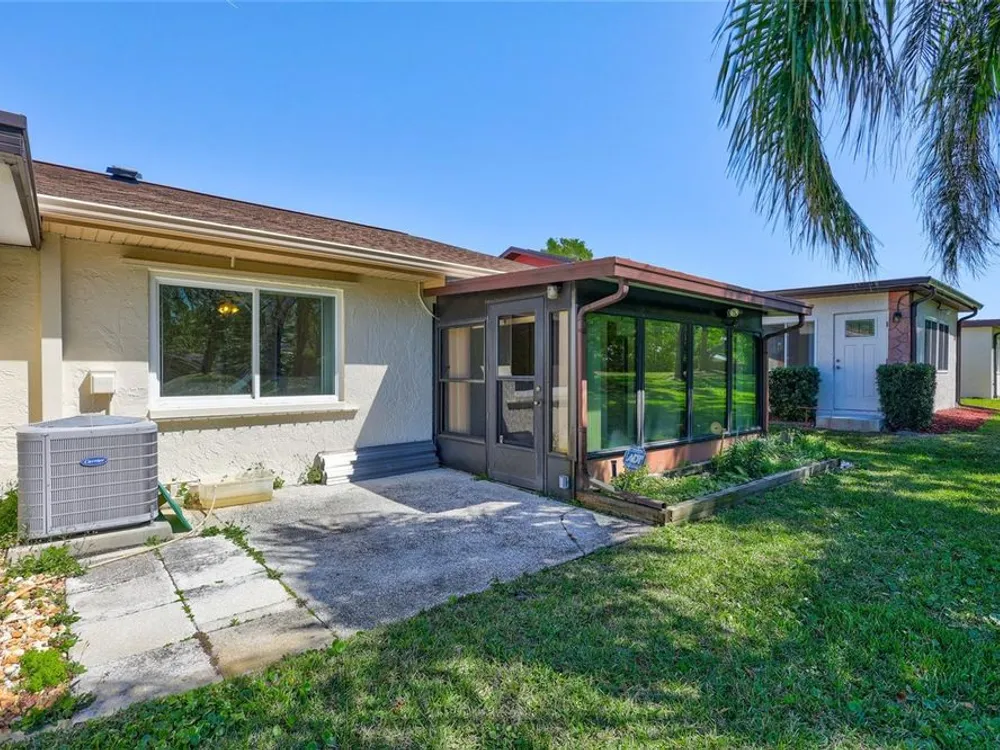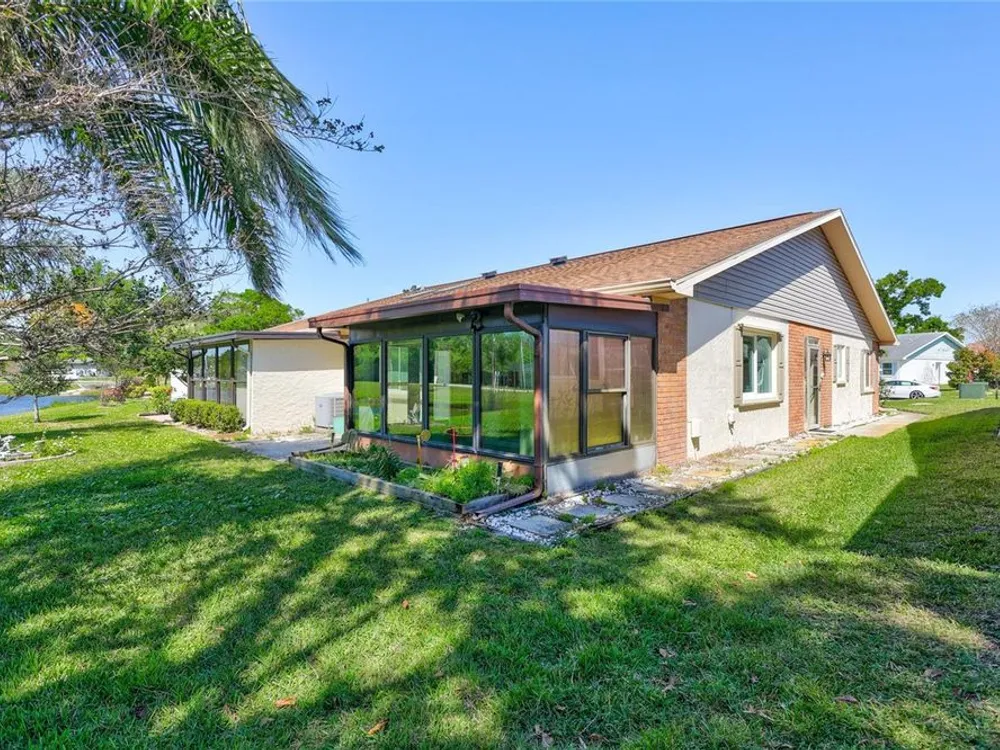 Nestled in one of the most sought after streets in the comunity this stunning duplex offers cathedral ceilings and a serene pond backdrop creating a refreshing and peaceful atmosphere. The home boasts abundant naural light with plenty of windowws, an updated kitchen and laminate flooring in each bedroom. Both bathrooms have been tastefuly updated for a modern tiouch Key features include a 5-6 year old roof a 7 year old AC and a 2 yr old hot water heater for worry free living. Enjoy added convenience with hurricane shutters on the patio and a built in generator in the garage. Beyond the home the vibrant community offers three golf courses, pickleball and tennis courts. Bocce ball shuffleboard, woodwworking and chef clubs, card games entertainment and dinners and dances are offered. Schedule your showing today