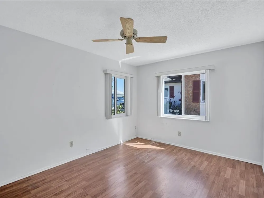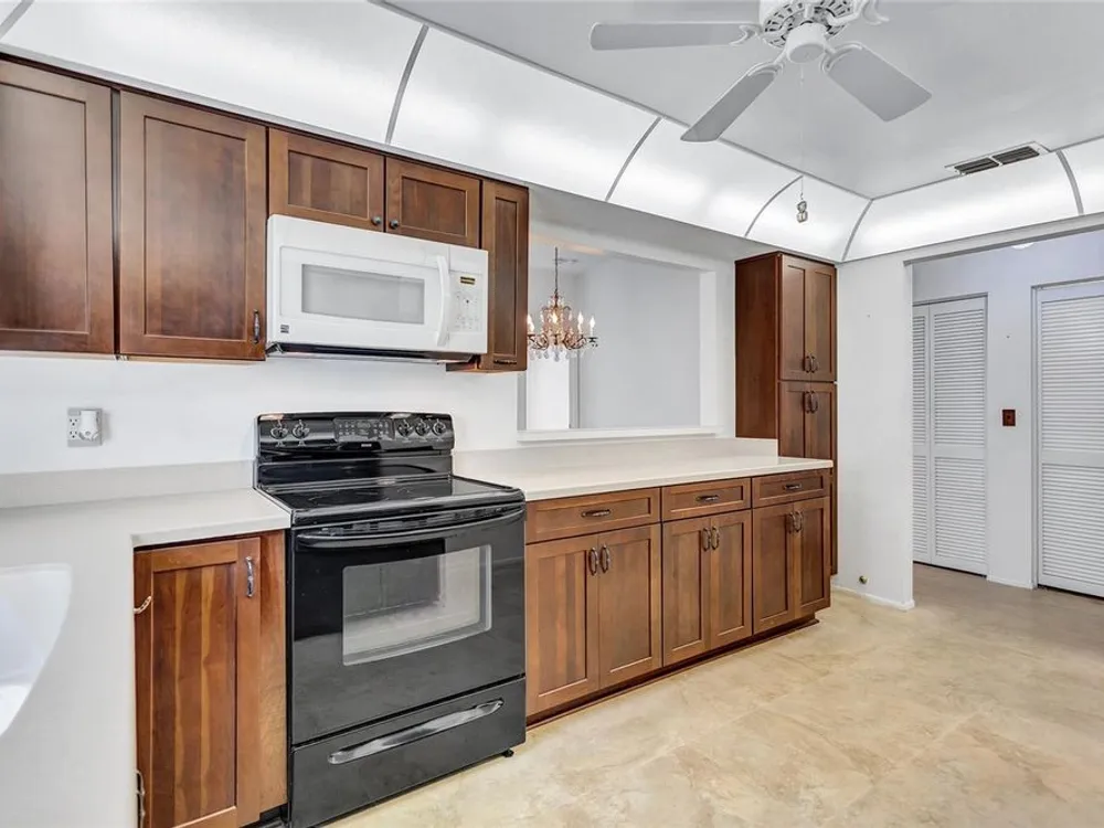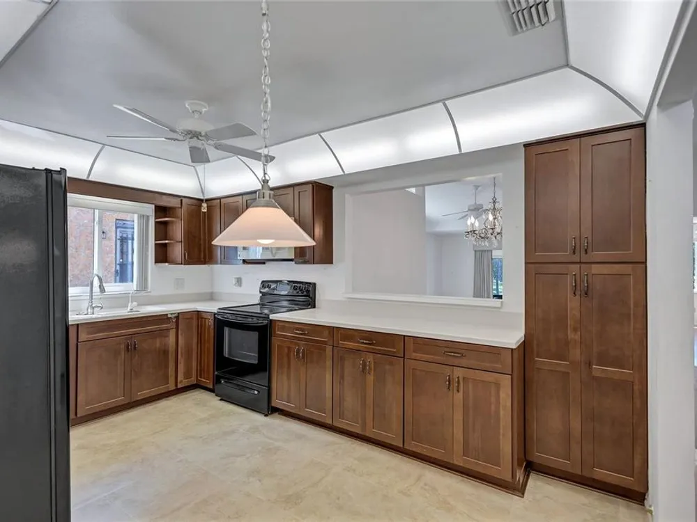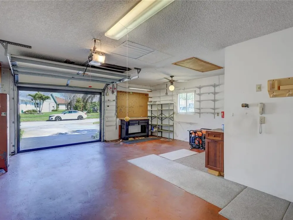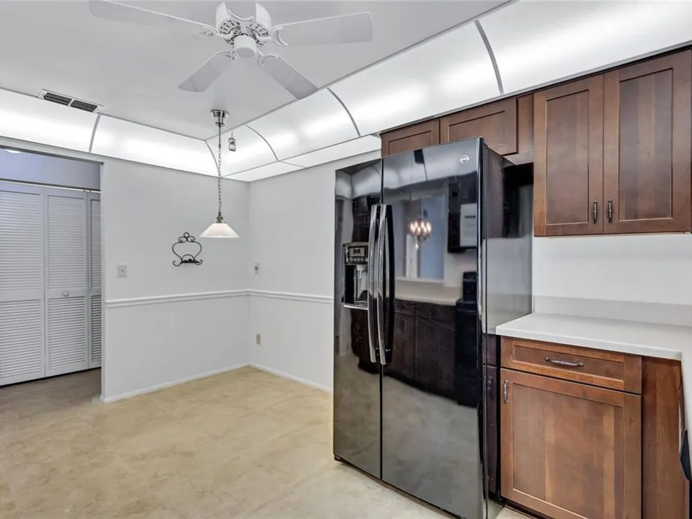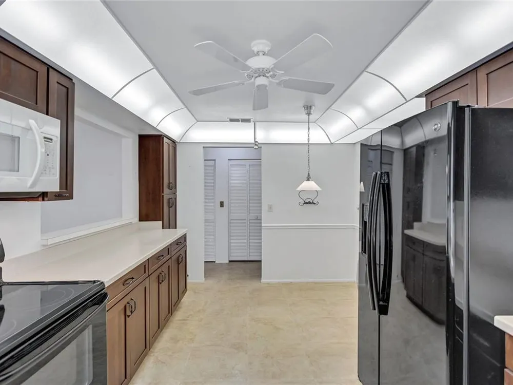 Nestled in one of the most sought after streets in the comunity this stunning duplex offers cathedral ceilings and a serene pond backdrop creating a refreshing and peaceful atmosphere. The home boasts abundant naural light with plenty of windowws, an updated kitchen and laminate flooring in each bedroom. Both bathrooms have been tastefuly updated for a modern tiouch Key features include a 5-6 year old roof a 7 year old AC and a 2 yr old hot water heater for worry free living. Enjoy added convenience with hurricane shutters on the patio and a built in generator in the garage. Beyond the home the vibrant community offers three golf courses, pickleball and tennis courts. Bocce ball shuffleboard, woodwworking and chef clubs, card games entertainment and dinners and dances are offered. Schedule your showing today