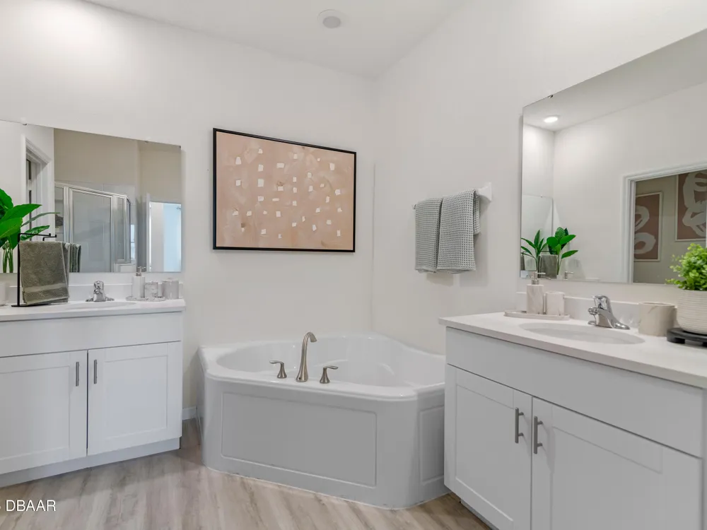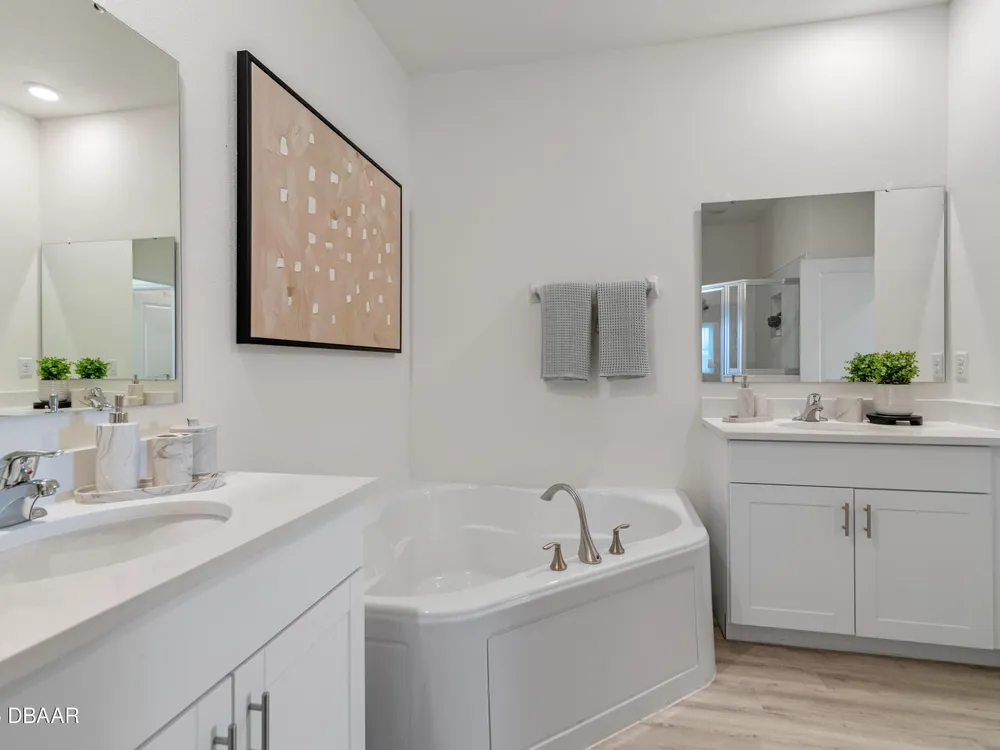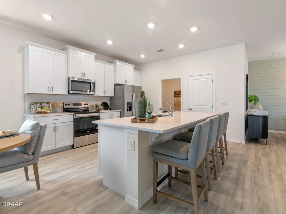 As you enter the foyer, you are greeted with two bedrooms and a full bathroom. The well-appointed kitchen overlooks the dining room and features an island with bar seating, beautiful quartz countertops and stainless-steel appliances. A versatile nook is located off the kitchen and can be adapted to fit your needs. Enjoy views of the oversized lanai from the spacious great room. Bedroom one, located in the back of the home for privacy has an en suite bathroom with a double vanity and spacious walk in closet. Bedroom four is tucked into the opposite corner of the house and includes a third bathroom. *Photos are of similar model but not that of exact house. Pictures, photographs, colors, features, and sizes are for illustration purposes only and will vary from the homes as built. Home and community information including pricing, included features, terms, availability and amenities are subject to change and prior sale at any time without notice or obligation. Please note that no representations or warranties are made regarding school districts or school assignments; you should conduct your own investigation regarding current and future schools and school boundaries.*