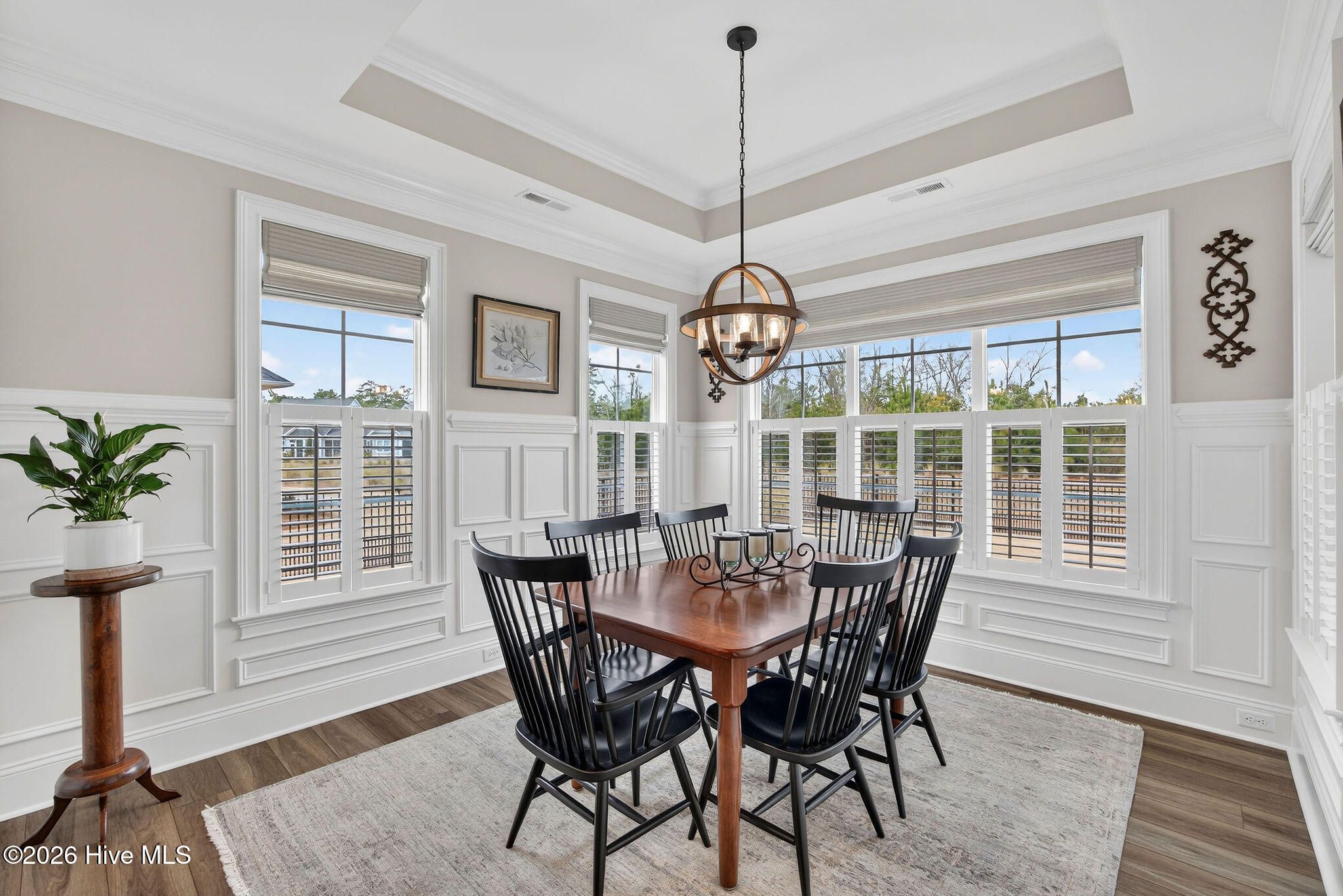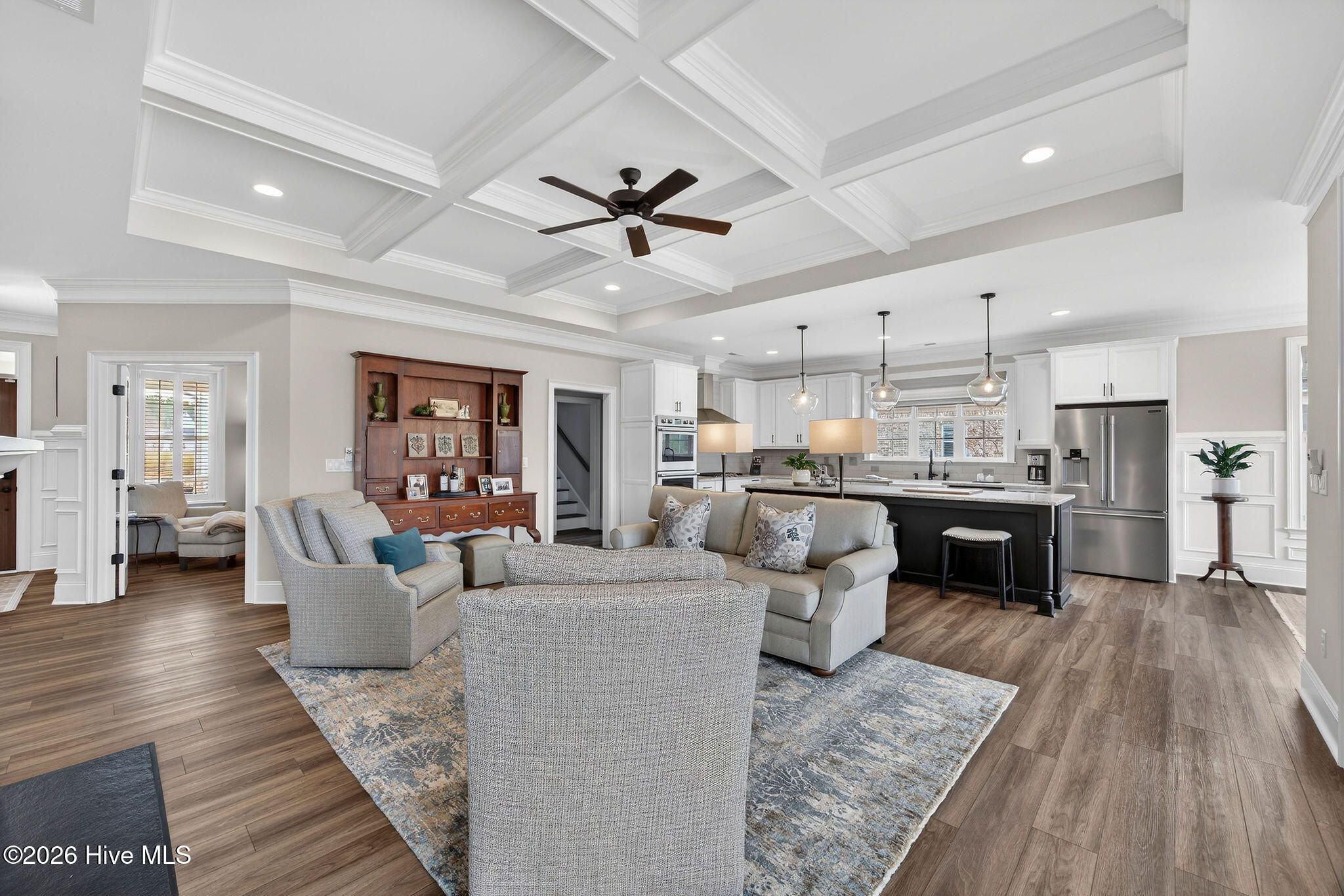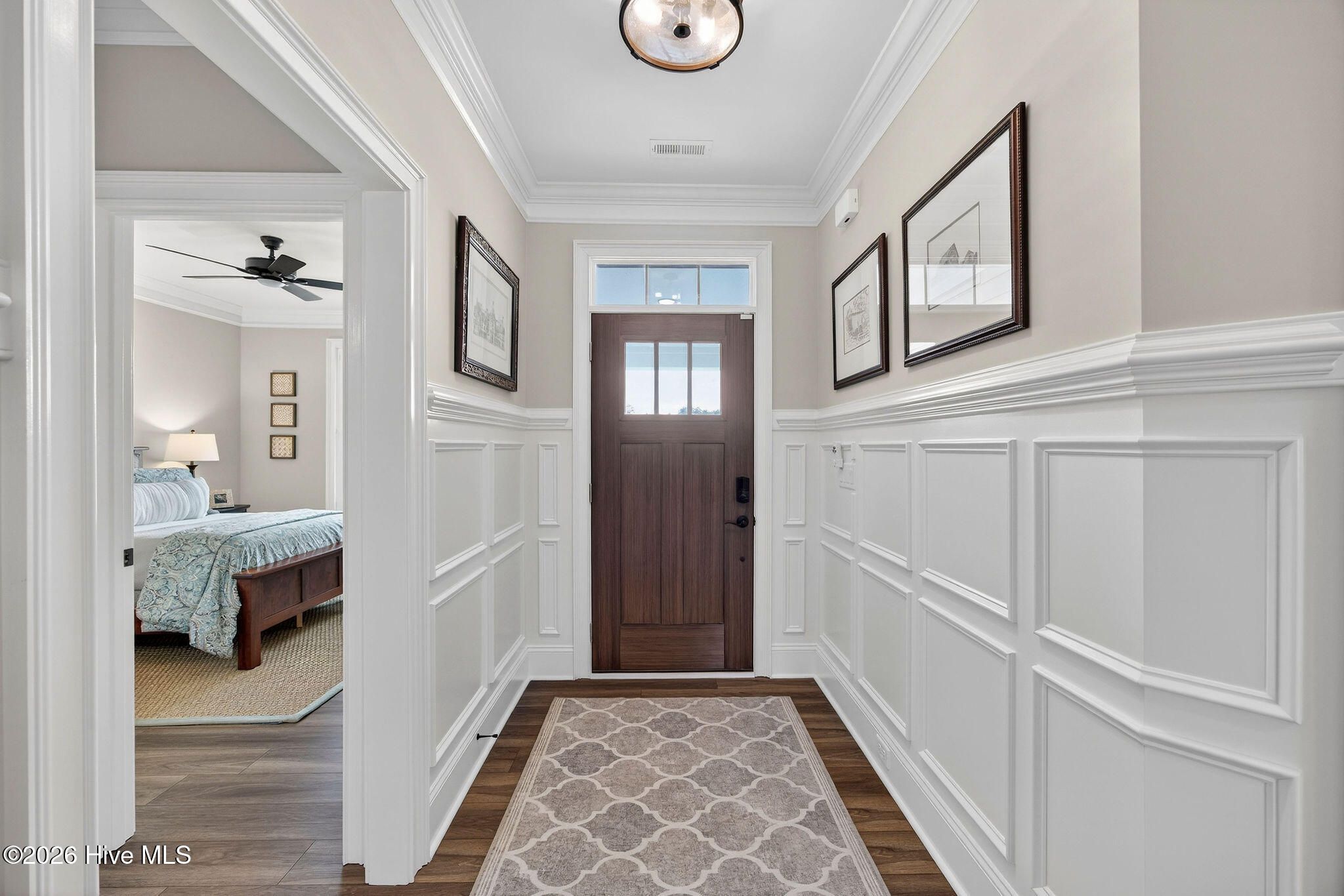 Located in The Peninsula at Cape Fear National, 3214 Calusa Cove, built in 2023, offers an easy-living coastal lifestyle on a .25-acre fenced lot. The home features LVP flooring throughout with no carpet, plantation shutters, and refined trim details including crown molding, wide baseboards, and wainscoting in the foyer and dining room. The open layout is complemented by a chef's kitchen with double ovens, natural gas stove, gas logs, and hot water heater, with the added peace of mind of a home connected to a whole-house generator and security system. A spacious bonus room with its own bath offers ideal flexibility for guests or additional living space, while walk-in attic storage offers ample storage space. The backyard is a peaceful setting with privacy behind. Lawn maintenance is included in the HOA, allowing for truly low-maintenance living. Residents of Brunswick Forest enjoy an active, resort-style lifestyle with multiple pickleball and tennis courts, pools, fitness centers, and miles of walking trails, along with year-round community events, all just minutes from shopping, dining, medical facilities, downtown Wilmington, and area beaches.
