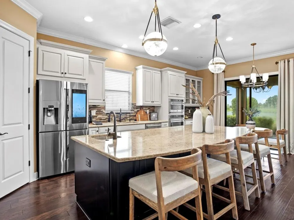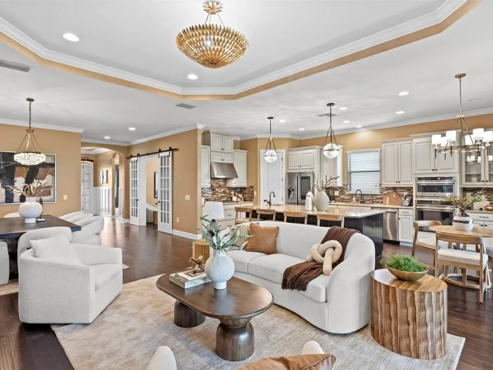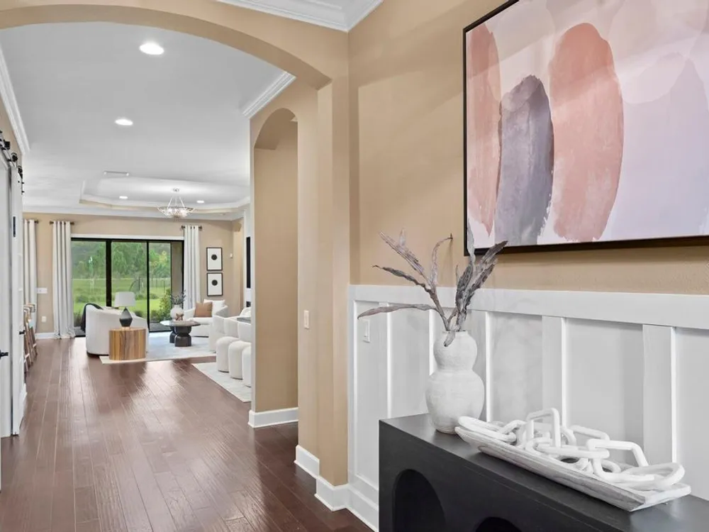 Find the Florida Lifestyle You’ve Been Looking For. You’re searching for more than a house; you want a peaceful retreat that’s beautifully designed, energy-efficient, and move-in ready. A place where your family feels safe, comfortable, and connected to nature, all within a vibrant resort-style community. 3214 Forsythia Drive is here to help. Tucked inside the gated Esplanade at Starkey Ranch, this upgraded 3-bedroom, 3-bath home sits on a tranquil conservation lot with panoramic pond views. With over 2,300 sq. ft. of open-concept living space, it’s thoughtfully designed to help you enjoy every day to the fullest. The home welcomes you with stunning curb appeal, a pavered driveway, barrel tile roof, and a Tesla Wall Connector for your EV. Inside, soaring tray ceilings, wide-plank wood floors, and natural light set the tone for relaxed luxury. The chef’s kitchen offers quartz countertops, stainless steel appliances, gas cooktop, double ovens, and an oversized island perfect for entertaining. A custom pantry and designer finishes round out the space. Feel good every day with whole-house water filtration and softening; great for your health, home, and appliances. And with a professionally monitored security alarm system, peace of mind is built in. Enjoy morning coffee or sunset dinners on your covered lanai, taking in quiet lake views. Inside, the custom built-in media cabinet in the great room adds both beauty and function. The owner’s suite is your private sanctuary, featuring large windows, a walk-in closet with custom storage, and a spa-like en suite bath with dual vanities and glass walk-in shower. Two additional bedrooms are set in a private split layout, perfect for family or guests. A dedicated office with French doors, laundry room with built-in cabinetry and sink, and crown molding throughout elevate the everyday living experience. Live Where Every Day Feels Like a Getaway; Esplanade at Starkey Ranch offers a true resort lifestyle; clubhouse, fitness center, pool, tennis, pickleball, and trails, with easy access to top-rated schools, parks, dining, shopping, and Tampa International Airport. Ready to make your move? Schedule your private showing today and step into the Florida lifestyle you’ve been waiting for.