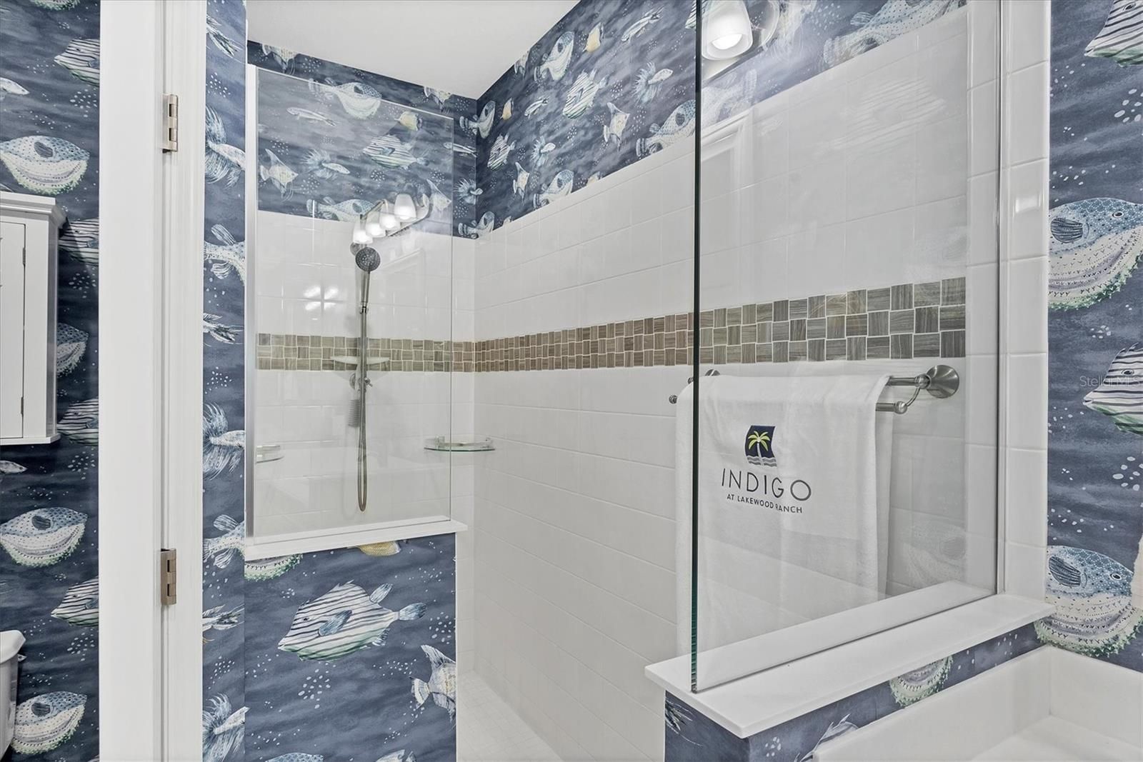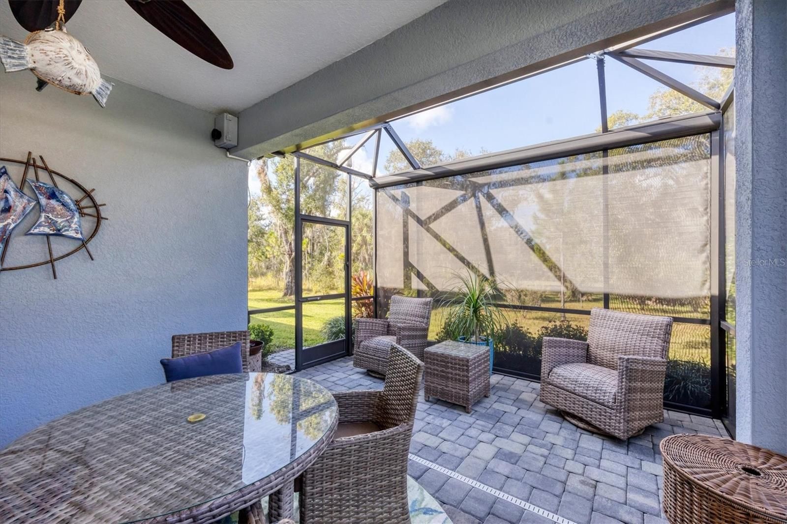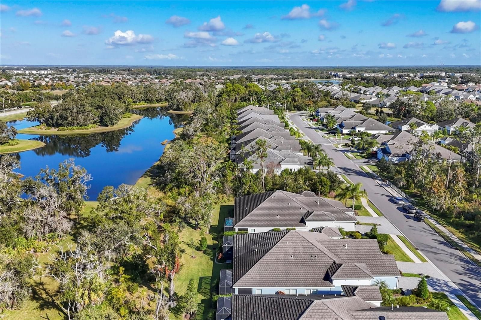 Come check out this meticulously maintained villa located in the award winning gated neighborhood of Indigo! This premium ''Tidewinds'' villa boasts 2 bedrooms, 2 bathrooms, a generous sized study/den, indoor laundry room, large two-car garage, extended lanai with premium pavers, highly desirable private rear conservation area AND lake view! Rest assured, your new villa is built strong and safe with its HURRICANE IMPACT windows throughout, insulated cinder block construction, concrete tile roof AND is located in an ''X'' floodzone! This villa also comes equipped with a portable Tri -Fuel, (Natural Gas, Propane, or Gasoline) generator which connects to the natural gas line extension outside the villa and is capable of powering all the appliances and Air Conditioning in the event the power goes out. Your new villa also has ''smart home'' capabilities which allows you to remotely operate your garage door, front door and thermostat! Throughout you will find 5 1/4" deco baseboards, UV light filtration incorporated in the ''TRANE" air conditioning unit, LED recessed lighting, ceramic tile, luxury vinyl plank, custom barn doors, premium built-ins and accent walls, upgraded light fixtures, reverse osmosis water in the kitchen and much more! The luxurious primary suite offers TWO closets, a large walk-in shower with separate his and hers vanities with stone countertops. The guest bedroom features a generous sized closet and built-in murphy bed. The high quality built-ins continue into the office where you will find a custom wrap around desk with more than enough shelving and cabinet space! This amazing family room has a designer trey ceiling and custom accent wall with an electric fireplace which makes this centerpoint of the villa the perfect interior gathering location. The kitchen boasts a large island with breakfast bar, 5-burner gas convection oven, reverse osmosis water filtration system plus a booster at the sink that provides instant hot water, premium slate steel appliances with exterior ventilated microwave plus LED overhead lighting as well as undermount lighting that complements the premium quartz countertops. Open the three paneled HURRICANE IMPACT slider and be amazed at not only the amount of room the paver rich extended screened lanai provides but your peaceful, undisturbed conservation area (NO rear neighbors) PLUS lake view. Your new lanai also comes equipped with a motorized sun shade, heightened 120V electrical socket so no wires will be showing for any desired flat screen. The large 2-car garage comes equipped with a HURRICANE IMPACT, insulated garage door and several storage racks. Indigo is an active community that features a full time on-site manager as well as a full time activities director that manages an extensive calendar of activities for all ages. A-Rated Gullett Elementary AND Mona Jain Middle school are right outside our gates too! You can also expect sidewalks on both sides of the street, ''Oasis'' pool/spa, resort style heated community pool/spa at the main clubhouse where you will find 5 cabanas with an abundance of seating, 4 pickleball courts, 2 bocce ball courts, 24-hour exercise gym, meeting room/banquet room and playground. Indigo is not only a community that takes care of all ground maintenance to include mowing, fertilizing, irrigation, shrubs and mulch but is right around the corner to a plethora of dining, banking, entertainment, public transportation and MORE!