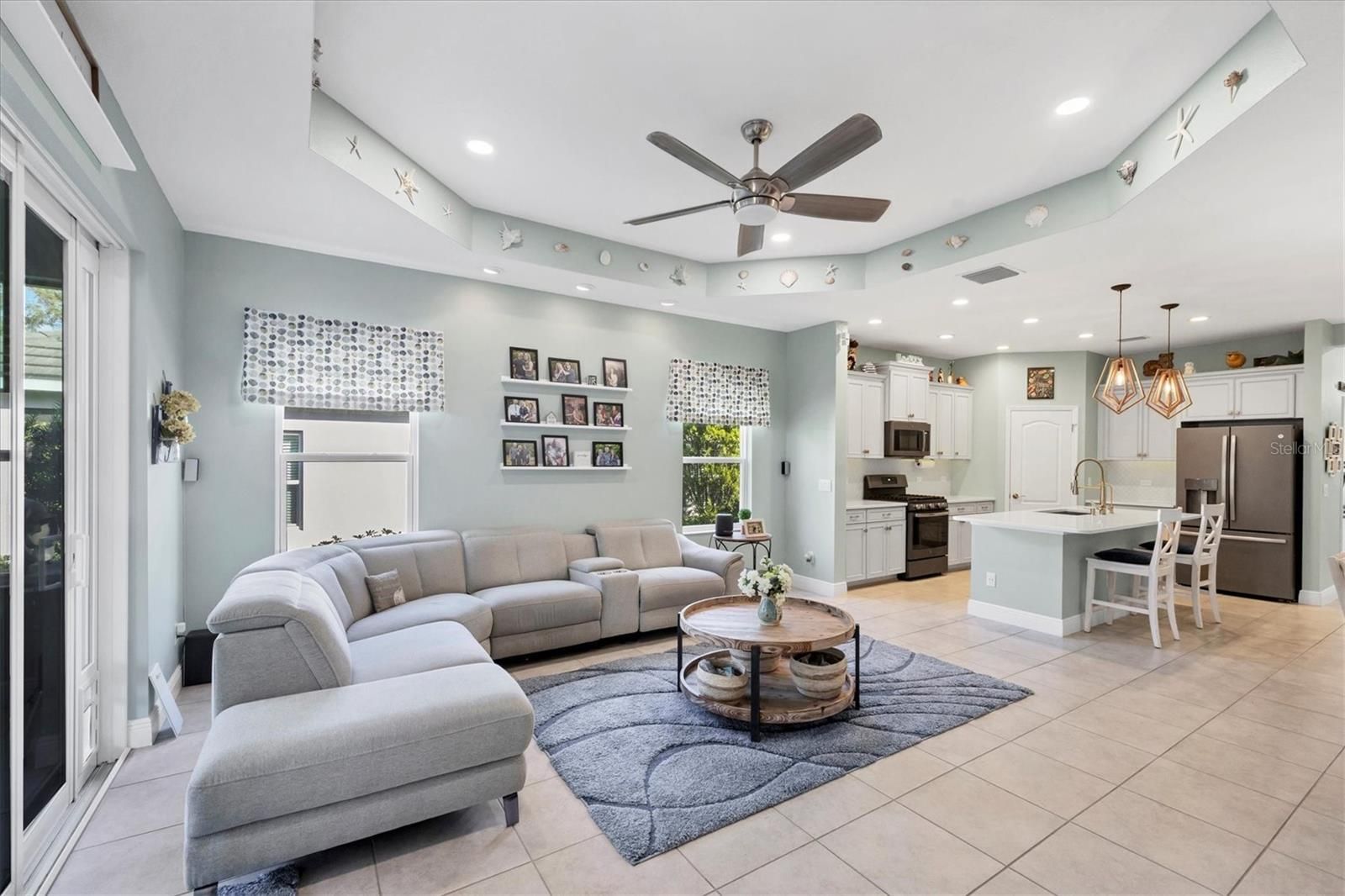 - Ceiling Fan(s), Eat-in Kitchen, High Ceilings, Open Floorplan, Smart Home, Stone Counters, Thermostat, Tray Ceiling(s), Walk-In Closet(s), Window Treatments