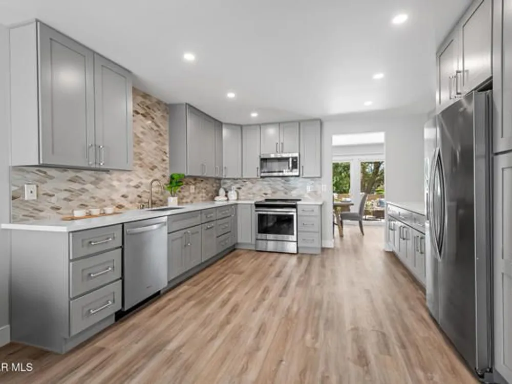 Beautifully Remodeled Turn-Key Townhome in Lakeshore. Welcome to this stunning, move-in-ready townhome nestled in the highly sought-after Lakeshore community, right in the heart of Westlake Village. Perfectly situated on a desirable cul-de-sac, this home offers the ideal blend of style, comfort, and convenience--just steps from one of three swimming pools, a pickleball/paddle tennis court, sand volleyball, a sandy beach, and a private lake dock. Inside, you'll find a gorgeously renovated kitchen featuring quartz countertops, stainless steel appliances, and a spacious eat-in area that opens onto a charming front patio. The open-concept floor plan flows seamlessly with luxury plank flooring throughout the main living areas. A breakfast bar connects the kitchen to the inviting living room, complete with a decorative fireplace. Enjoy serene views of the greenbelt and mature trees from the dining and living rooms, both opening to a peaceful back patio--ideal for indoor-outdoor living.Upstairs are three generously sized bedrooms with vaulted ceilings and abundant natural light, plus two beautifully updated full bathrooms. The primary suite is a true retreat, offering space, comfort, and timeless finishes.Additional features include:Convenient indoor laundry room with washer & dryerDetached 2-car garage with added storageCentral location with easy access to the 101 freewayLocated in the award-winning Las Virgenes School DistrictThe Lakeshore community offers resort-style amenities and is just minutes from Westlake Village's best attractions, including the Sunday Farmer's Market, Stonehaus, upscale and casual dining, boutique shopping, and scenic walking paths.This is the perfect opportunity to live in one of the most desirable communities in Westlake Village--a wonderful place to call home.