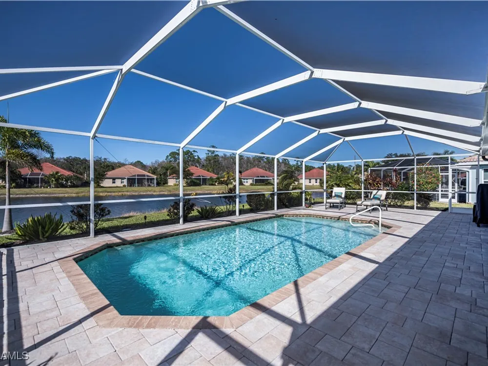 Huge price adjustment on this beautiful POOl home. Spectacular lake views and stunning sunsets. This property gives you everything you want in a Florida home. Oversized heated salt water pool with Pentair pump (2 yrs old). 25' x 50' lanai for outdoor entertaining and privacy. Lanai furniture included, valued at approx. $5000. Just some of the features of this 4 bedroom/den - 2 bath home. upgrades of this home include newer kitchen appliances, backsplash, Ring security camera, granite countertop and faucets in primary bath, new LVP flooring in primary bedroom and office, newly painted interior and exterior of home. Cascades LOW HOA of $343.30 a month covers all your lawn care needs, full cable and internet, state-of-the-art fitness facility, resort style pool and spa, Tennis, Pickleball & Bocce courts and loads of Social Planned events to keep you busy all year round. Come make this your new home. You will not only fall in love with this home and this community as well. Immediate occupancy at closing. Furniture is all negotiable. Owners ready and motivated.
