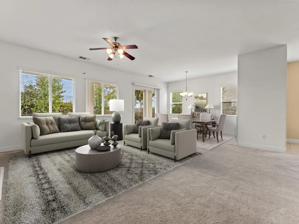 WOW!Situated in prestigious 55+gated Four Seasons community in El Dorado Hill.This plan has it ALL! Brand new carpeting and newly painted bedrooms. Two huge bedrooms with a possible 3rd bedroom or office.Primary bedroom is private with Sierra foothill views.Relax in the large soaking tub. Granite counters and separate shower with comfort seat.The wardrobe closet has shelving and plenty of storage. The second bedroom has its own full bath. Convert the office/den into a 3rd bedroom or craft room to fit your lifestyle. Enjoy cooking or entertaining in the kitchen with gorgeous granite counters and island.Stainless appliance all included. Dinette area is perfect to have tea with a friend. Storage galore in pantry closet with upgraded glass door. Enjoy the great room area that includes formal dining area and bar stool seating. Extended outdoor living is peaceful with relaxing water feature,succulent garden and roses. Low maintenance artificial turf. Newer water heater and microwave. Laundry room includes storage, utility sink, washer and dryer. Close to clubhouse,nature trail to the community garden and gazebo areas. Take a short drive to Apple Hill, Red Hawk Casino, Wineries, Restaurants or Lake Tahoe.Location, Only 55+ community in the area with NO Mello Roos Tax!
