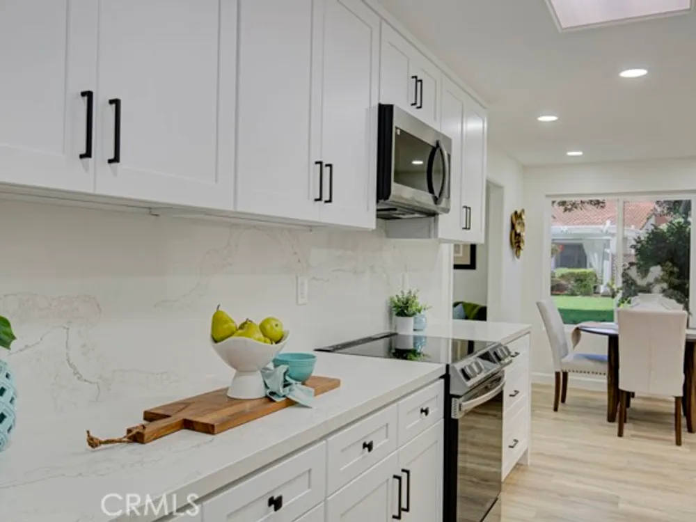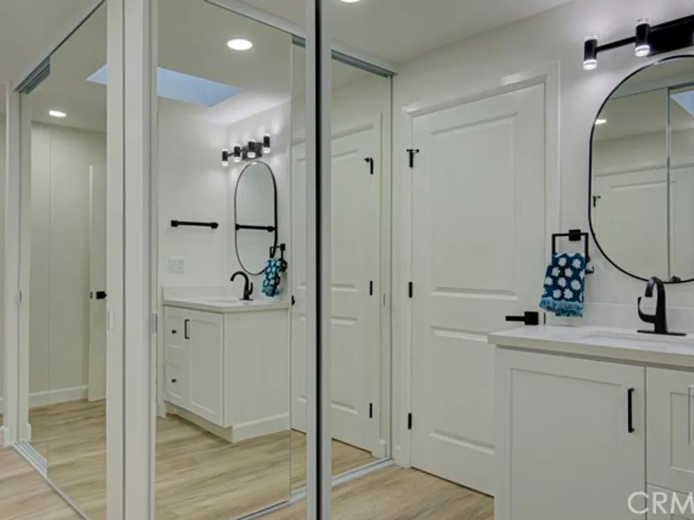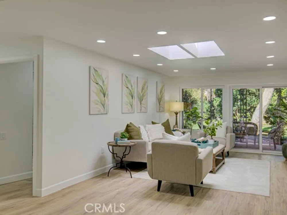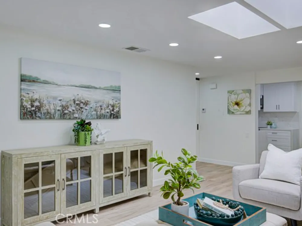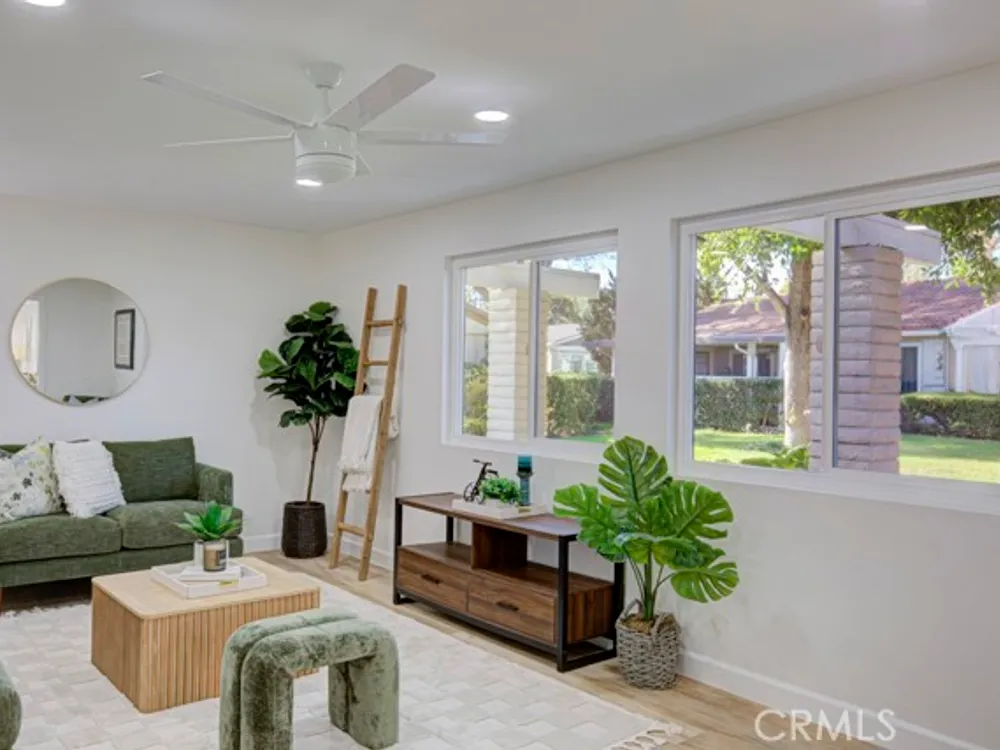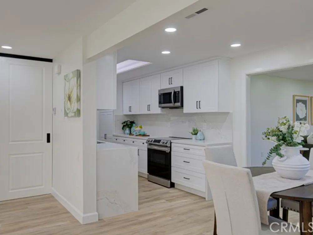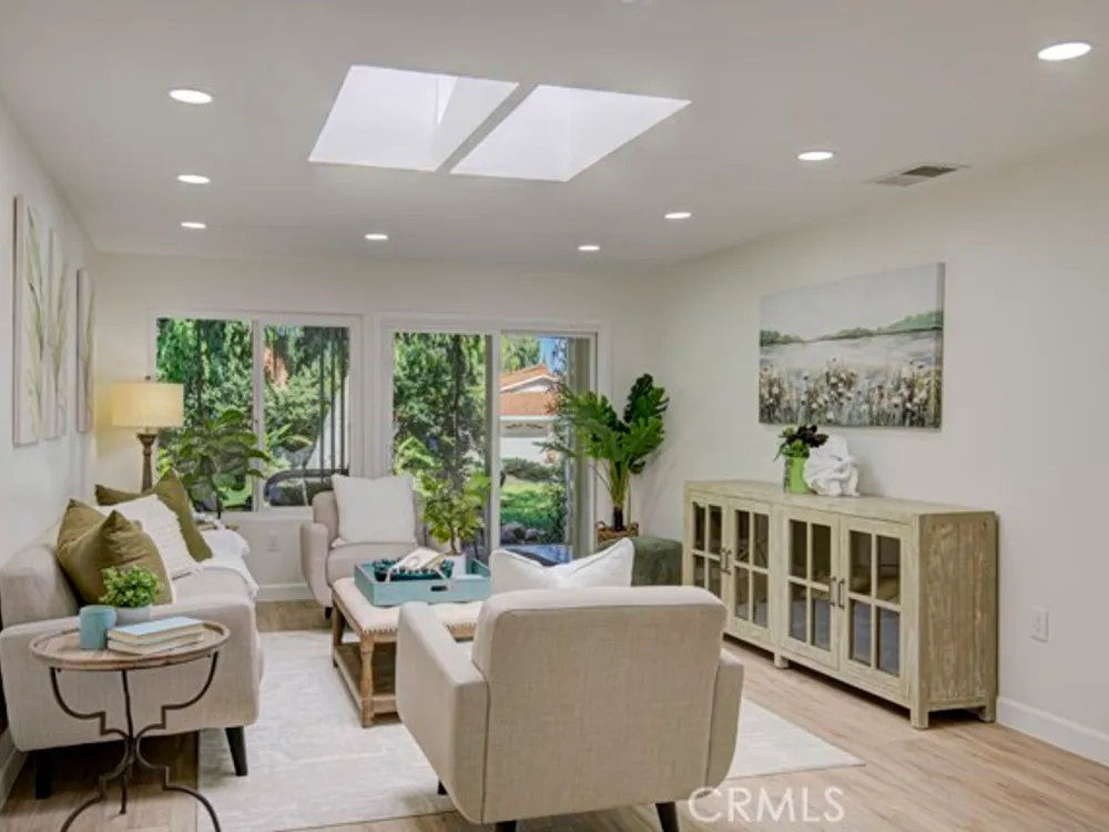 Welcome to 3217-A Via Carrizo – a fully-remodeled, expanded, single-level, two-bedroom, two bath EL DOBLE residence in the Laguna Woods senior community. This floorplan boasts approximately 1500 sq. ft. of living space with two large primary bedrooms separated by a spacious living room with direct access to the rear patio. There is a multi-purpose bonus room situated just off the dining area. This versatile space could serve as a casual TV/family room, home office, arts and crafts studio or workout area. The kitchen features lovely brand-new cabinetry with quartz countertops with waterfall edges. There is ample cabinet storage and countertop space. Additional kitchen upgrades include stainless steel appliances, soft-close cabinet doors and drawers, pots and pans drawers, a spice drawer and storage for trash and recycling. The service door to the garage originally located in the kitchen has been relocated to the bonus room allowing for the addition of more cabinet space in the kitchen. Each bedroom has large closets with mirrored doors. Both bathroom showers have seats, grab bars and convenient accessory shelves. Upgrades throughout include smooth ceilings, recessed lighting, dual-pane windows and gorgeous vinyl plank flooring. Skylights are located in the living room, kitchen a