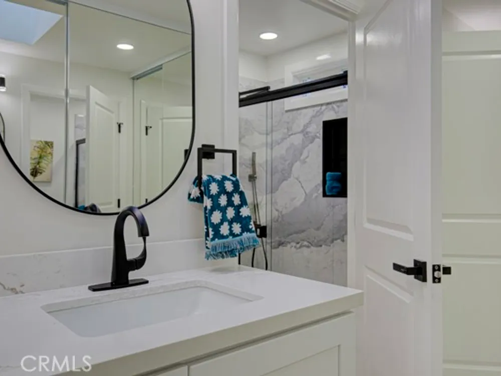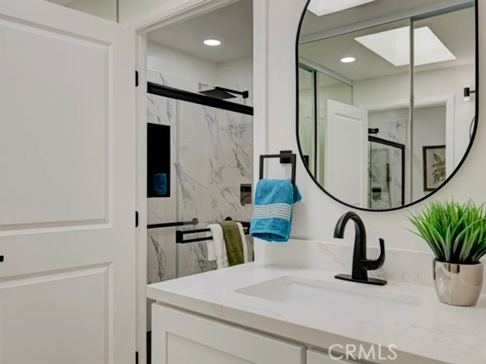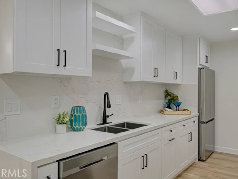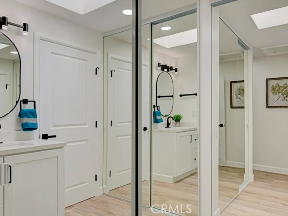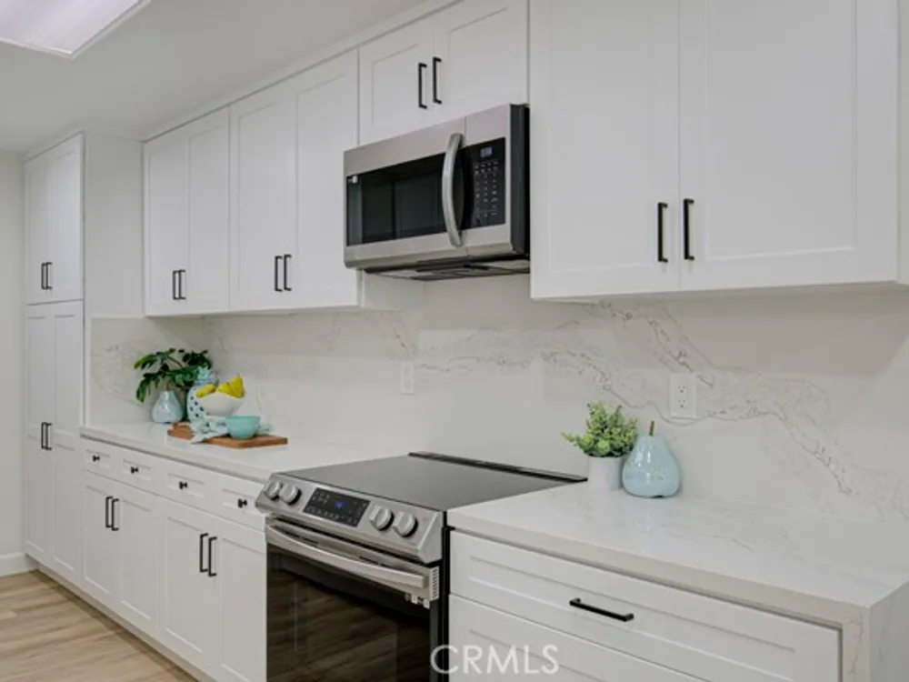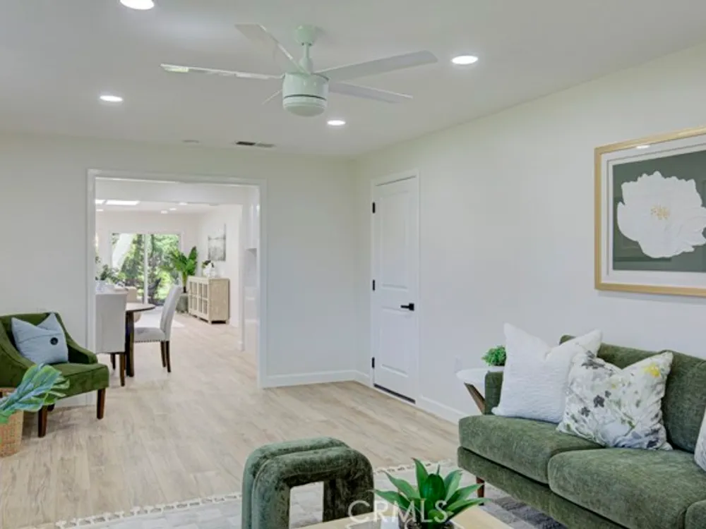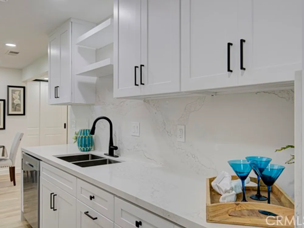 Welcome to 3217-A Via Carrizo – a fully-remodeled, expanded, single-level, two-bedroom, two bath EL DOBLE residence in the Laguna Woods senior community. This floorplan boasts approximately 1500 sq. ft. of living space with two large primary bedrooms separated by a spacious living room with direct access to the rear patio. There is a multi-purpose bonus room situated just off the dining area. This versatile space could serve as a casual TV/family room, home office, arts and crafts studio or workout area. The kitchen features lovely brand-new cabinetry with quartz countertops with waterfall edges. There is ample cabinet storage and countertop space. Additional kitchen upgrades include stainless steel appliances, soft-close cabinet doors and drawers, pots and pans drawers, a spice drawer and storage for trash and recycling. The service door to the garage originally located in the kitchen has been relocated to the bonus room allowing for the addition of more cabinet space in the kitchen. Each bedroom has large closets with mirrored doors. Both bathroom showers have seats, grab bars and convenient accessory shelves. Upgrades throughout include smooth ceilings, recessed lighting, dual-pane windows and gorgeous vinyl plank flooring. Skylights are located in the living room, kitchen a