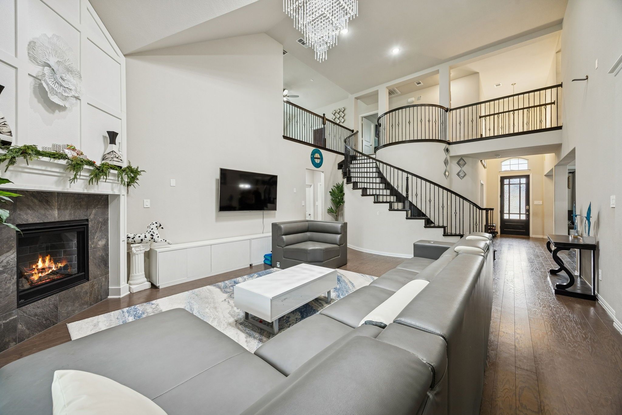 Built by Gallery Custom Homes – Stunning North-Facing Home in Woodbridge Estates Welcome to this exceptional north-facing home in the highly sought-after Woodbridge Estates community. Designed with both elegance and functionality in mind, this home offers luxury finishes and thoughtful upgrades throughout. Enjoy relaxing mornings on the covered front porch and entertain year-round on the expansive covered patio featuring outdoor kitchen and beautifully turfed backyard. Inside, the kitchen is a showstopper with a large California island, butler’s pantry, walk-in pantry, double ovens, a 36-inch gas cooktop, and stunning 3cm quartz countertops. The open-concept layout flows seamlessly and showcases rich wood flooring throughout the downstairs living areas, excluding the primary bedroom. A dramatic curved staircase adds architectural charm, while the integrated Savant smart home system with surround sound and camera pre-wiring brings modern convenience and peace of mind. Ideally located just moments from shopping, dining, grocery stores, and convenient access to FM 544, this home truly offers the perfect blend of luxury, comfort, and location