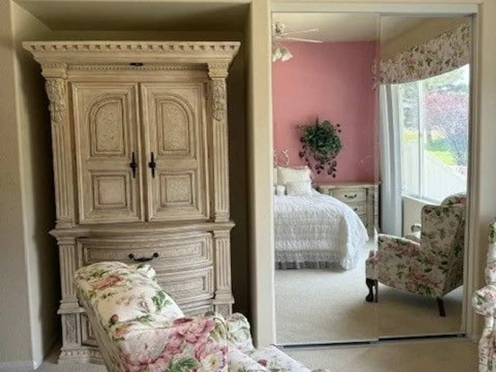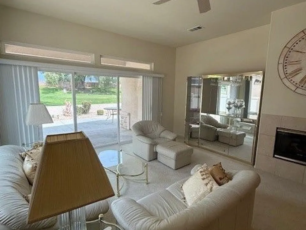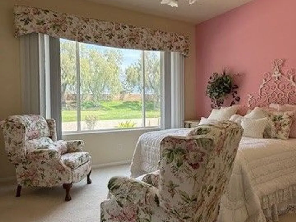 BACK ON MARKET THROUGH NO FAULT OF SELLER. POPULAR PAVE by PULTE. Light up your life with the timeless appeal of this luxurious Victoria era home. Walk into this warm inviting home and notice the attention to detail in each and every room. This unique home features the Victorian colors of blending forest green and pink in an elegant atmosphere. It may be difficult to get the man in your life through the pink door but once he sits in the great room and looks at the beautiful golf course and, if a cold day, lights the fireplace – he will be SOLD. A true blend of elegance and comfort. Home is on the Executive Golf Course with golf course and mountain views. Refrigerator, washer, dryer included. Efficient use of 1471 square feet of living space. The 2 bedrooms have mirrored closet doors, 2 full bathrooms, den/office, great room, dining area, and a lovely functional kitchen with large pantry, and the appliances stay. The laundry is in a separate room conveniently located between the kitchen and garage and has built in cabinets and a deep sink to bathe your 4 legged family members. The garage is a standard 2 car with room for a golf cart. Compare this value to San Diego, Orange County, Los Angeles County and you’ll be very pleased at all Sun Lakes has to offer in this gate-guarded senior community with 24 hour security for less than $450,000!!! The Many Amenities Include: Two 18 Hole Golf Courses - Championship & Executive, Driving Range, 2 On Site Golf Pro Shops, 3 Clubhouses, Grand Ballroom, 2 Restaurants, Indoor & Outdoor Pools, Bocce Ball, Tennis, Pickle Ball, All Types Of Clubs & Events – IF YOU’RE LUCKY ENOUGH TO LIVE IN SUN LAKES, YOU’RE LUCKY ENOUGH!