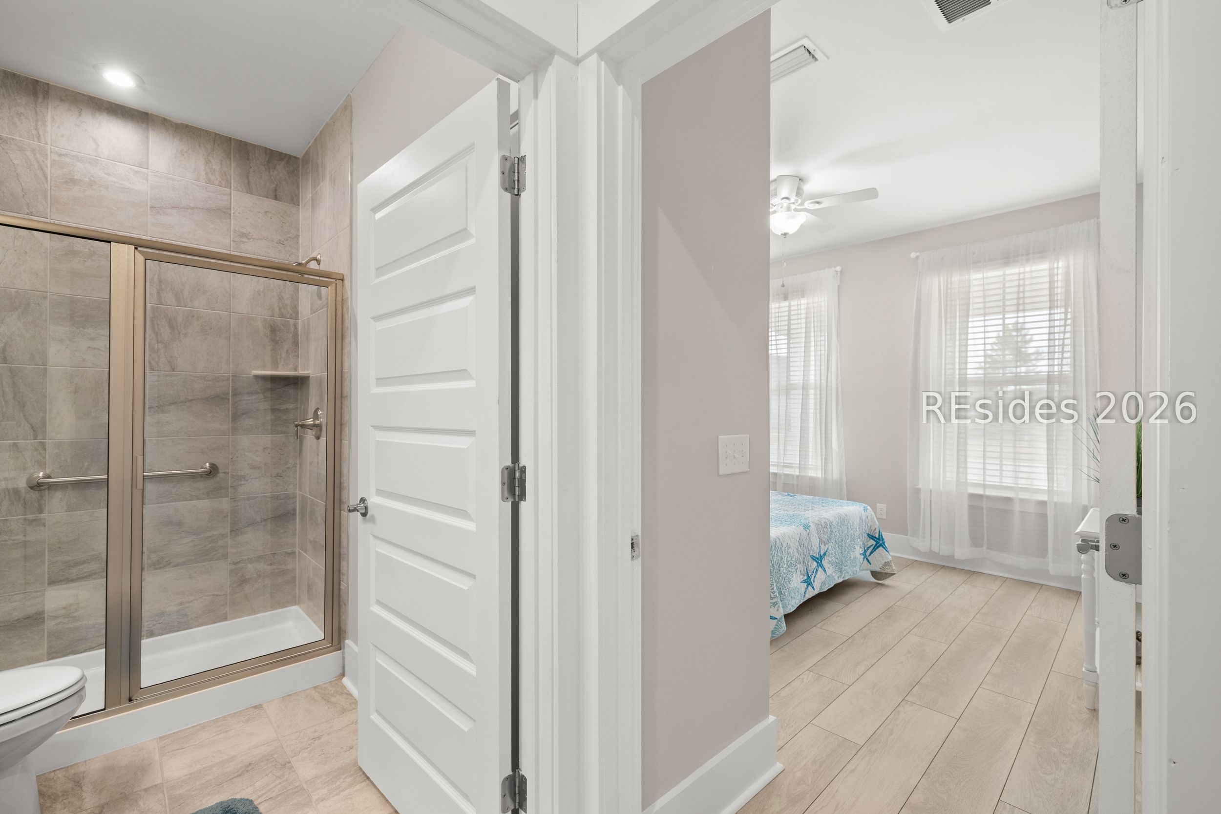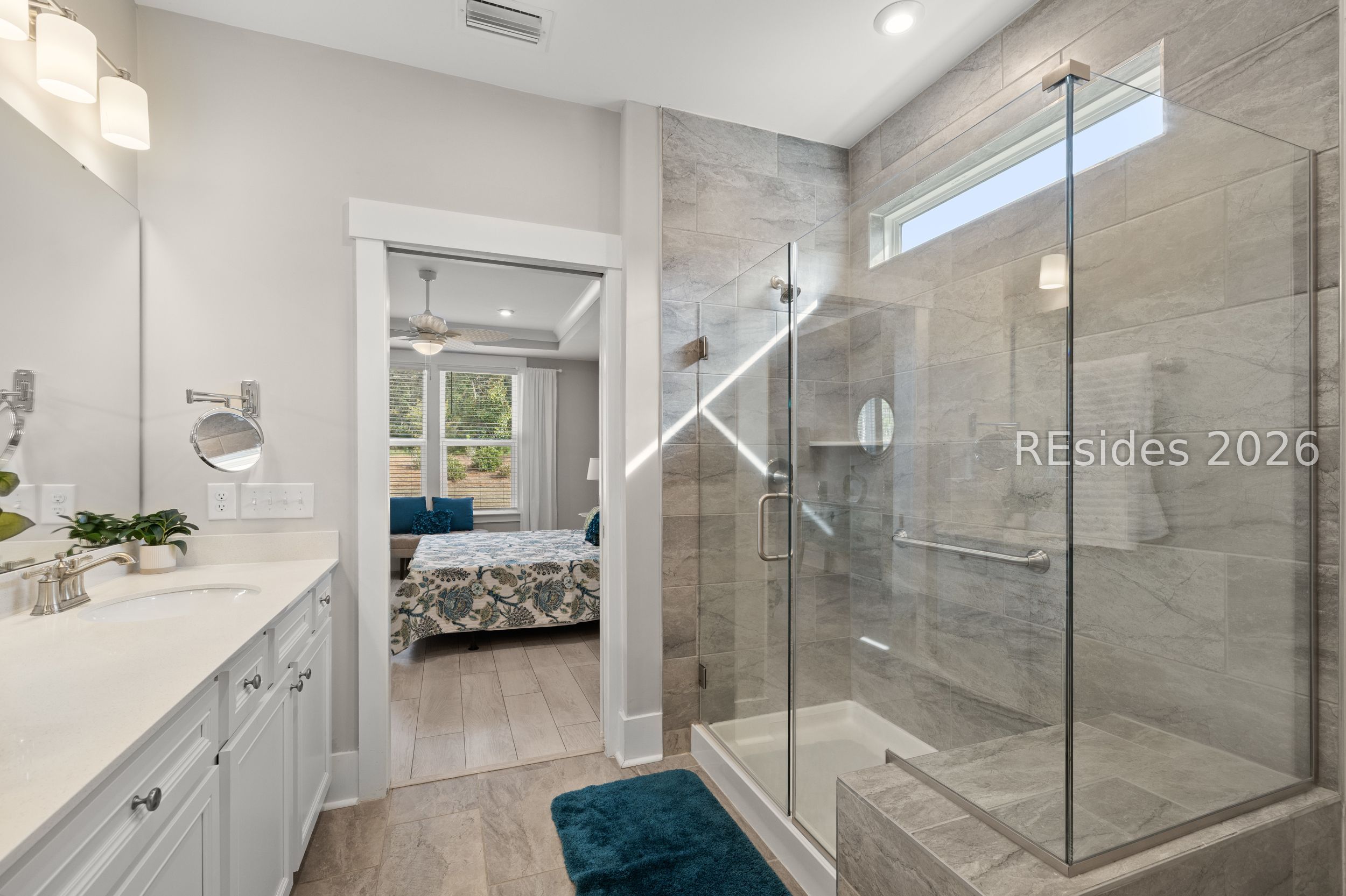 - Ceiling Fan(s), Main Level Primary, Multiple Primary Bathrooms, Permanent Attic Stairs, Separate Shower, Window Treatments, Entrance Foyer, Pantry