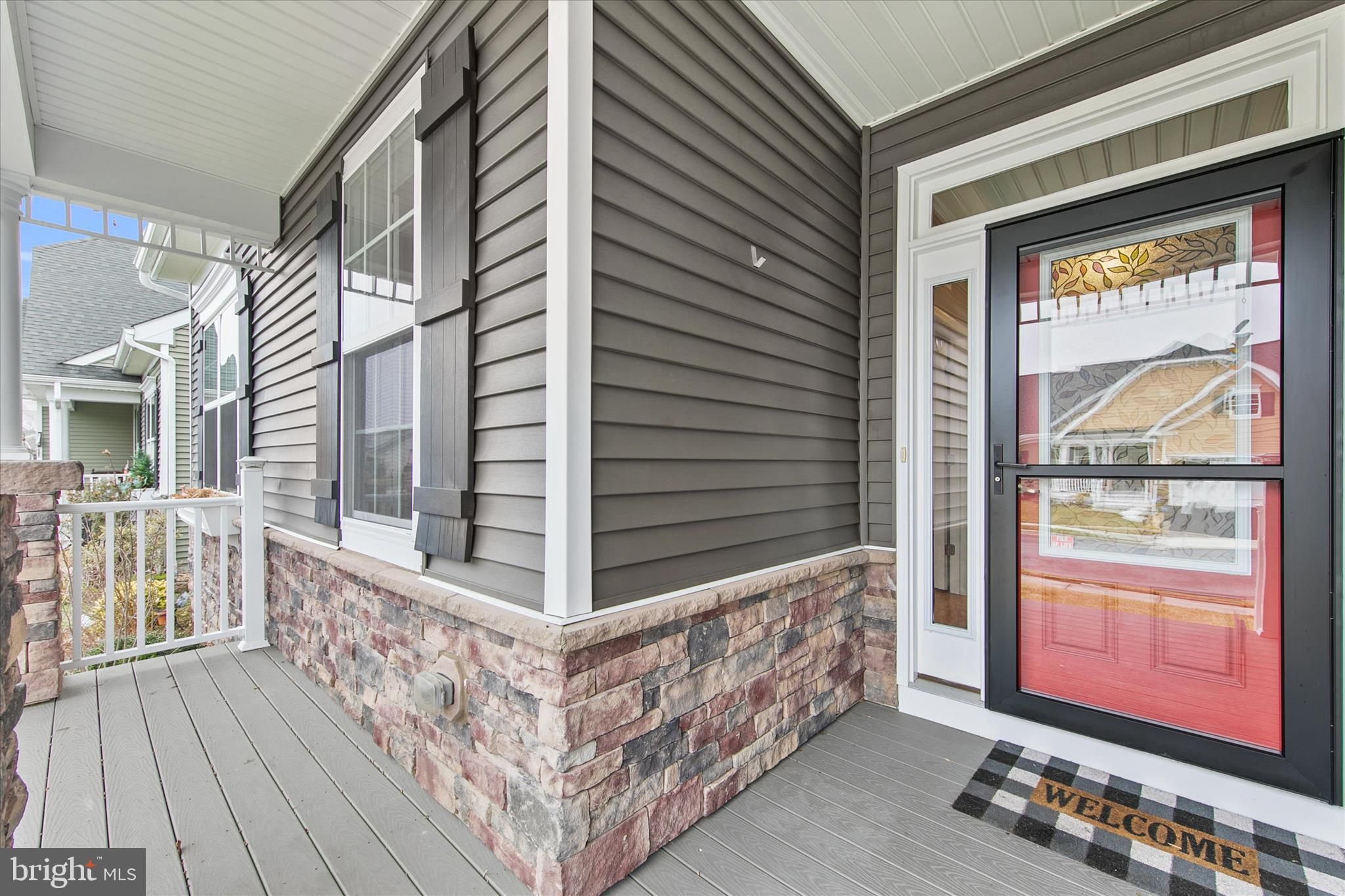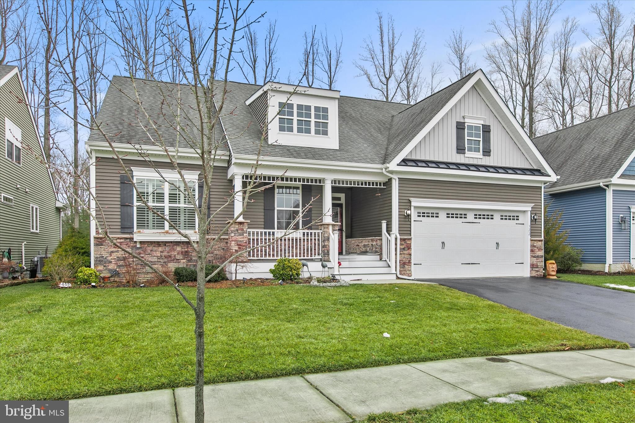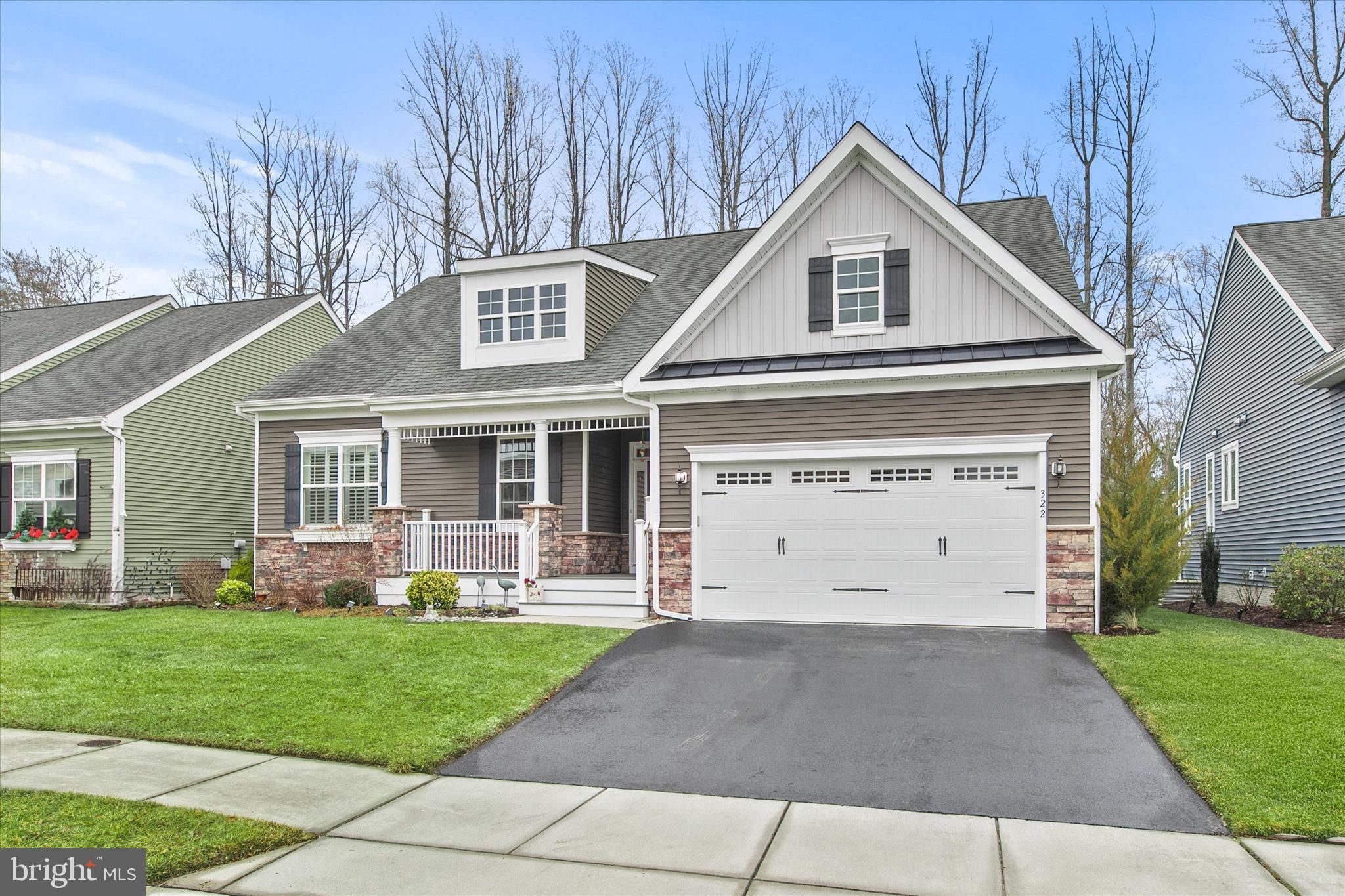 Welcome to this beautifully appointed Jefferson model, thoughtfully enhanced with custom construction upgrades and refined design details that blend comfort, style, and functionality. From the moment you arrive, the home’s charming stone accents and inviting front porch create a warm first impression. Step inside to a welcoming foyer featuring a transom window, tray ceiling, custom millwork, storm door with full screens, and rich wide-plank oak hardwood flooring that immediately showcases the craftsmanship found throughout the home. This residence shows like new, highlighted by custom wainscoting, chair rail detailing, tray ceilings, and elegant wall coverings that add architectural depth and character. Soft, nature-inspired color palettes complement the warm wood tones, creating a serene and inviting atmosphere. The spacious living room serves as the heart of the home, offering both comfort and style. A cozy gas fireplace with a raised hearth creates a welcoming focal point, while the tray ceiling, ceiling fan, and plantation shutters enhance both function and visual appeal. A striking live-edge wood shelf adds a distinctive designer touch. The open layout flows seamlessly into the kitchen and dining areas, making the space ideal for entertaining and everyday living. The gourmet kitchen is designed for both beauty and performance, featuring granite countertops, upgraded stainless steel appliances, a gas double oven with griddle plate, built-in microwave, and JennAir dishwasher. Two pantries provide exceptional storage rarely found in this model. The oversized island offers generous prep space, additional storage, casual seating, and stylish pendant lighting. Completing the kitchen, 42-inch soft-close cabinetry with under-cabinet lighting delivers both elegance and convenience. Adjacent to the kitchen, the bright dining area is accented by a modern chandelier and opens into a stunning sunroom filled with natural light. Plantation shutters, a tray ceiling, and ceiling fan create a peaceful space ideal for relaxing or entertaining. Sliding glass doors lead to a large custom maintenance-free poly deck with a motorized awning and integrated lighting, extending the living space outdoors. The outdoor area transitions from the deck to an expansive stone terrace designed for gatherings and relaxation. The terrace features built-in seating and accent lighting. The seller has added professionally designed landscaping with specimen and native plantings that supply continual blooms and greenery from early Spring through Winter (mostly grasses in Winter) especially curated for pollinators and birds. The gently sloped common ground in the rear leads to a wooded backdrop and walking path in the woods, offering a tranquil natural setting. An irrigation system and HOA lawn care provides easy landscape maintenance. The primary suite offers a spacious retreat, highlighted by a large walk-in closet with custom organization. The luxurious en suite bath features ceramic tile flooring, a frameless glass shower with bench seating, granite dual vanity, and a linen closet. Additional flexible living spaces include a front bedroom with French doors, plantation shutters, custom closet system, hardwood flooring, ideal as a guest room, office, or den. A second front bedroom features upgraded carpeting and plantation shutters. The hall bath includes tile flooring, a tiled tub surround, and granite vanity. A well-equipped laundry room offers a utility sink and built-in shelving. Additional highlights include a freshly painted two-car garage with newly epoxied flooring. The full unfinished basement provides exceptional storage and future expansion potential, complete with a professionally finished entry landing. This exceptional home offers refined finishes, thoughtful upgrades, and a peaceful natural setting. Heritage Creek community amenities include lawn maintenance, a walking path, fitness center, clubhouse, and pool.