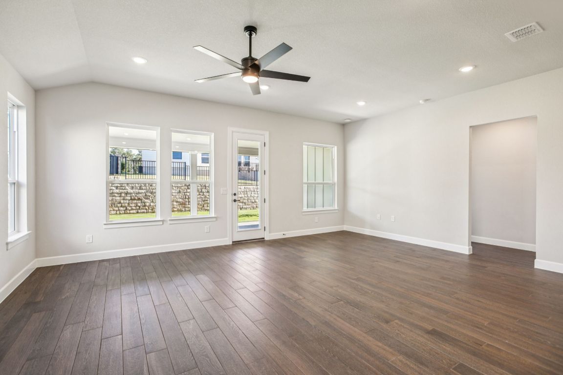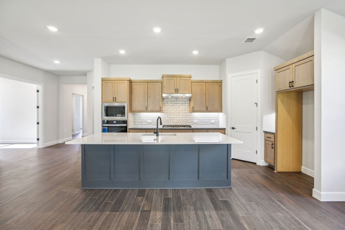 Goodwin plan with upgraded kitchen, quartz countertops, optional study with double doors, enlarged covered patio