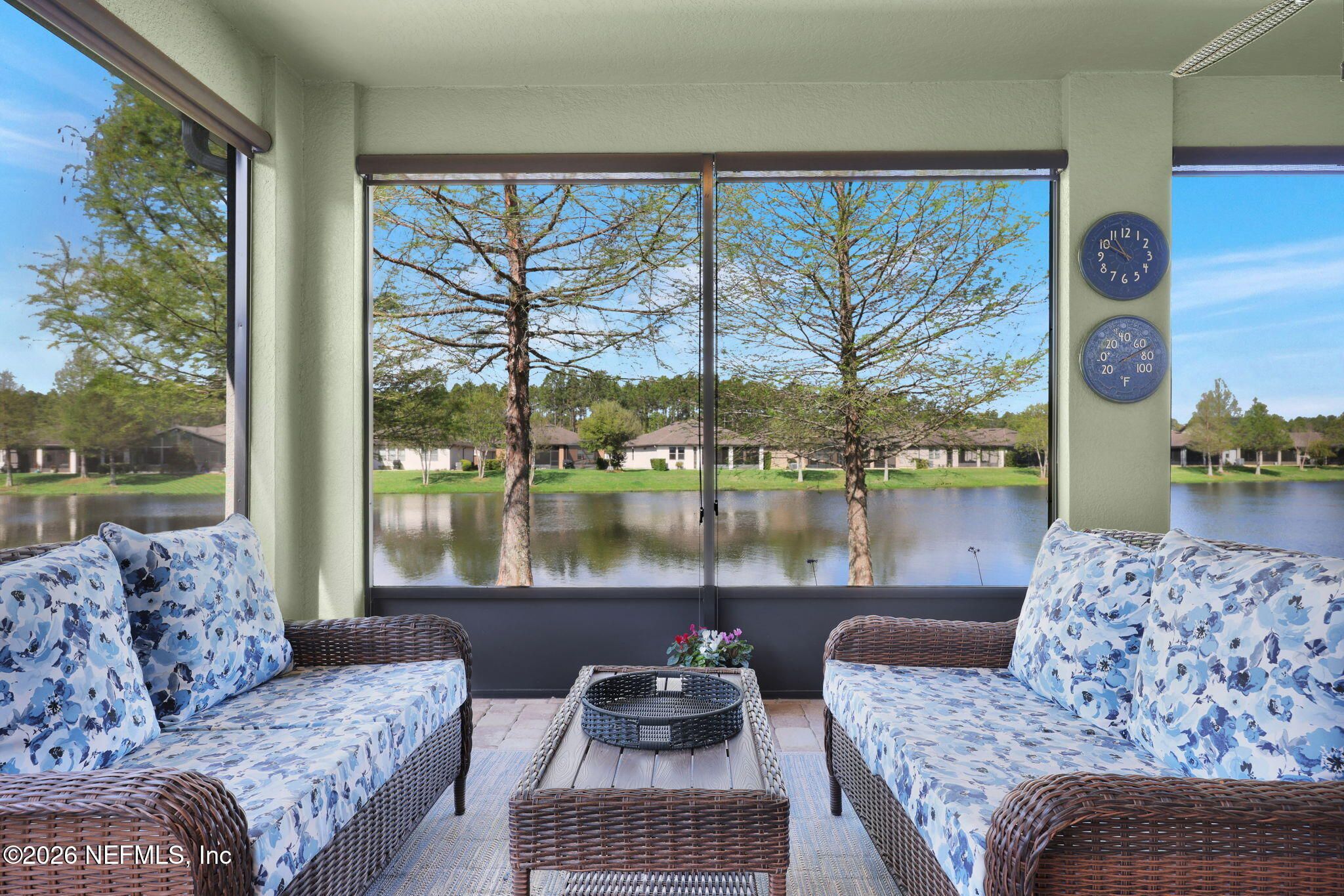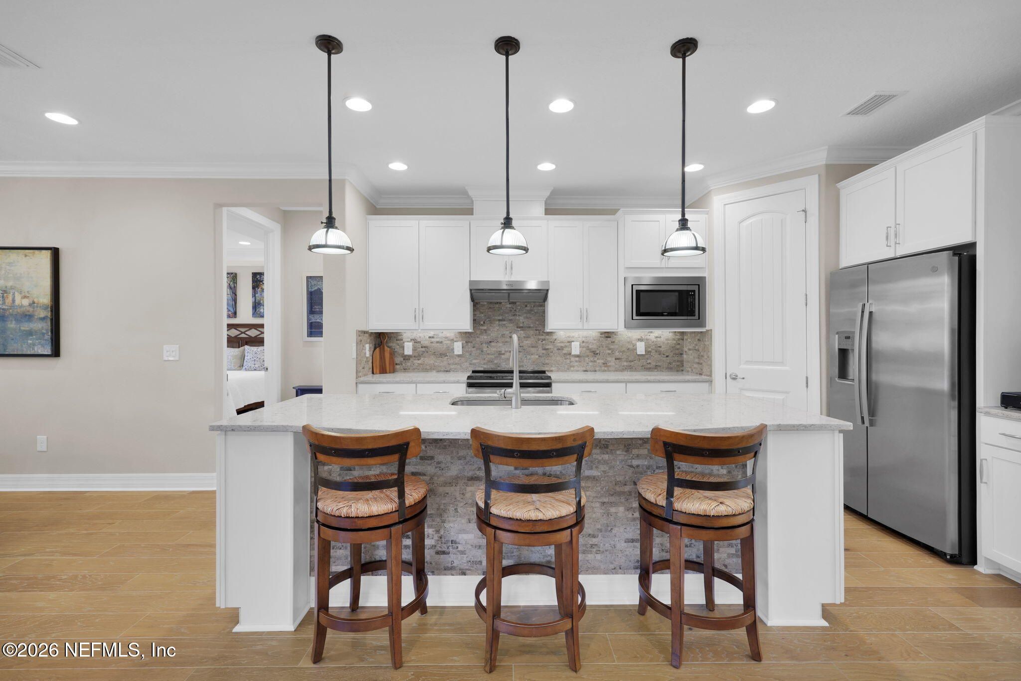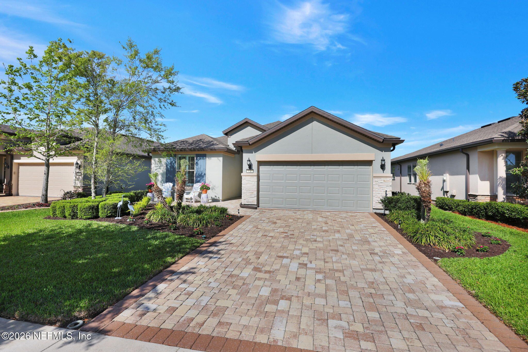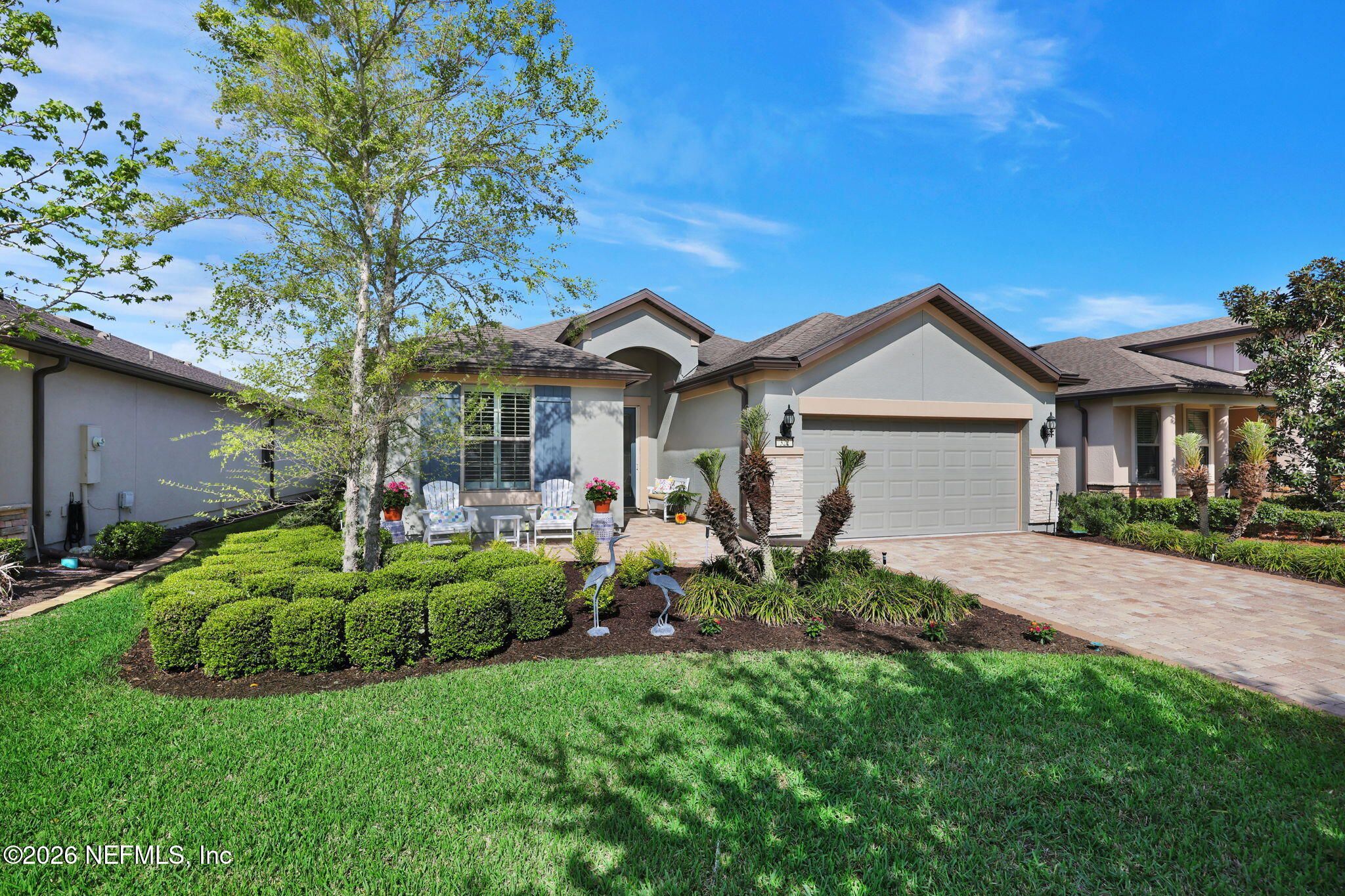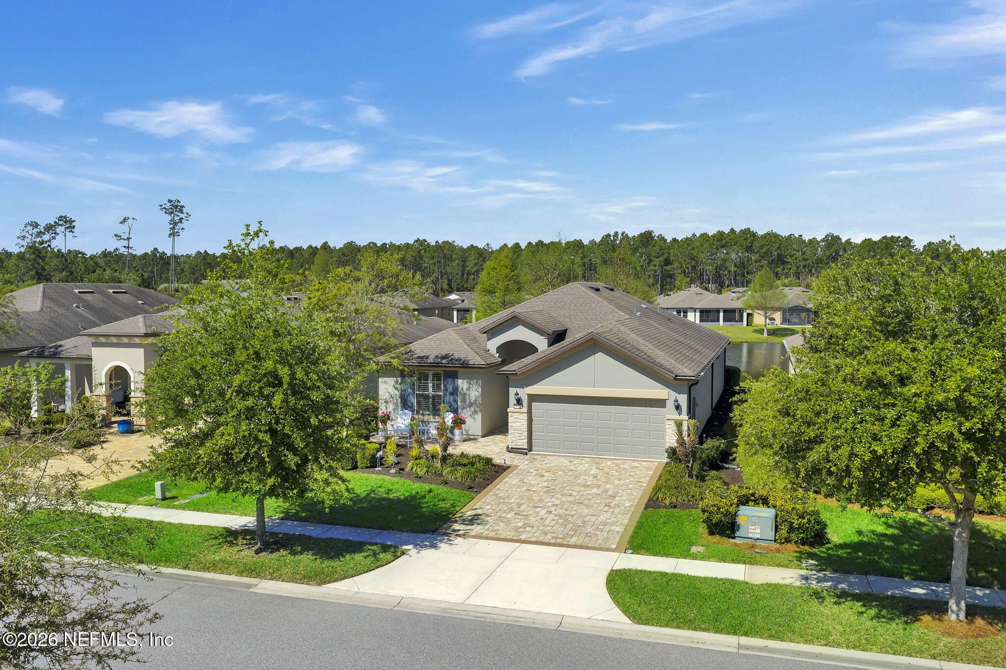 Step into refined coastal living in this impeccably maintained, move-in ready waterfront home located in the highly sought-after 55+ active adult community of Del Webb Ponte Vedra. Blending timeless elegance with modern functionality, this residence offers a rare opportunity to enjoy resort-style living in one of Northeast Florida's premier active adult neighborhoods. Perfectly positioned on a premium waterfront homesite, the popular Summerwood floor plan showcases thoughtful design and effortless flow, featuring 2 spacious bedrooms, 2 well-appointed bathrooms, and a versatile study/flex room--ideal for a home office, hobby space, or guest accommodations. Every square foot is intentionally designed to maximize comfort, efficiency, and everyday livability. A welcoming pavered front porch sets the tone for relaxed Florida living, while inside, the upgraded gourmet kitchen serves as the heart of the home. Highlights include crisp white cabinetry, quartz countertops, a large center island, updated major kitchen appliances, and a custom pantry, all complemented by a bright dining area perfect for both casual meals and entertaining guests. The open-concept layout is filled with natural light, enhanced by expansive windows and triple sliding glass doors that seamlessly connect indoor and outdoor living spaces. Step outside to your extended, screened paver lanai, where tranquil water views create the perfect backdrop for morning coffee or evening relaxation--bringing the best of Florida's indoor-outdoor lifestyle right to your doorstep. The luxurious primary suite offers a peaceful retreat, complete with a spa-inspired ensuite bath featuring a walk-in shower, elegant finishes, and a custom oversized walk-in closet designed for optimal organization. A standout feature of the home is the custom-designed laundry room, showcasing beautiful cabinetry, a utility sink, and stylish tile backsplash--combining convenience with elevated design. Additional Premium Features Include: ~ Surround sound speakers in the family room ~ Plantation shutters throughout ~ Custom closet systems for enhanced storage ~ Crown molding and 8-foot interior doors for a refined touch ~ Rich wood flooring throughout main living areas and in the bedrooms and flex space ~ Whole-house water softener system ~ Extended screened lanai with privacy shades ~ Fresh interior paint (2024) ~ Fresh exterior paint (2022) ~ New GE Refrigerator (12/22) ~ New water heater (10/23) ~ New GE Profile dishwasher (2/25) ~ GE Profile Smart Slide-In Range (2/25) ~ Extended 2.5-car garage with epoxy flooring and motorized overhead storage for ease of use. ~ Garage Cabinets and workbench & MUCH MORE! This exceptional home delivers the perfect blend of low-maintenance luxury, thoughtful upgrades, and serene waterfront living--ideal for buyers seeking an active, vibrant lifestyle without compromise. This home isn't just a place to live - it's a lifestyle. With easy access to the Anastasia Club's resort-style amenities, including pools, tennis courts, fitness facilities, and social events, you'll enjoy everything Del Webb Ponte Vedra has to offer. Don't miss your chance to live the Florida dream - schedule your showing today! Live the Vibrant 55+ Lifestyle at Riverwood by Del Webb a premier Active Adult Community nestled in the prestigious Ponte Vedra area between Jacksonville and St. Augustine, offering easy access to pristine beaches, fine dining, shopping, and medical facilities. Community Highlights: Natural Beauty: Surrounded by 2,400 acres of the serene Nocatee Preserve and located near the Atlantic Ocean. Resort-Style Amenities at the Anastasia Club: Grand ballroom Indoor & outdoor pools Sauna & spa State-of-the-art fitness center Tennis courts Pickleball & bocce ball Full-time Lifestyle & Fitness Director coordinating year-round events and social activities. Residents also enjoy access to the nearby Nocatee Splash Water Park featuring a lazy river, water slides, lagoon pool, and zip lines. The Nocatee Lifestyle Living in Nocatee enhances your lifestyle with: Splash Water Park & Rip Tide Slide Lazy Tides River & lagoon pool 330-foot zip line Swim Club Pool & Fitness Club with cardio equipment, free weights & group classes Scenic Greenway Trails winding through 2,400 acres along the Intracoastal Waterway Spray Park for additional recreation Florida Living at Its Finest.