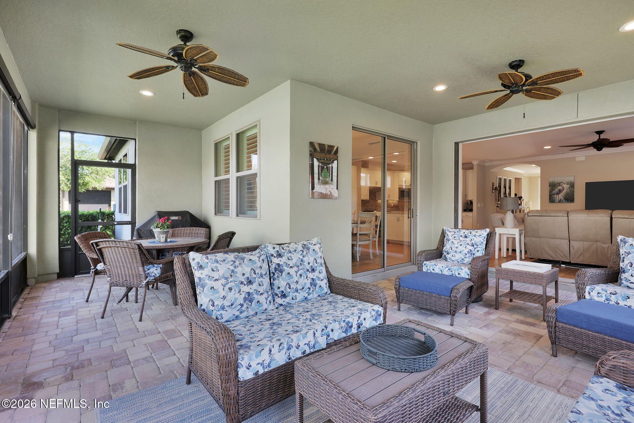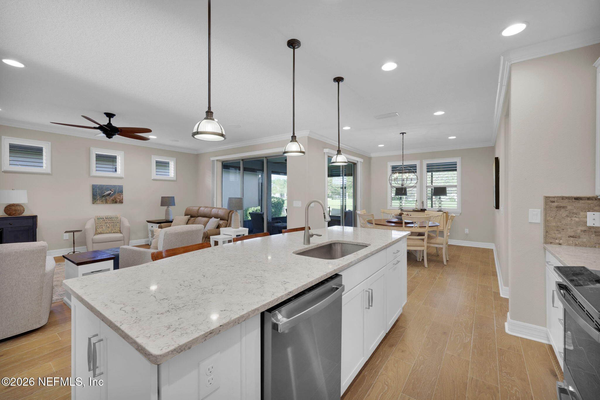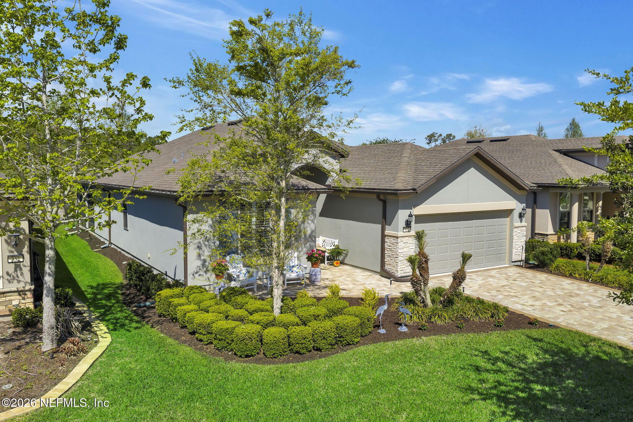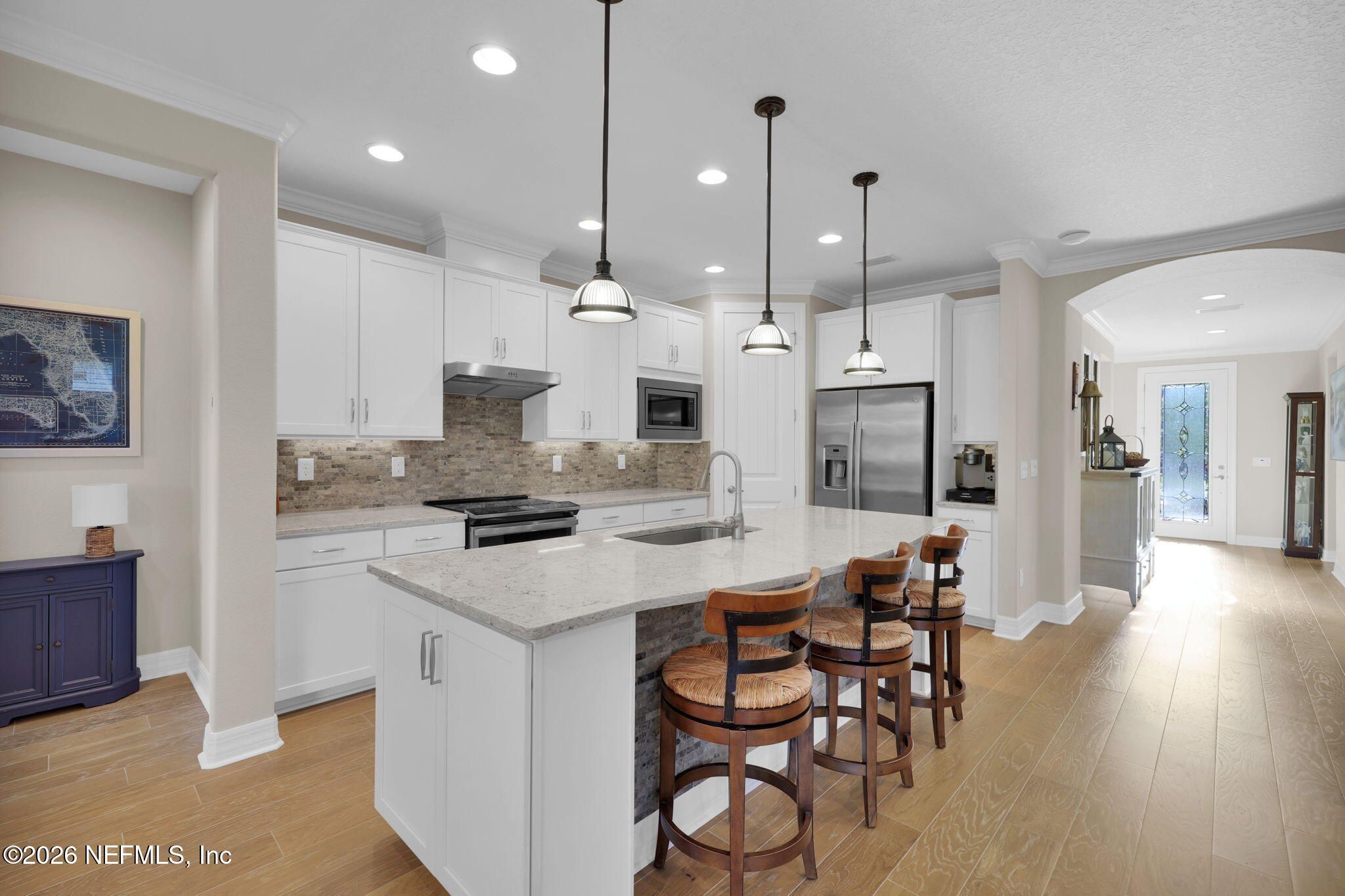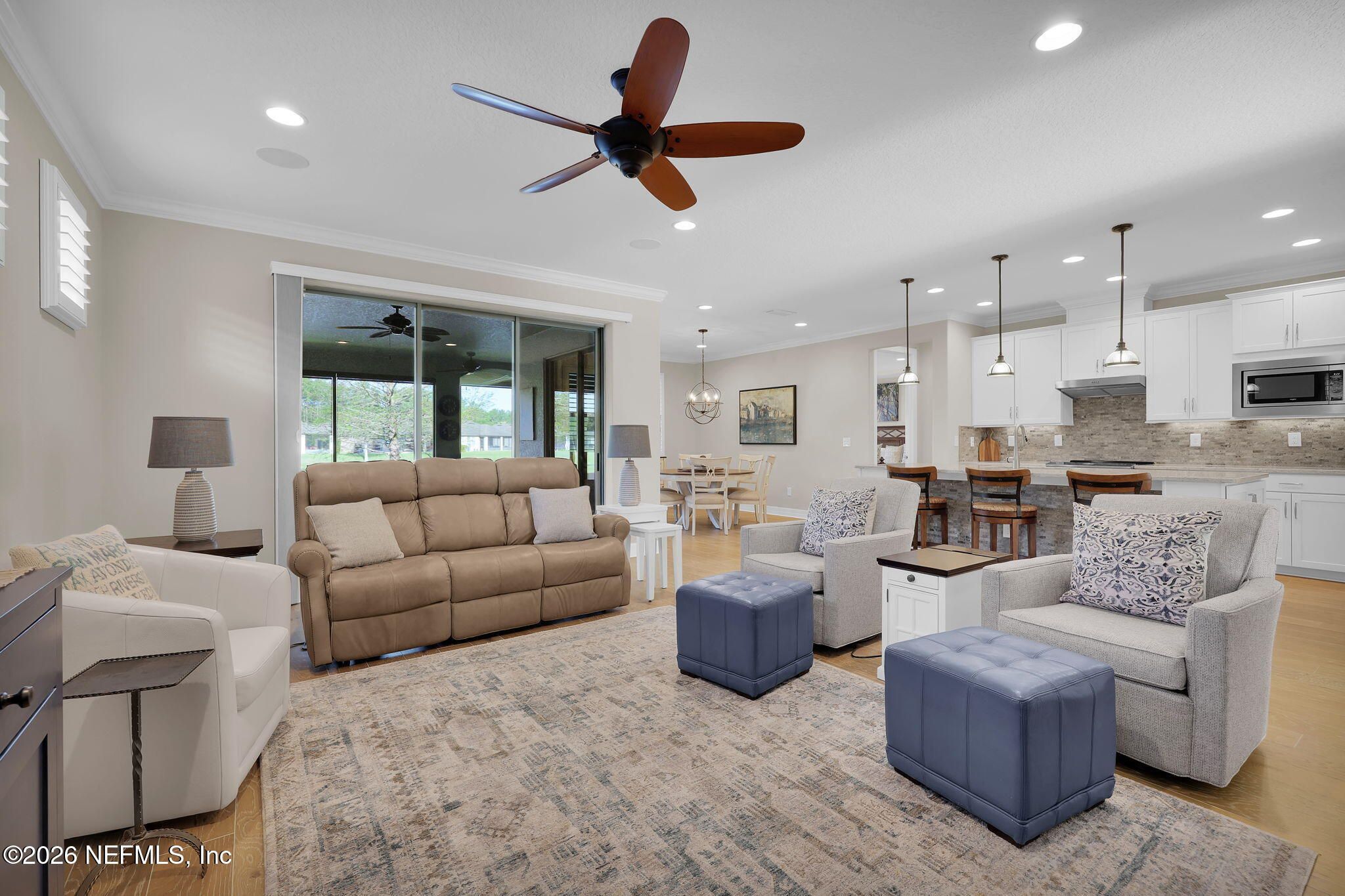 Step into refined coastal living in this impeccably maintained, move-in ready waterfront home located in the highly sought-after 55+ active adult community of Del Webb Ponte Vedra. Blending timeless elegance with modern functionality, this residence offers a rare opportunity to enjoy resort-style living in one of Northeast Florida's premier active adult neighborhoods. Perfectly positioned on a premium waterfront homesite, the popular Summerwood floor plan showcases thoughtful design and effortless flow, featuring 2 spacious bedrooms, 2 well-appointed bathrooms, and a versatile study/flex room--ideal for a home office, hobby space, or guest accommodations. Every square foot is intentionally designed to maximize comfort, efficiency, and everyday livability. A welcoming pavered front porch sets the tone for relaxed Florida living, while inside, the upgraded gourmet kitchen serves as the heart of the home. Highlights include crisp white cabinetry, quartz countertops, a large center island, updated major kitchen appliances, and a custom pantry, all complemented by a bright dining area perfect for both casual meals and entertaining guests. The open-concept layout is filled with natural light, enhanced by expansive windows and triple sliding glass doors that seamlessly connect indoor and outdoor living spaces. Step outside to your extended, screened paver lanai, where tranquil water views create the perfect backdrop for morning coffee or evening relaxation--bringing the best of Florida's indoor-outdoor lifestyle right to your doorstep. The luxurious primary suite offers a peaceful retreat, complete with a spa-inspired ensuite bath featuring a walk-in shower, elegant finishes, and a custom oversized walk-in closet designed for optimal organization. A standout feature of the home is the custom-designed laundry room, showcasing beautiful cabinetry, a utility sink, and stylish tile backsplash--combining convenience with elevated design. Additional Premium Features Include: ~ Surround sound speakers in the family room ~ Plantation shutters throughout ~ Custom closet systems for enhanced storage ~ Crown molding and 8-foot interior doors for a refined touch ~ Rich wood flooring throughout main living areas and in the bedrooms and flex space ~ Whole-house water softener system ~ Extended screened lanai with privacy shades ~ Fresh interior paint (2024) ~ Fresh exterior paint (2022) ~ New GE Refrigerator (12/22) ~ New water heater (10/23) ~ New GE Profile dishwasher (2/25) ~ GE Profile Smart Slide-In Range (2/25) ~ Extended 2.5-car garage with epoxy flooring and motorized overhead storage for ease of use. ~ Garage Cabinets and workbench & MUCH MORE! This exceptional home delivers the perfect blend of low-maintenance luxury, thoughtful upgrades, and serene waterfront living--ideal for buyers seeking an active, vibrant lifestyle without compromise. This home isn't just a place to live - it's a lifestyle. With easy access to the Anastasia Club's resort-style amenities, including pools, tennis courts, fitness facilities, and social events, you'll enjoy everything Del Webb Ponte Vedra has to offer. Don't miss your chance to live the Florida dream - schedule your showing today! Live the Vibrant 55+ Lifestyle at Riverwood by Del Webb a premier Active Adult Community nestled in the prestigious Ponte Vedra area between Jacksonville and St. Augustine, offering easy access to pristine beaches, fine dining, shopping, and medical facilities. Community Highlights: Natural Beauty: Surrounded by 2,400 acres of the serene Nocatee Preserve and located near the Atlantic Ocean. Resort-Style Amenities at the Anastasia Club: Grand ballroom Indoor & outdoor pools Sauna & spa State-of-the-art fitness center Tennis courts Pickleball & bocce ball Full-time Lifestyle & Fitness Director coordinating year-round events and social activities. Residents also enjoy access to the nearby Nocatee Splash Water Park featuring a lazy river, water slides, lagoon pool, and zip lines. The Nocatee Lifestyle Living in Nocatee enhances your lifestyle with: Splash Water Park & Rip Tide Slide Lazy Tides River & lagoon pool 330-foot zip line Swim Club Pool & Fitness Club with cardio equipment, free weights & group classes Scenic Greenway Trails winding through 2,400 acres along the Intracoastal Waterway Spray Park for additional recreation Florida Living at Its Finest.