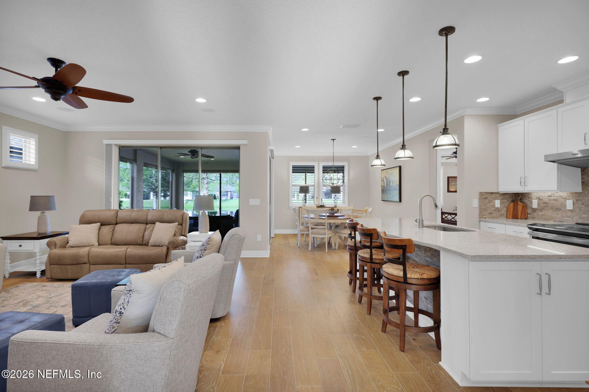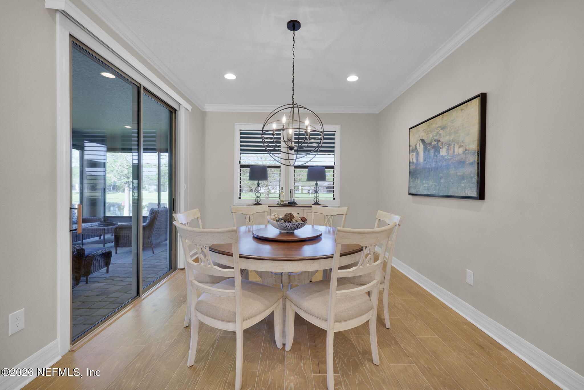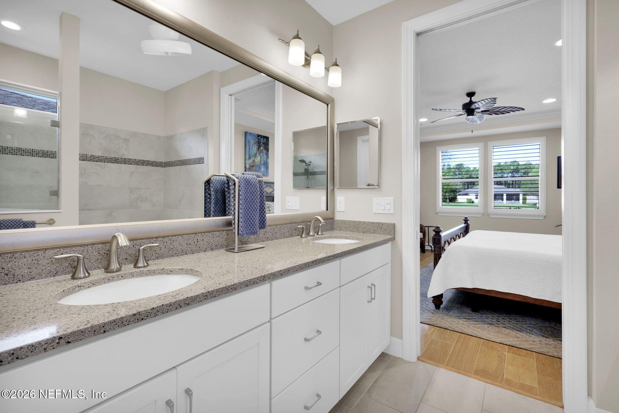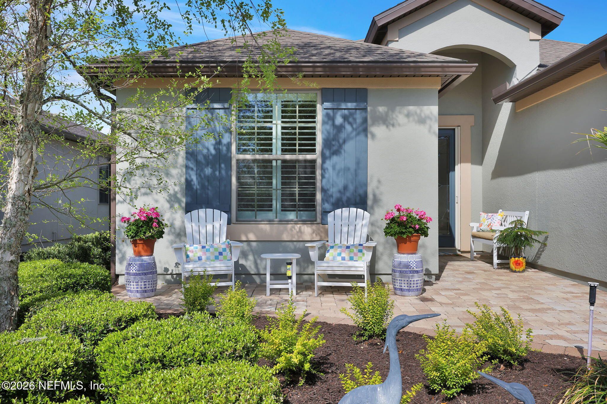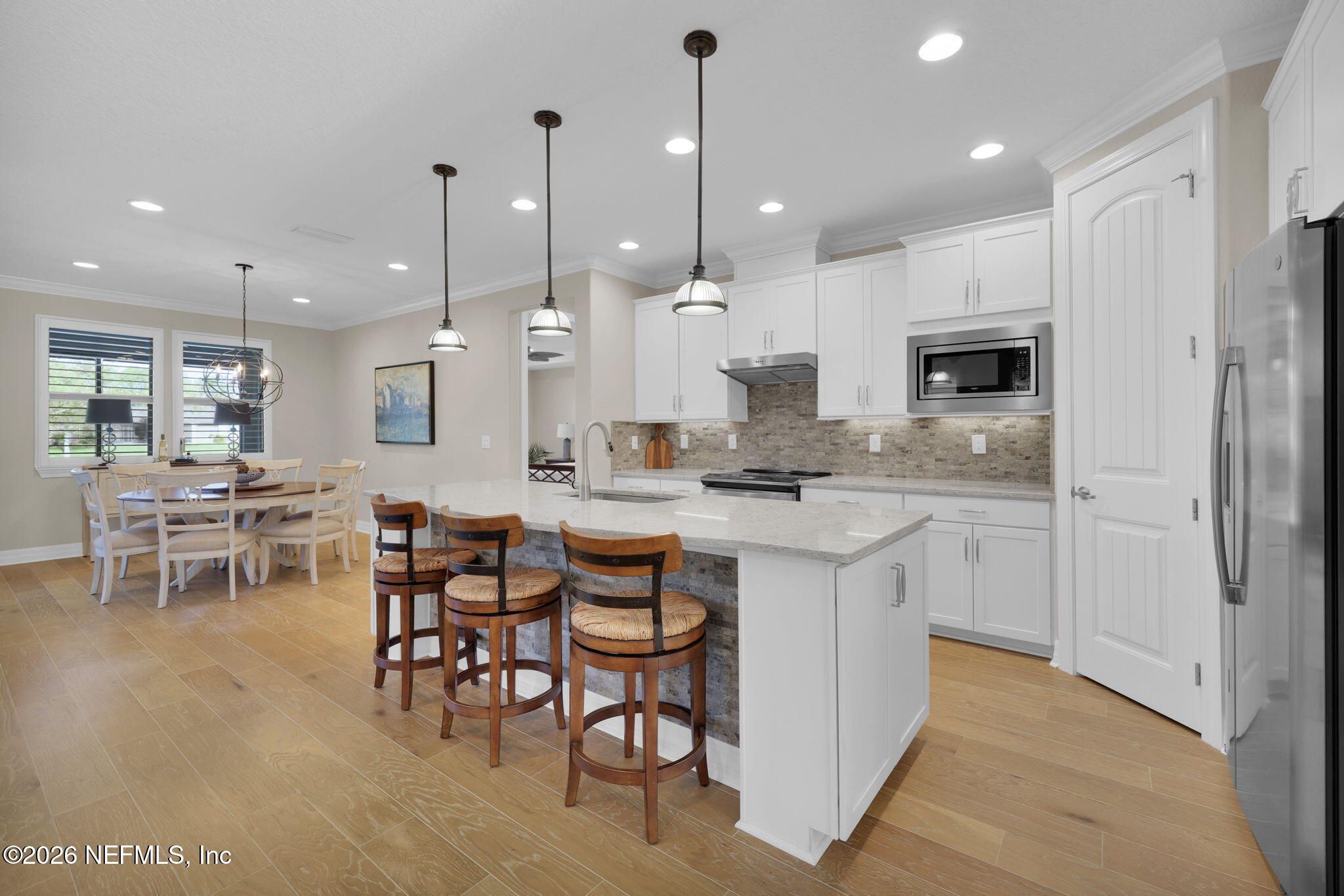 Step into refined coastal living in this impeccably maintained, move-in ready waterfront home located in the highly sought-after 55+ active adult community of Del Webb Ponte Vedra. Blending timeless elegance with modern functionality, this residence offers a rare opportunity to enjoy resort-style living in one of Northeast Florida's premier active adult neighborhoods. Perfectly positioned on a premium waterfront homesite, the popular Summerwood floor plan showcases thoughtful design and effortless flow, featuring 2 spacious bedrooms, 2 well-appointed bathrooms, and a versatile study/flex room--ideal for a home office, hobby space, or guest accommodations. Every square foot is intentionally designed to maximize comfort, efficiency, and everyday livability. A welcoming pavered front porch sets the tone for relaxed Florida living, while inside, the upgraded gourmet kitchen serves as the heart of the home. Highlights include crisp white cabinetry, quartz countertops, a large center island, updated major kitchen appliances, and a custom pantry, all complemented by a bright dining area perfect for both casual meals and entertaining guests. The open-concept layout is filled with natural light, enhanced by expansive windows and triple sliding glass doors that seamlessly connect indoor and outdoor living spaces. Step outside to your extended, screened paver lanai, where tranquil water views create the perfect backdrop for morning coffee or evening relaxation--bringing the best of Florida's indoor-outdoor lifestyle right to your doorstep. The luxurious primary suite offers a peaceful retreat, complete with a spa-inspired ensuite bath featuring a walk-in shower, elegant finishes, and a custom oversized walk-in closet designed for optimal organization. A standout feature of the home is the custom-designed laundry room, showcasing beautiful cabinetry, a utility sink, and stylish tile backsplash--combining convenience with elevated design. Additional Premium Features Include: ~ Surround sound speakers in the family room ~ Plantation shutters throughout ~ Custom closet systems for enhanced storage ~ Crown molding and 8-foot interior doors for a refined touch ~ Rich wood flooring throughout main living areas and in the bedrooms and flex space ~ Whole-house water softener system ~ Extended screened lanai with privacy shades ~ Fresh interior paint (2024) ~ Fresh exterior paint (2022) ~ New GE Refrigerator (12/22) ~ New water heater (10/23) ~ New GE Profile dishwasher (2/25) ~ GE Profile Smart Slide-In Range (2/25) ~ Extended 2.5-car garage with epoxy flooring and motorized overhead storage for ease of use. ~ Garage Cabinets and workbench & MUCH MORE! This exceptional home delivers the perfect blend of low-maintenance luxury, thoughtful upgrades, and serene waterfront living--ideal for buyers seeking an active, vibrant lifestyle without compromise. This home isn't just a place to live - it's a lifestyle. With easy access to the Anastasia Club's resort-style amenities, including pools, tennis courts, fitness facilities, and social events, you'll enjoy everything Del Webb Ponte Vedra has to offer. Don't miss your chance to live the Florida dream - schedule your showing today! Live the Vibrant 55+ Lifestyle at Riverwood by Del Webb a premier Active Adult Community nestled in the prestigious Ponte Vedra area between Jacksonville and St. Augustine, offering easy access to pristine beaches, fine dining, shopping, and medical facilities. Community Highlights: Natural Beauty: Surrounded by 2,400 acres of the serene Nocatee Preserve and located near the Atlantic Ocean. Resort-Style Amenities at the Anastasia Club: Grand ballroom Indoor & outdoor pools Sauna & spa State-of-the-art fitness center Tennis courts Pickleball & bocce ball Full-time Lifestyle & Fitness Director coordinating year-round events and social activities. Residents also enjoy access to the nearby Nocatee Splash Water Park featuring a lazy river, water slides, lagoon pool, and zip lines. The Nocatee Lifestyle Living in Nocatee enhances your lifestyle with: Splash Water Park & Rip Tide Slide Lazy Tides River & lagoon pool 330-foot zip line Swim Club Pool & Fitness Club with cardio equipment, free weights & group classes Scenic Greenway Trails winding through 2,400 acres along the Intracoastal Waterway Spray Park for additional recreation Florida Living at Its Finest.
