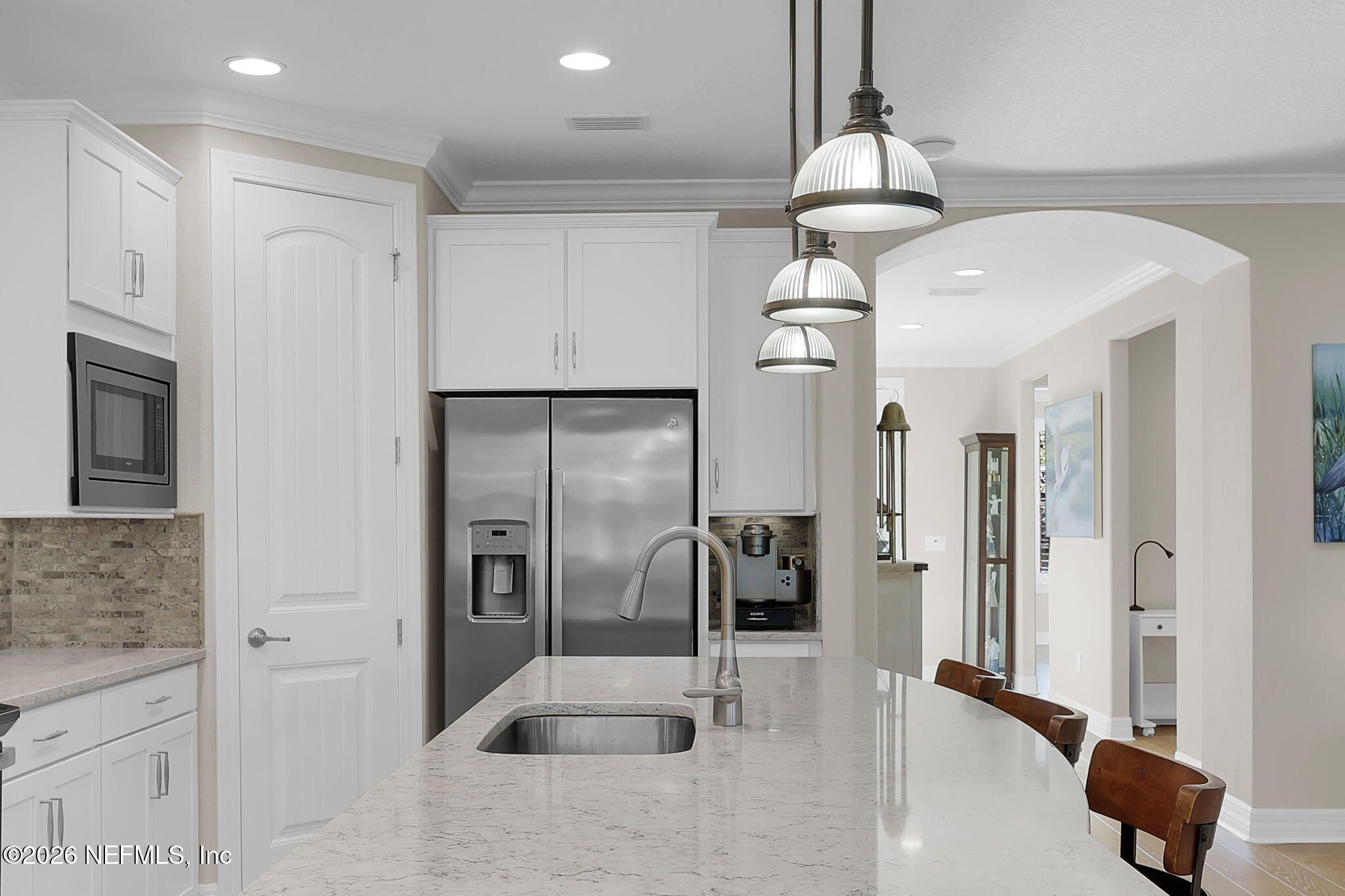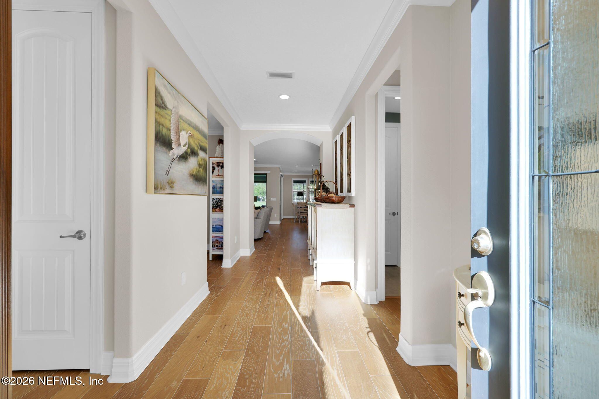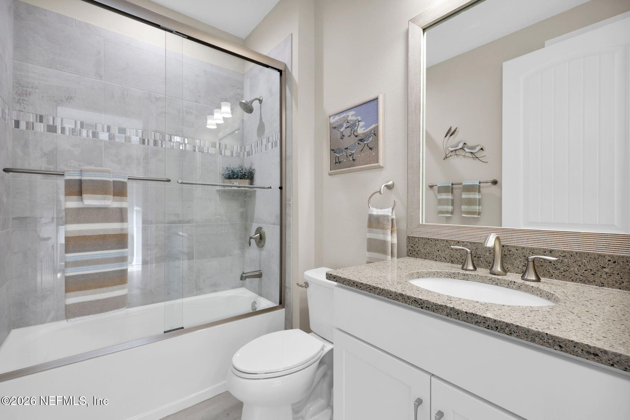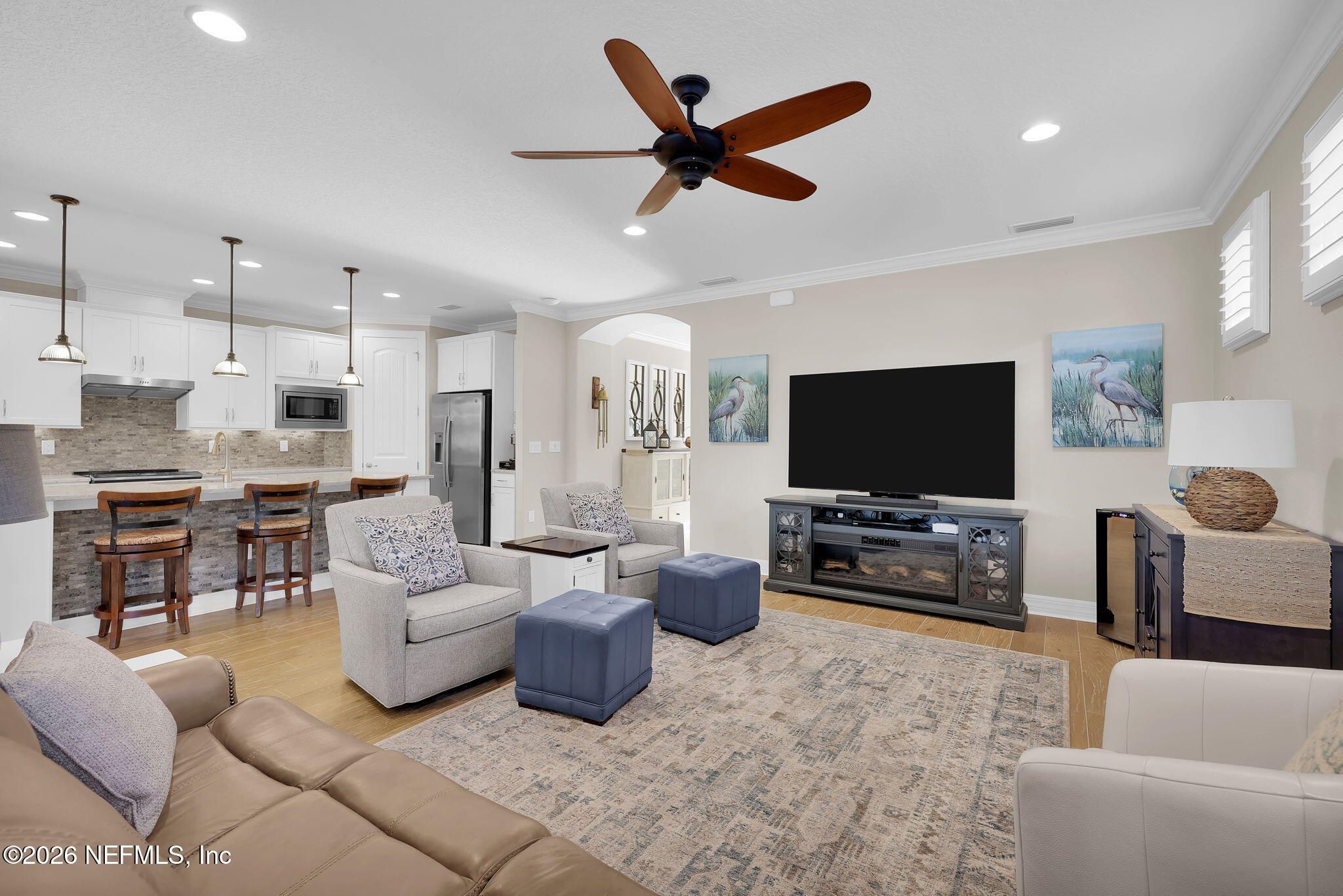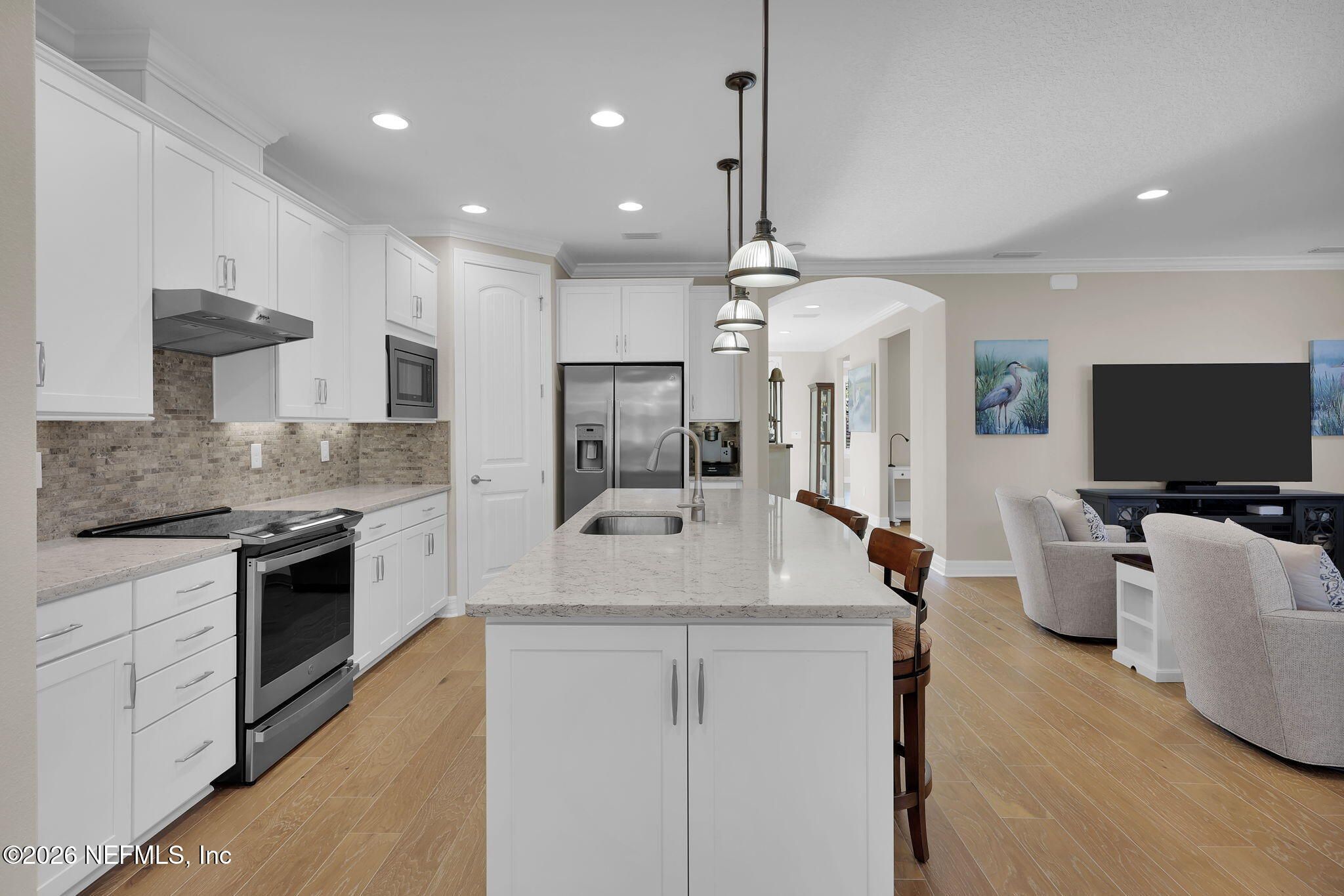 Step into refined coastal living in this impeccably maintained, move-in ready waterfront home located in the highly sought-after 55+ active adult community of Del Webb Ponte Vedra. Blending timeless elegance with modern functionality, this residence offers a rare opportunity to enjoy resort-style living in one of Northeast Florida's premier active adult neighborhoods. Perfectly positioned on a premium waterfront homesite, the popular Summerwood floor plan showcases thoughtful design and effortless flow, featuring 2 spacious bedrooms, 2 well-appointed bathrooms, and a versatile study/flex room--ideal for a home office, hobby space, or guest accommodations. Every square foot is intentionally designed to maximize comfort, efficiency, and everyday livability. A welcoming pavered front porch sets the tone for relaxed Florida living, while inside, the upgraded gourmet kitchen serves as the heart of the home. Highlights include crisp white cabinetry, quartz countertops, a large center island, updated major kitchen appliances, and a custom pantry, all complemented by a bright dining area perfect for both casual meals and entertaining guests. The open-concept layout is filled with natural light, enhanced by expansive windows and triple sliding glass doors that seamlessly connect indoor and outdoor living spaces. Step outside to your extended, screened paver lanai, where tranquil water views create the perfect backdrop for morning coffee or evening relaxation--bringing the best of Florida's indoor-outdoor lifestyle right to your doorstep. The luxurious primary suite offers a peaceful retreat, complete with a spa-inspired ensuite bath featuring a walk-in shower, elegant finishes, and a custom oversized walk-in closet designed for optimal organization. A standout feature of the home is the custom-designed laundry room, showcasing beautiful cabinetry, a utility sink, and stylish tile backsplash--combining convenience with elevated design. Additional Premium Features Include: ~ Surround sound speakers in the family room ~ Plantation shutters throughout ~ Custom closet systems for enhanced storage ~ Crown molding and 8-foot interior doors for a refined touch ~ Rich wood flooring throughout main living areas and in the bedrooms and flex space ~ Whole-house water softener system ~ Extended screened lanai with privacy shades ~ Fresh interior paint (2024) ~ Fresh exterior paint (2022) ~ New GE Refrigerator (12/22) ~ New water heater (10/23) ~ New GE Profile dishwasher (2/25) ~ GE Profile Smart Slide-In Range (2/25) ~ Extended 2.5-car garage with epoxy flooring and motorized overhead storage for ease of use. ~ Garage Cabinets and workbench & MUCH MORE! This exceptional home delivers the perfect blend of low-maintenance luxury, thoughtful upgrades, and serene waterfront living--ideal for buyers seeking an active, vibrant lifestyle without compromise. This home isn't just a place to live - it's a lifestyle. With easy access to the Anastasia Club's resort-style amenities, including pools, tennis courts, fitness facilities, and social events, you'll enjoy everything Del Webb Ponte Vedra has to offer. Don't miss your chance to live the Florida dream - schedule your showing today! Live the Vibrant 55+ Lifestyle at Riverwood by Del Webb a premier Active Adult Community nestled in the prestigious Ponte Vedra area between Jacksonville and St. Augustine, offering easy access to pristine beaches, fine dining, shopping, and medical facilities. Community Highlights: Natural Beauty: Surrounded by 2,400 acres of the serene Nocatee Preserve and located near the Atlantic Ocean. Resort-Style Amenities at the Anastasia Club: Grand ballroom Indoor & outdoor pools Sauna & spa State-of-the-art fitness center Tennis courts Pickleball & bocce ball Full-time Lifestyle & Fitness Director coordinating year-round events and social activities. Residents also enjoy access to the nearby Nocatee Splash Water Park featuring a lazy river, water slides, lagoon pool, and zip lines. The Nocatee Lifestyle Living in Nocatee enhances your lifestyle with: Splash Water Park & Rip Tide Slide Lazy Tides River & lagoon pool 330-foot zip line Swim Club Pool & Fitness Club with cardio equipment, free weights & group classes Scenic Greenway Trails winding through 2,400 acres along the Intracoastal Waterway Spray Park for additional recreation Florida Living at Its Finest.