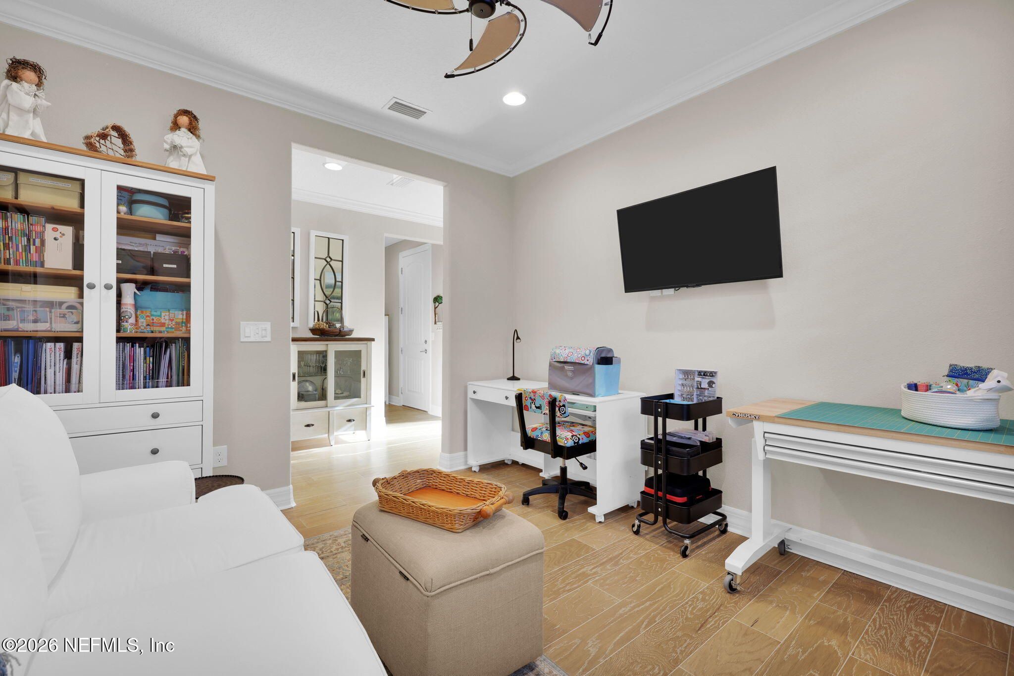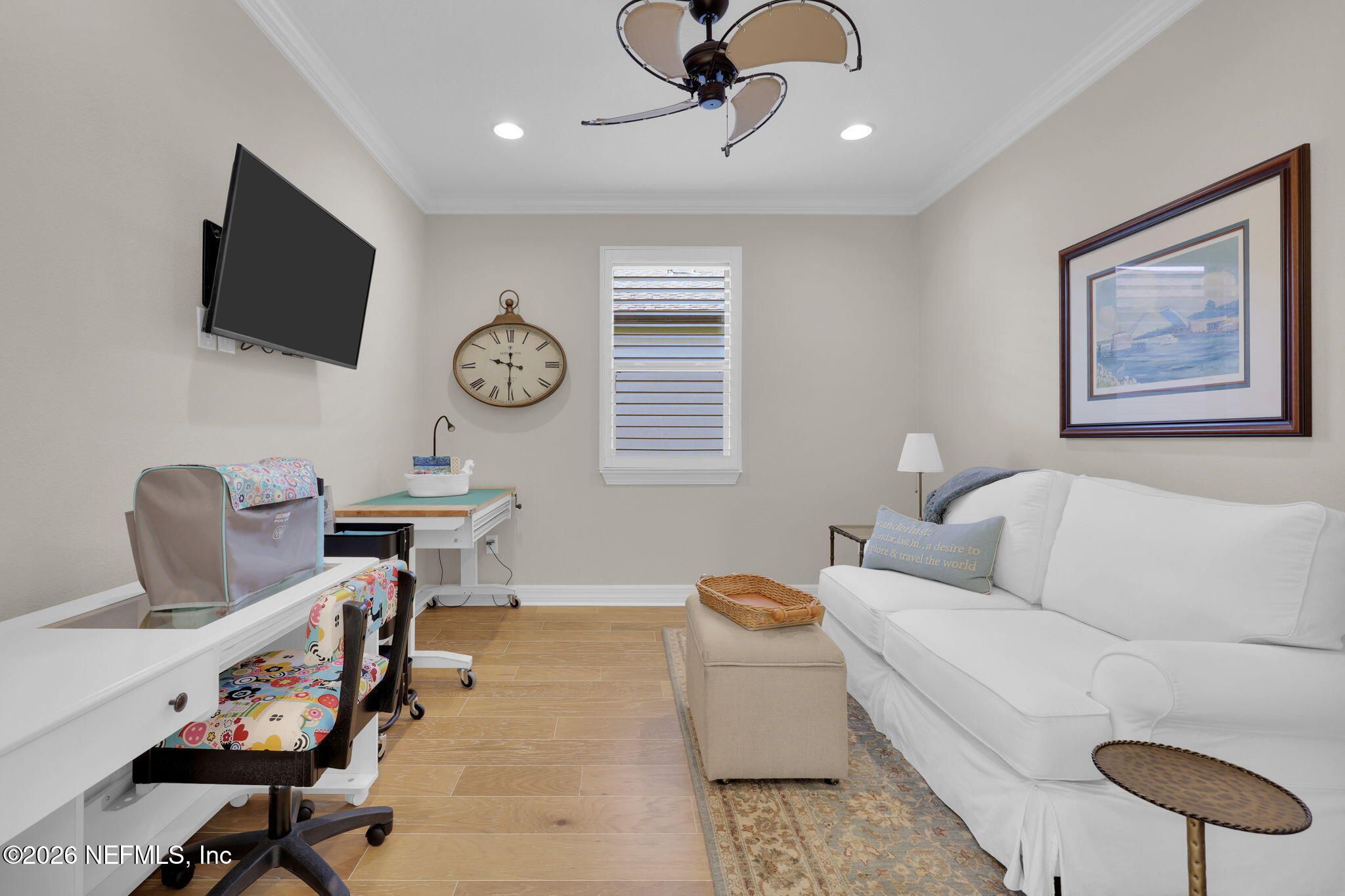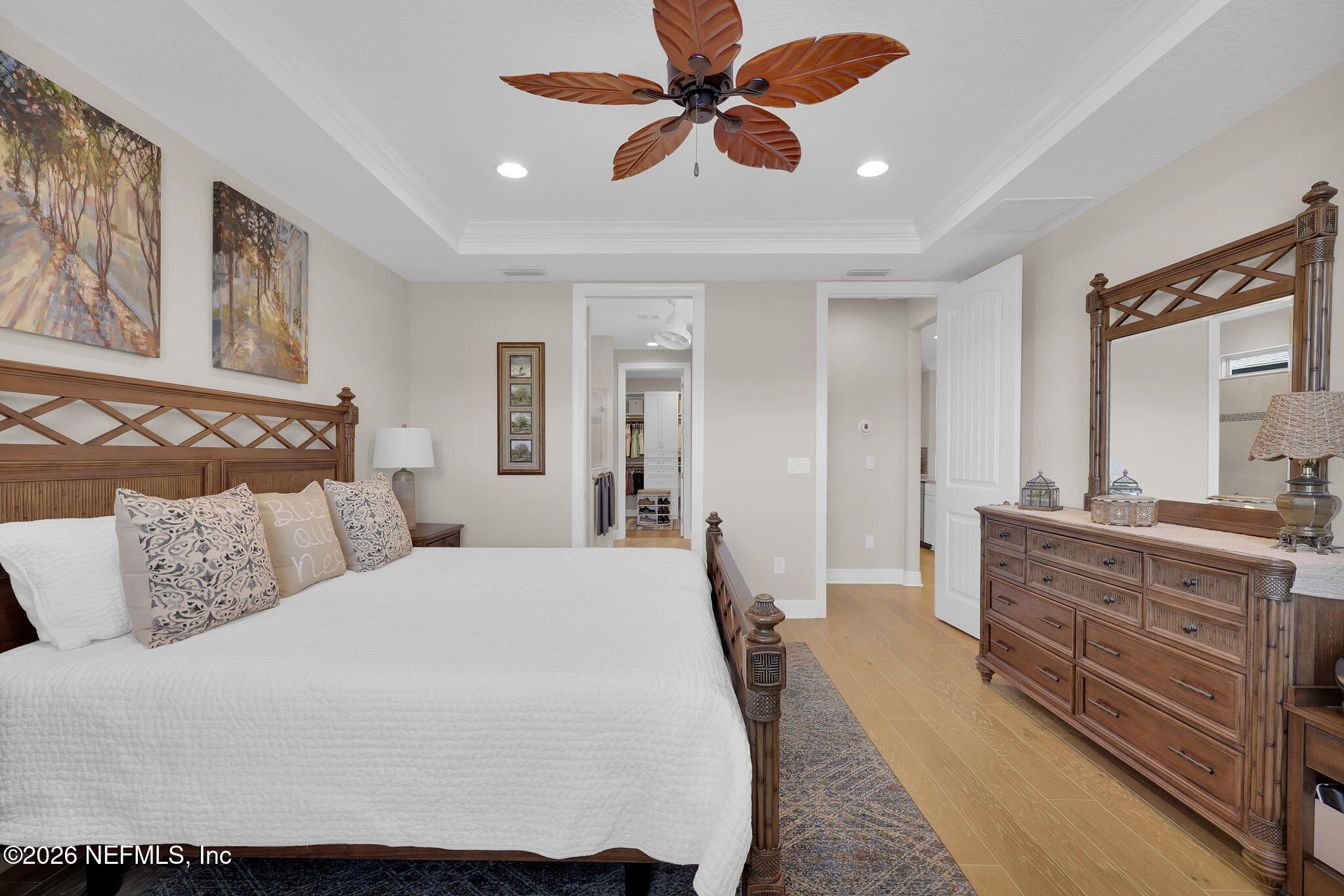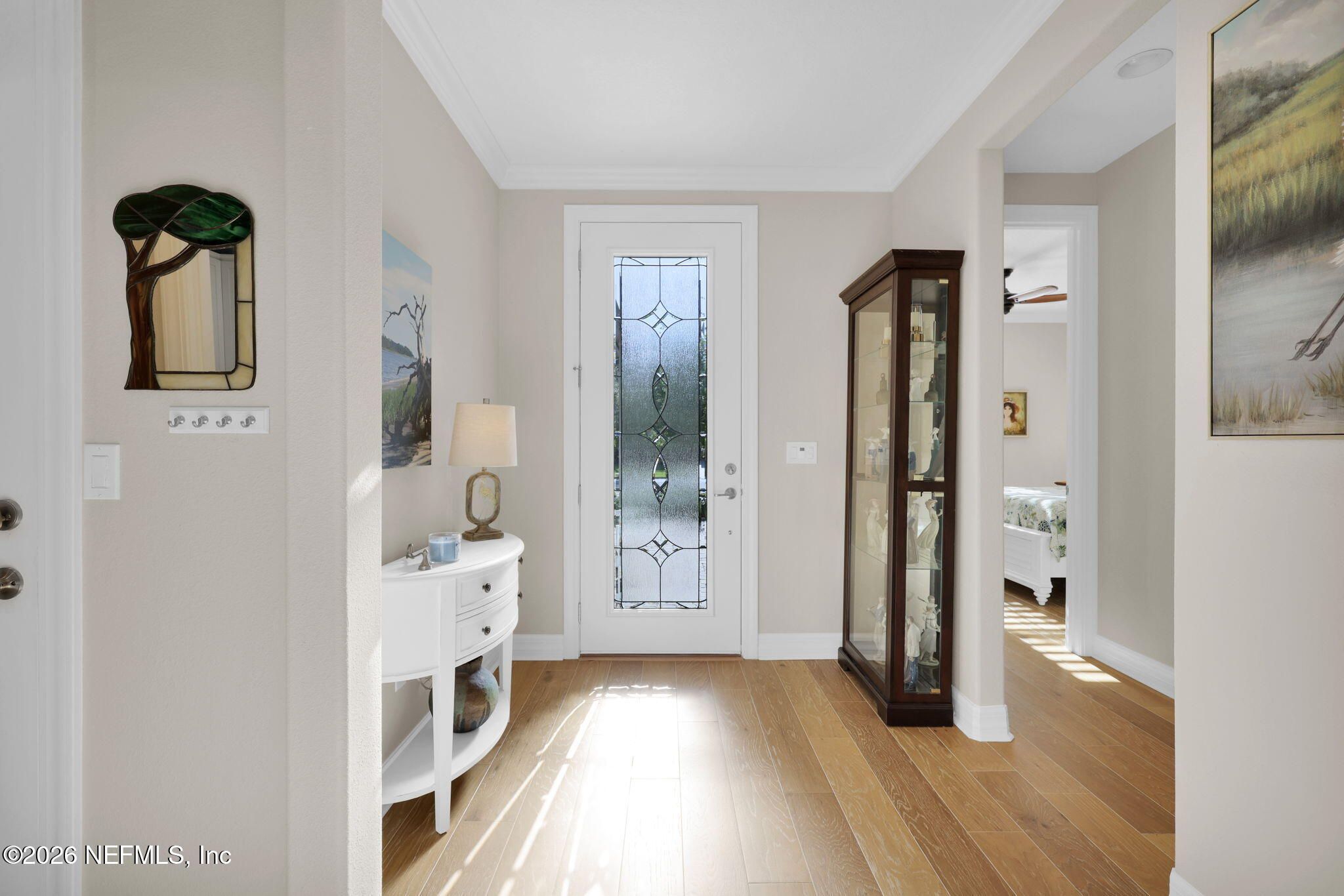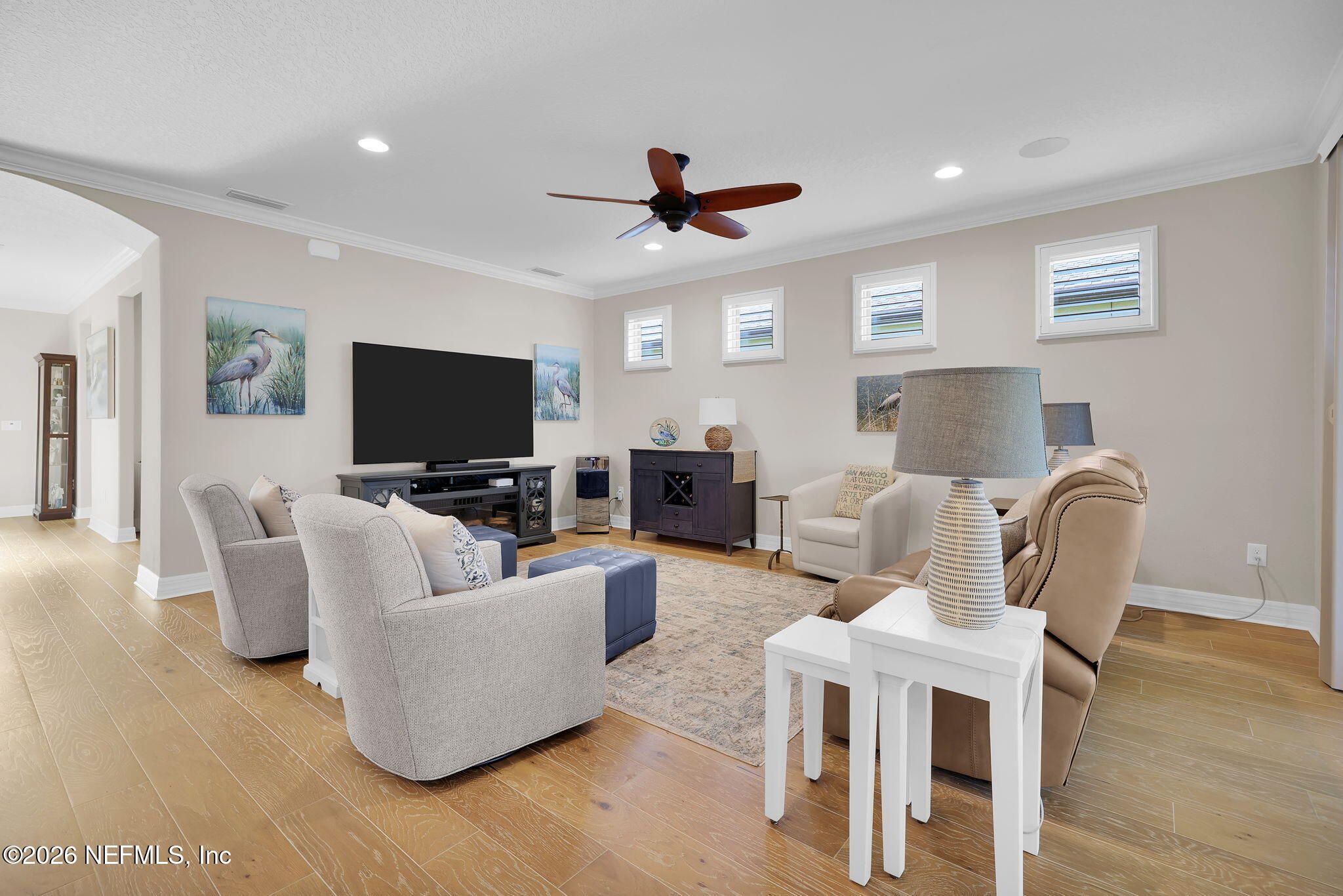 Step into refined coastal living in this impeccably maintained, move-in ready waterfront home located in the highly sought-after 55+ active adult community of Del Webb Ponte Vedra. Blending timeless elegance with modern functionality, this residence offers a rare opportunity to enjoy resort-style living in one of Northeast Florida's premier active adult neighborhoods. Perfectly positioned on a premium waterfront homesite, the popular Summerwood floor plan showcases thoughtful design and effortless flow, featuring 2 spacious bedrooms, 2 well-appointed bathrooms, and a versatile study/flex room--ideal for a home office, hobby space, or guest accommodations. Every square foot is intentionally designed to maximize comfort, efficiency, and everyday livability. A welcoming pavered front porch sets the tone for relaxed Florida living, while inside, the upgraded gourmet kitchen serves as the heart of the home. Highlights include crisp white cabinetry, quartz countertops, a large center island, updated major kitchen appliances, and a custom pantry, all complemented by a bright dining area perfect for both casual meals and entertaining guests. The open-concept layout is filled with natural light, enhanced by expansive windows and triple sliding glass doors that seamlessly connect indoor and outdoor living spaces. Step outside to your extended, screened paver lanai, where tranquil water views create the perfect backdrop for morning coffee or evening relaxation--bringing the best of Florida's indoor-outdoor lifestyle right to your doorstep. The luxurious primary suite offers a peaceful retreat, complete with a spa-inspired ensuite bath featuring a walk-in shower, elegant finishes, and a custom oversized walk-in closet designed for optimal organization. A standout feature of the home is the custom-designed laundry room, showcasing beautiful cabinetry, a utility sink, and stylish tile backsplash--combining convenience with elevated design. Additional Premium Features Include: ~ Surround sound speakers in the family room ~ Plantation shutters throughout ~ Custom closet systems for enhanced storage ~ Crown molding and 8-foot interior doors for a refined touch ~ Rich wood flooring throughout main living areas and in the bedrooms and flex space ~ Whole-house water softener system ~ Extended screened lanai with privacy shades ~ Fresh interior paint (2024) ~ Fresh exterior paint (2022) ~ New GE Refrigerator (12/22) ~ New water heater (10/23) ~ New GE Profile dishwasher (2/25) ~ GE Profile Smart Slide-In Range (2/25) ~ Extended 2.5-car garage with epoxy flooring and motorized overhead storage for ease of use. ~ Garage Cabinets and workbench & MUCH MORE! This exceptional home delivers the perfect blend of low-maintenance luxury, thoughtful upgrades, and serene waterfront living--ideal for buyers seeking an active, vibrant lifestyle without compromise. This home isn't just a place to live - it's a lifestyle. With easy access to the Anastasia Club's resort-style amenities, including pools, tennis courts, fitness facilities, and social events, you'll enjoy everything Del Webb Ponte Vedra has to offer. Don't miss your chance to live the Florida dream - schedule your showing today! Live the Vibrant 55+ Lifestyle at Riverwood by Del Webb a premier Active Adult Community nestled in the prestigious Ponte Vedra area between Jacksonville and St. Augustine, offering easy access to pristine beaches, fine dining, shopping, and medical facilities. Community Highlights: Natural Beauty: Surrounded by 2,400 acres of the serene Nocatee Preserve and located near the Atlantic Ocean. Resort-Style Amenities at the Anastasia Club: Grand ballroom Indoor & outdoor pools Sauna & spa State-of-the-art fitness center Tennis courts Pickleball & bocce ball Full-time Lifestyle & Fitness Director coordinating year-round events and social activities. Residents also enjoy access to the nearby Nocatee Splash Water Park featuring a lazy river, water slides, lagoon pool, and zip lines. The Nocatee Lifestyle Living in Nocatee enhances your lifestyle with: Splash Water Park & Rip Tide Slide Lazy Tides River & lagoon pool 330-foot zip line Swim Club Pool & Fitness Club with cardio equipment, free weights & group classes Scenic Greenway Trails winding through 2,400 acres along the Intracoastal Waterway Spray Park for additional recreation Florida Living at Its Finest.