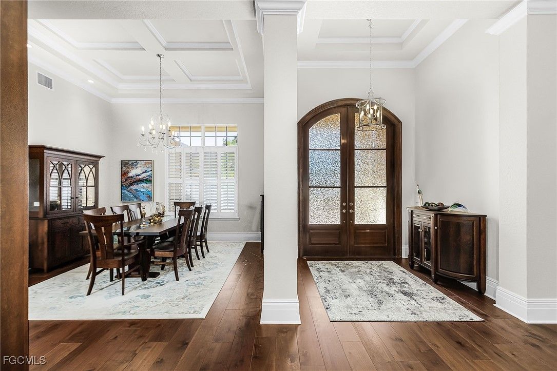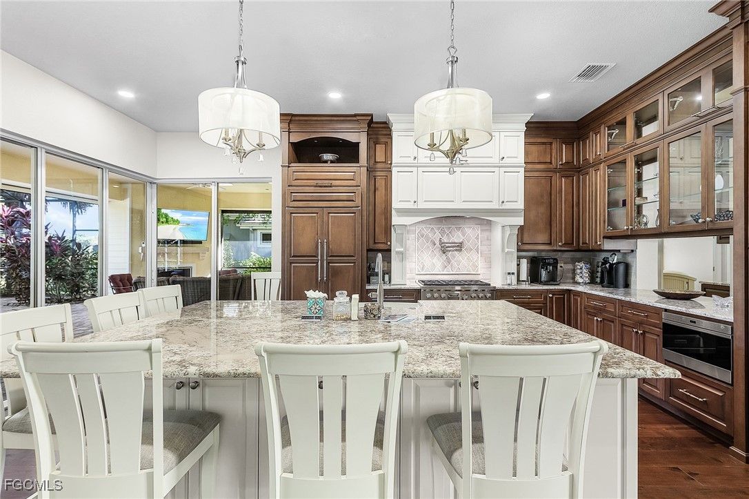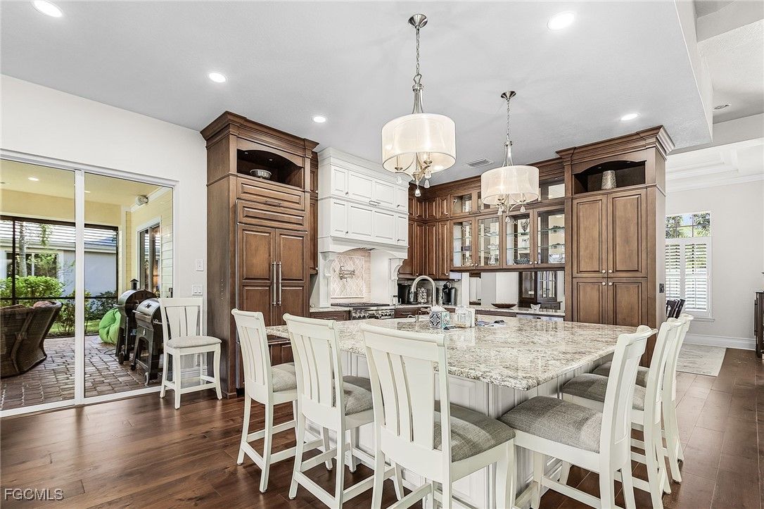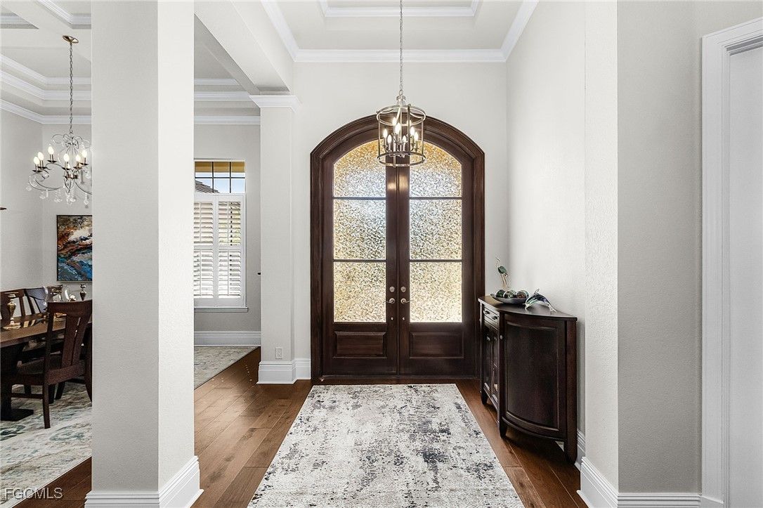 Discover refined country club living at 3220 Cypress Marsh Dr, a custom Wyman Stokes masterpiece nestled in the gated Verandah community. This inviting 3-bedroom + den home is being offered turn-key furnished with high-end furnishings, boasting 3 full baths with ensuite access for guests, an oversized side-load 2-car garage, and a chef's dream kitchen remodeled in 2019 featuring a massive island with seating for six, 6-burner gas range with pot filler, vented hood, wine cooler, and beverage fridge—all flowing seamlessly into the family room with its vaulted wood ceiling. Hardwood floors grace the living and dining areas, complemented by plantation shutters, crown molding, tray ceilings, and recent updates including a new roof (2023), fresh interior/exterior paint (2024), and new wood floors. Step outside to your private oasis: a heated saltwater pool and spa, expansive covered lanai with paver surfaces and hurricane screens, and one of Verandah's most breathtaking lake-and-preserve views offering unparalleled privacy and world-class birdwatching. Verandah's mandatory social membership unlocks a vibrant lifestyle with two 18-hole championship golf courses designed by Jack Nicklaus and Bob Cupp (full golf membership optional), five clay tennis courts, pickleball and bocce courts, a resort-style community pool with lap lanes, and a state-of-the-art fitness center offering yoga, spin, and water aerobics classes. Explore over nine miles of scenic trails and boardwalks, kayak on the adjacent Orange River, or enjoy the dog park and playground. Savor dining at the River House Bar & Grill or Blossoms on the Orange River, all within a secure, patrolled community with two gatehouses, conveniently located just 12 minutes from downtown Fort Myers, 10 minutes to Walmart/Target, 20 minutes to the airport, and 4 minutes to Boathouse 31 and the marina.