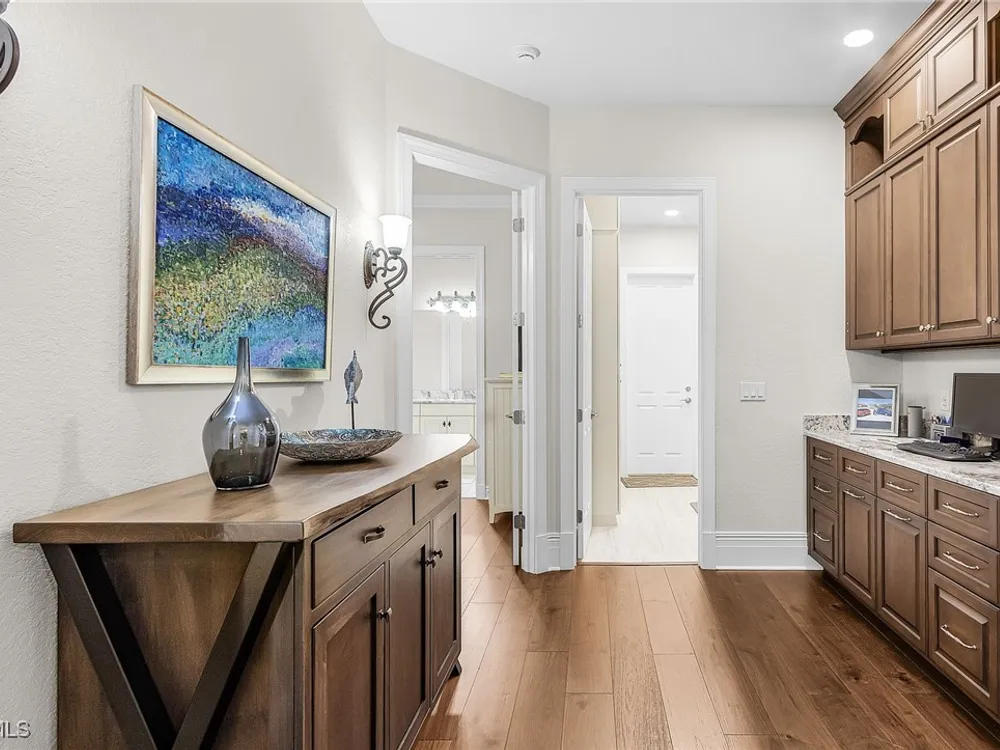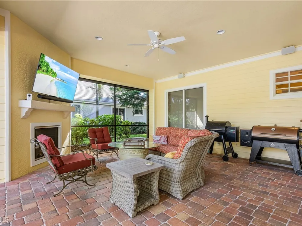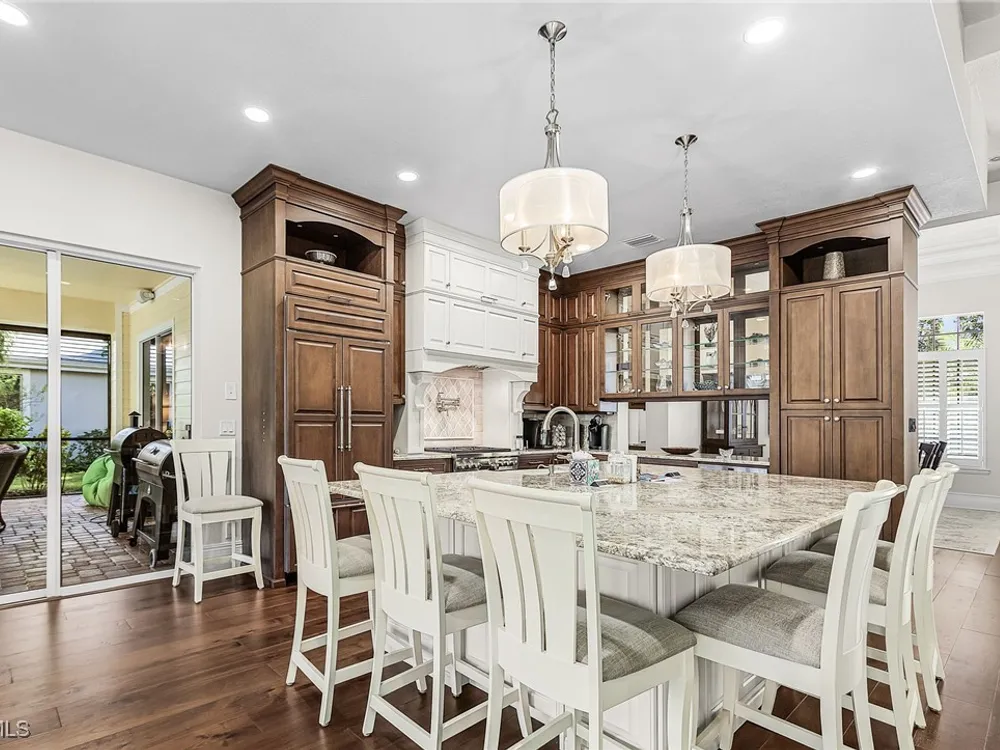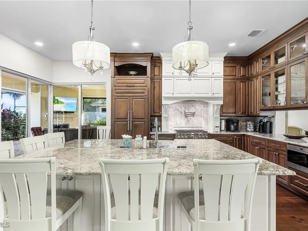 Discover refined country club living at 3220 Cypress Marsh Dr, a custom Arthur Rutenberg masterpiece nestled in the gated Verandah community. This inviting 3-bedroom + den home is being offered turn-key furnished with high-end furnishings, boasting 3 full baths with ensuite access for guests, an oversized side-load 2-car garage, and a chef's dream kitchen remodeled in 2019 featuring a massive island with seating for six, 6-burner gas range with pot filler, vented hood, wine cooler, and beverage fridge—all flowing seamlessly into the family room with its vaulted wood ceiling. Hardwood floors grace the living and dining areas, complemented by plantation shutters, crown molding, tray ceilings, and recent updates including a new roof (2023), fresh interior/exterior paint (2024), and new wood floors. Step outside to your private oasis: a heated saltwater pool and spa, expansive covered lanai with paver surfaces and hurricane screens, and one of Verandah's most breathtaking lake-and-preserve views offering unparalleled privacy and world-class birdwatching. Verandah's mandatory social membership unlocks a vibrant lifestyle with two 18-hole championship golf courses designed by Jack Nicklaus and Bob Cupp (full golf membership optional), five clay tennis courts, pickleball and bocce courts, a resort-style community pool with lap lanes, and a state-of-the-art fitness center offering yoga, spin, and water aerobics classes. Explore over nine miles of scenic trails and boardwalks, kayak on the adjacent Orange River, or enjoy the dog park and playground. Savor dining at the River House Bar & Grill or Blossoms on the Orange River, all within a secure, patrolled community with two gatehouses, conveniently located just 12 minutes from downtown Fort Myers, 10 minutes to Walmart/Target, 20 minutes to the airport, and 4 minutes to Boathouse 31 and the marina.
