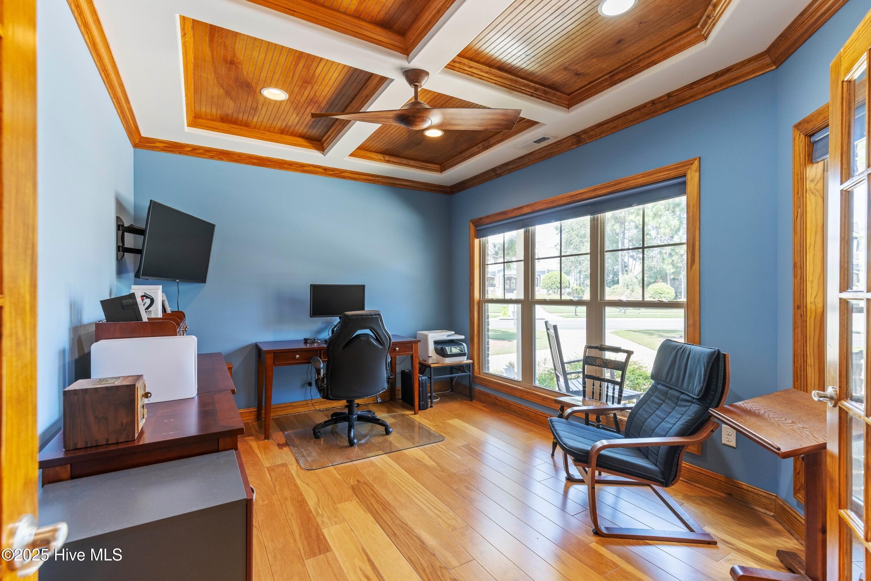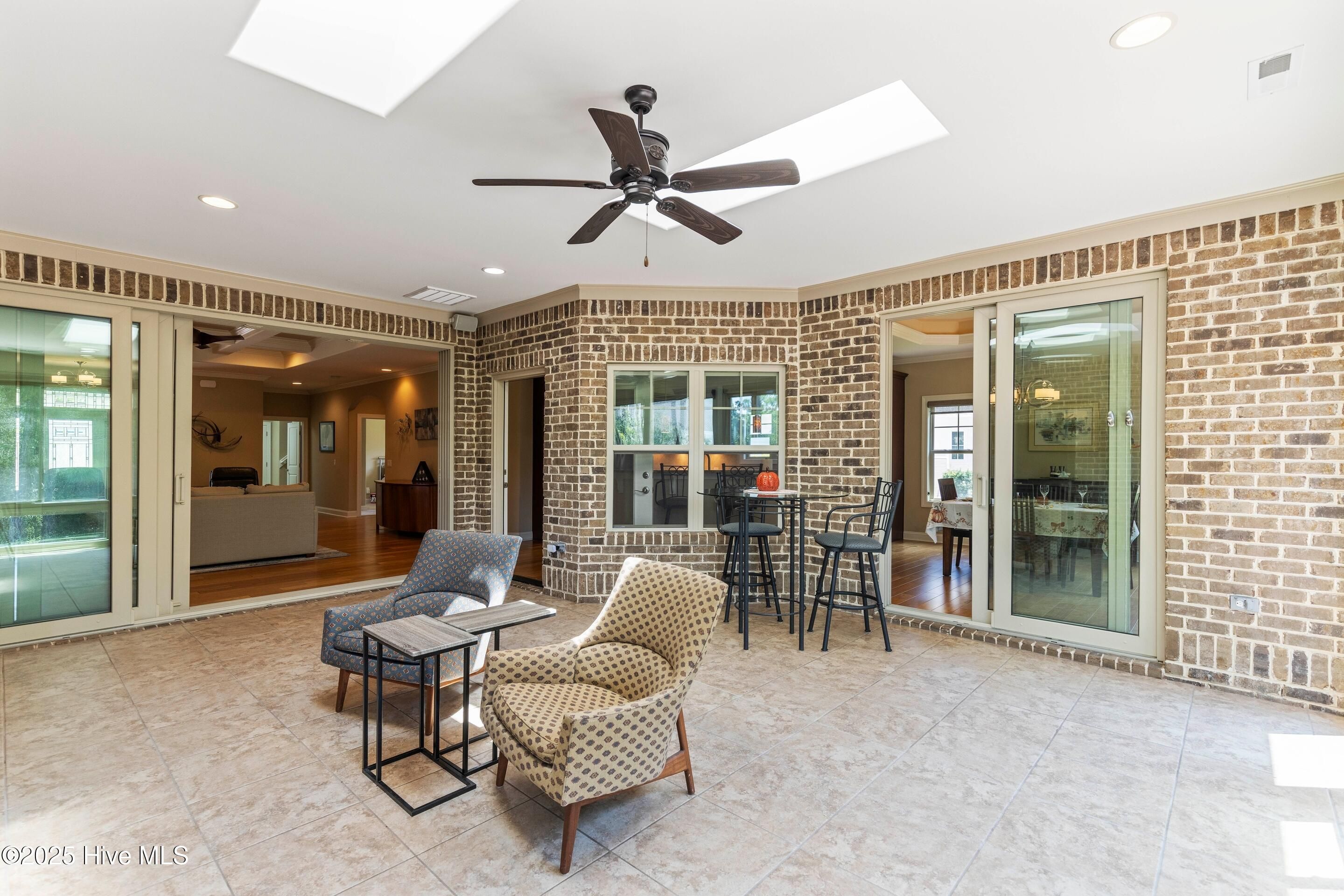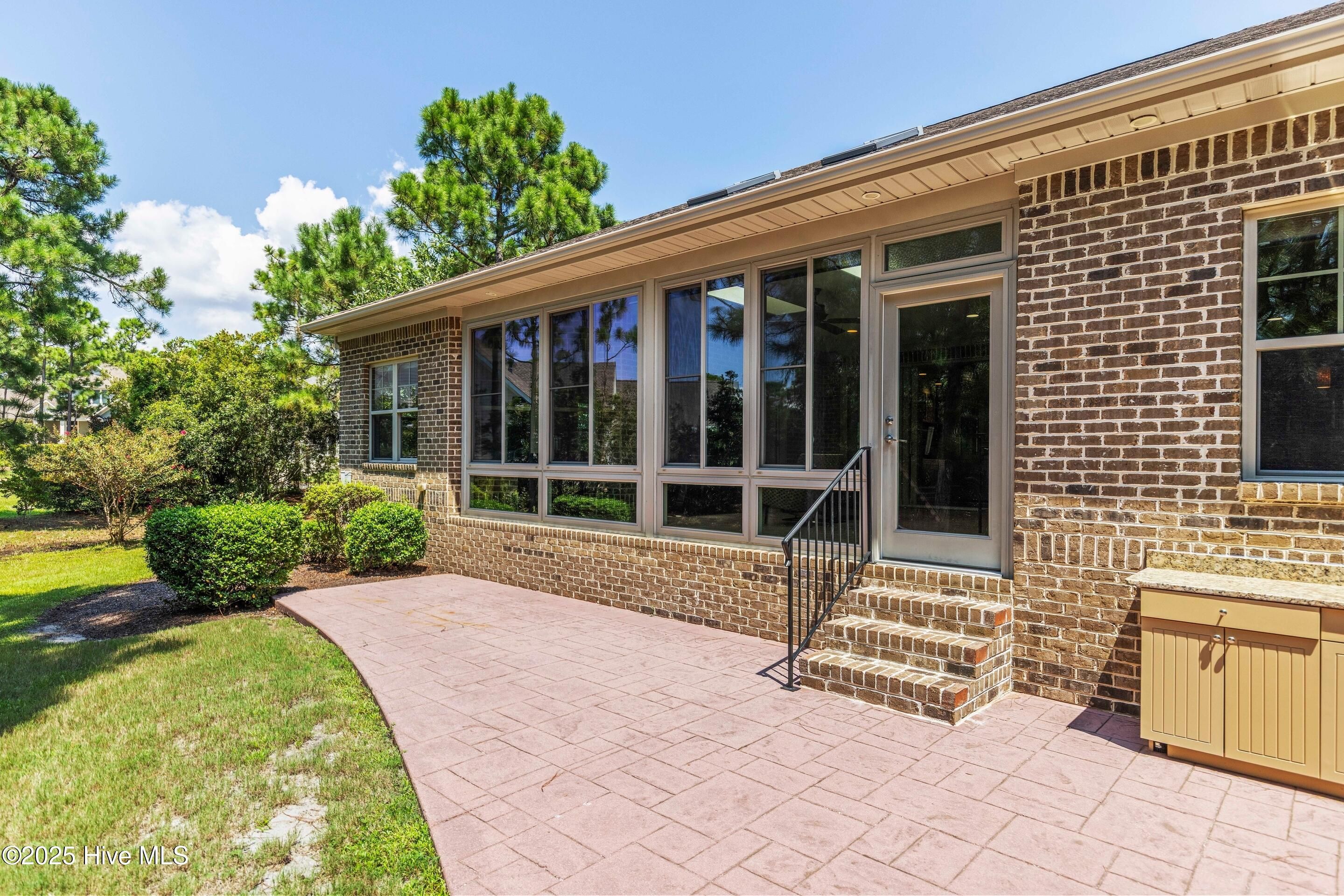 Timeless Elegance Meets Championship Living - Impeccably Refreshed Trusst Builders Masterpiece. Discover the pinnacle of coastal Carolina living at 3220 Moss Hammock Wynd which is ready to welcome you to move-in perfection within the coveted Reserve of St. James Plantation. This meticulously maintained Trusst Builders modified Grace II model showcases the finest in custom craftsmanship, elevated amenities, and access to an exceptional lifestyle. From your arrival, the all-brick facade, dramatic rooflines, and columned front porch telegraph enduring quality and refined taste. Step inside to discover soaring coffered and tray ceilings that draw the eye upward, while custom millwork and sun-drenched windows flood every room with warmth and sophistication. The heart of the home features an expansive open-concept living area centered around a gas fireplace with near-by built-in cabinetry, creating the perfect balance of grandeur and approachability. The chef's kitchen stands ready for everything from morning coffee to gourmet celebrations, with premium granite countertops spanning generous workspace, complemented by abundant soft-close cabinetry and a professional gas cooktop with integrated downdraft exhaust that eliminates overhead venting for clean sightlines. The oversized island anchors the space as a natural gathering spot, while the adjacent dining area flows effortlessly into the four-seasons room where natural light pours through walls of windows. Whether hosting intimate dinners or holiday gatherings, guests will marvel at the seamless indoor-outdoor connection and flexible entertaining zones. Retreat to your main-floor primary suite, a thoughtfully positioned haven offering privacy and luxury in equal measure with dual walk-in closets providing remarkable storage, while the spa-inspired ensuite bath elevates daily routines with an oversized soaking tub, expansive tiled shower, and dual vanities with elegant fixtures where every detail whispers indulgence. Secondary bedrooms on the main level offer wonderful flexibility, including one currently outfitted with a Murphy bed system perfect for accommodating guests while maintaining office or hobby space when needed. Upstairs, a generous bonus suite with full bath and walk-in closet creates a private retreat ideal for extended visitor stays, a dedicated media room, or creative studio where possibilities are limitless. Step through French doors to your private outdoor sanctuary where thoughtful design transforms ordinary into extraordinary. A therapeutic spa hot tub beckons after golf rounds or beach days, while your custom outdoor kitchen rivals indoor culinary spaces with built-in gas grill, marine-grade cabinetry engineered to withstand coastal conditions, and gleaming granite counters. The oversized patio, embraced by mature wooded privacy, becomes your favorite room during golden-hour cocktails, weekend brunches, or starlit evenings. Peace of mind comes standard with infrastructure designed for effortless living including a climate-controlled storage room that protects valuables year-round, while a comprehensive irrigation system maintains lush landscaping without effort. The buried propane tank ensures clean sightlines and ample fuel capacity while dual HVAC systems guarantee perfect comfort in every zone, complemented by a whole-house dehumidifier that conquers coastal humidity, protecting your investment and ensuring healthy air quality in every season. Your home purchase unlocks access to one of coastal North Carolina's most prestigious private communities where three championship golf courses designed by legends of the game await, whether you're a seasoned player or just learning. Launch from the private marina for fishing expeditions or sunset cruises, perfect your serve on tennis courts, dive into resort-style pools or discover new strength at comprehensive fitness centers. Miles of walking and biking trails wind through pristine natural landscapes, connecting neighborhoods while preserving the community's park-like setting. As a Reserve resident, you're steps from the Reserve Club's refined gathering spaces and mere moments from the spectacular SeaSide Pool & Wellness Center where coastal breezes, poolside cabanas, and state-of-the-art fitness facilities create your personal country club experience. These aren't just amenities but invitations to connection, wellness, and the elevated lifestyle you've envisioned. St. James Plantation's strategic location delivers the best of both worlds with serene privacy of a gated community wrapped in natural beauty, yet convenient access to historic Wilmington's dining and culture, pristine beaches perfect for morning walks, and all essential services. You're never far from what you need.This home's recent refresh featuring professional interior painting throughout and rejuvenated carpeting means you can unpack and immediately begin enjoying your new lifestyle with no projects, no delays, no compromisessimply bring your vision for furniture placement and start creating memories from day one. At 3220 Moss Hammock Wynd, every detail reflects intention from the quality of construction to the thoughtfulness of layout, from the outdoor living spaces to the infrastructure supporting it all. This isn't simply real estate but an invitation to embrace coastal championship living where every sunrise promises possibility and every evening delivers satisfaction. Properties of this caliber, in this location, with this level of finish and access to such remarkable amenities, represent rare opportunities. When quality construction meets premier location and lifestyle privileges, discerning buyers recognize exceptional value. Welcome home to where elegance, amenity, and coastal living converge.