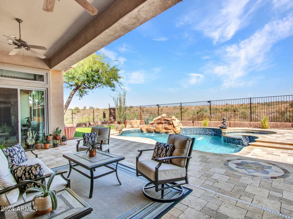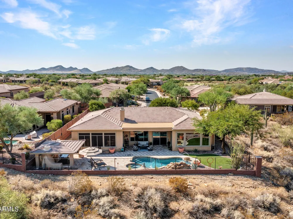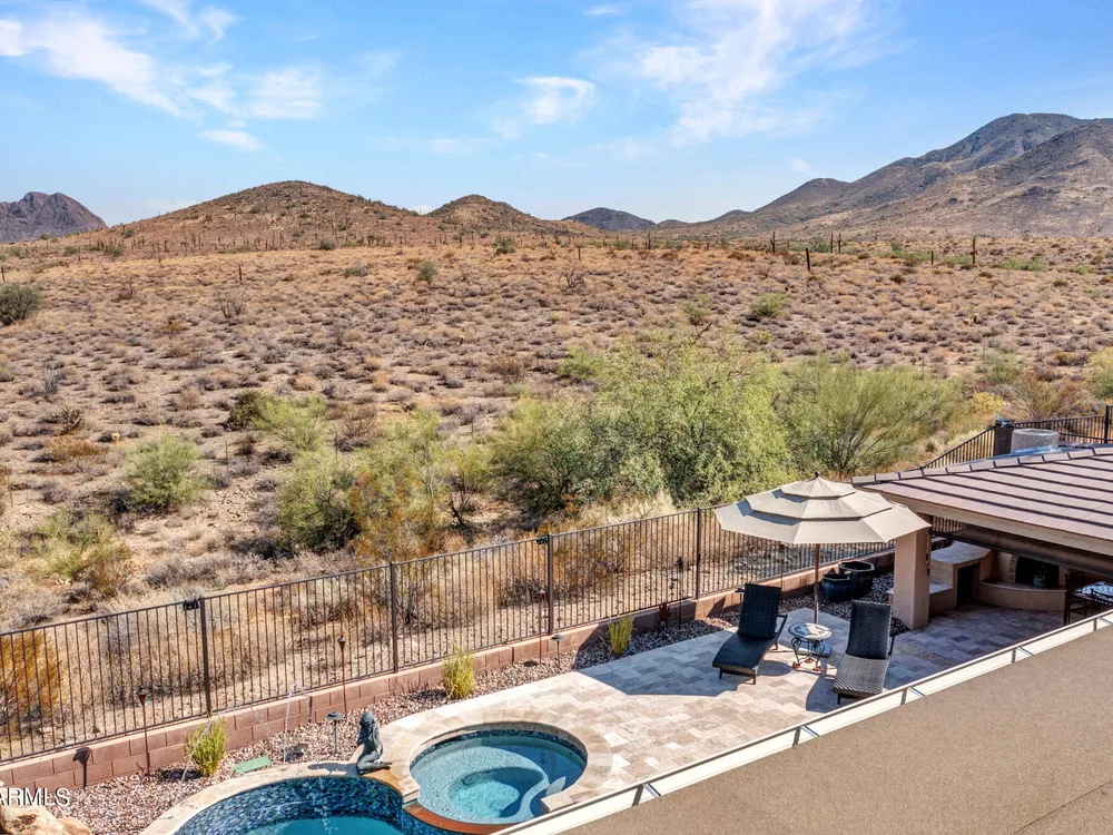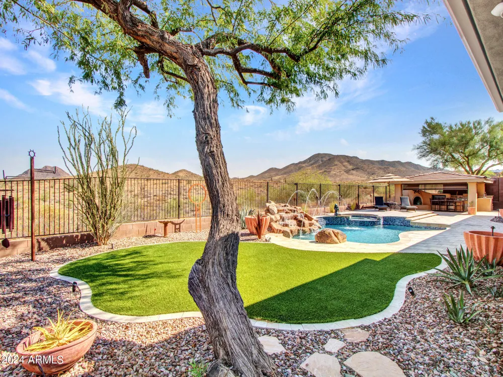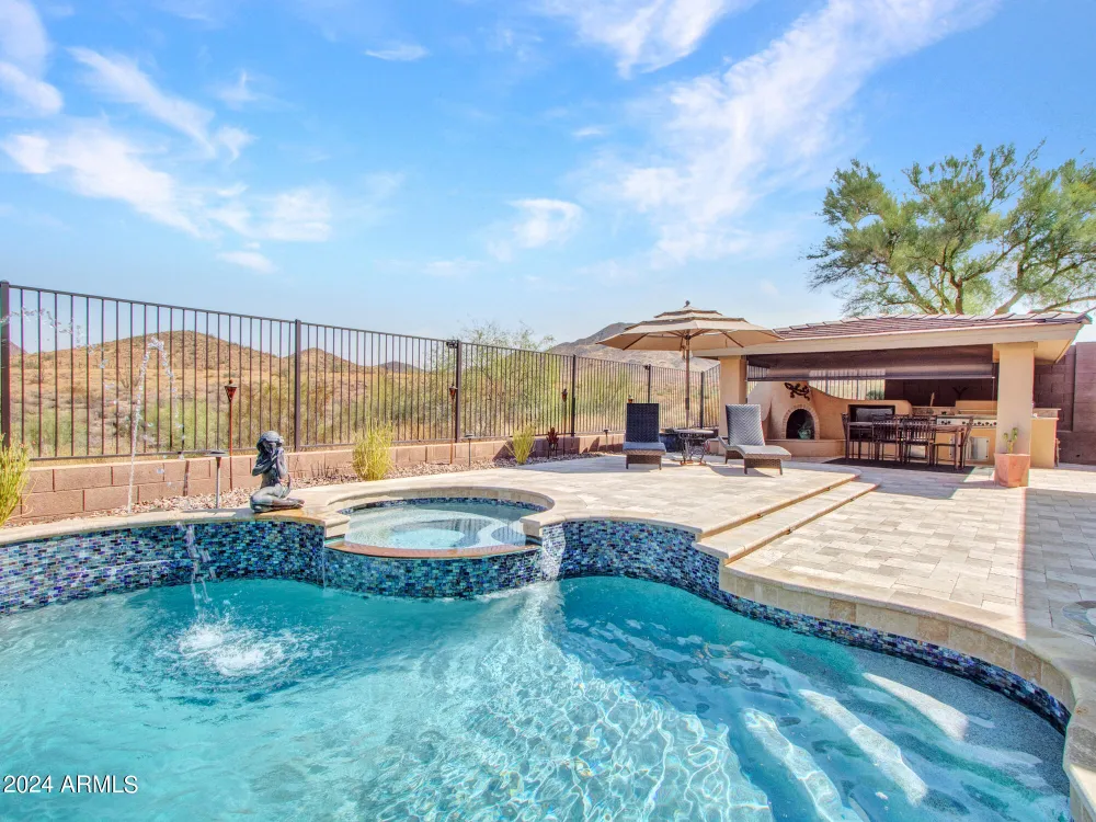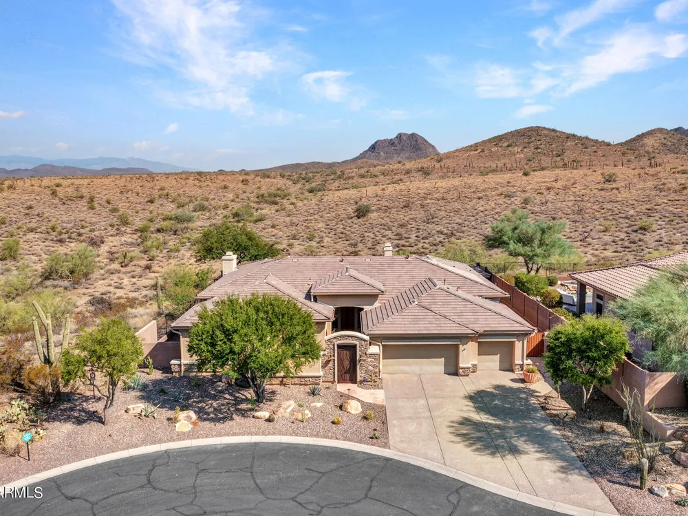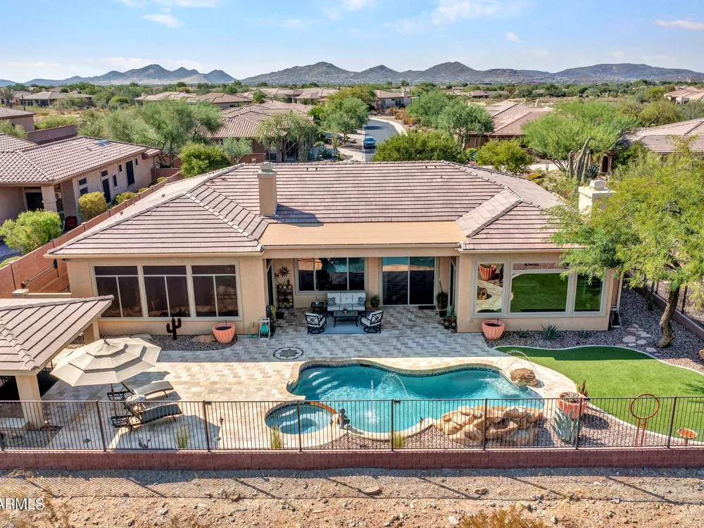 Experience the epitome of luxury living in this beautifully updated Anthem Country Club home, boasting a perfect blend of modern convenience and elegant design. Nestled on a prime lot with unobstructed views of both Daisy Mountain and Gavilan Peak, this property offers a serene backdrop that is simply breathtaking. Key Upgrades: • Brand new air conditioning system installed in September 2024 • New roof added in 2020 • Freshly painted interiors highlighting the home's sophisticated design This residence is a haven of high-end features, including upscale kitchen appliances like Sub-Zero, and a Scotsman. Every detail exudes luxury, from the soaring 12' ceilings and stone accent walls to the stunning alabaster chandeliers and intricate marble medallion. Additional luxury touches include: " Granite counters and stone flooring " Plantation shutters and custom draperies " Custom-built bookcases " Central vacuum system Step outside to your resort-style backyard, a private retreat perfect for entertaining or unwinding. Swim year-round in the heated pool and spa, complete with a rock waterfall. An outdoor kitchen awaits under a ramada, featuring a 48'' DCS gas grill, sink, refrigerator, and a cozy fireplaceideal for enjoying Arizona evenings. Whether you're relaxing poolside or hosting a barbecue, the spectacular mountain views will make every moment unforgettable. This home truly offers the best of Anthem Country Club living.