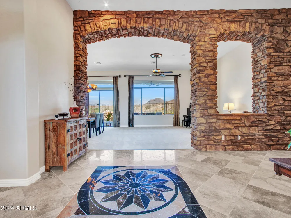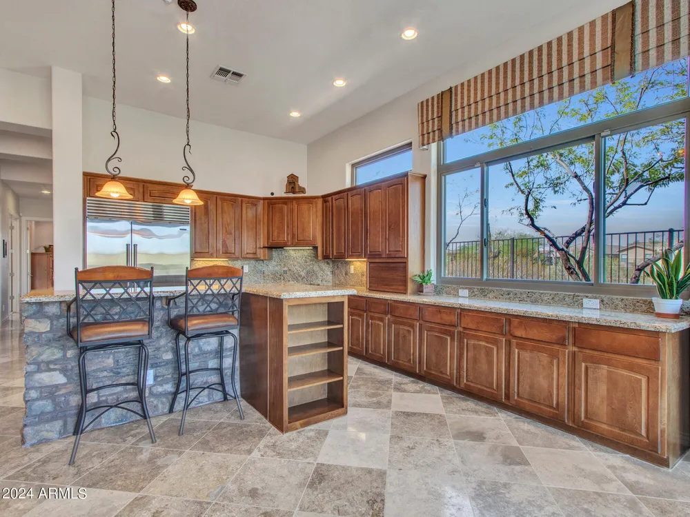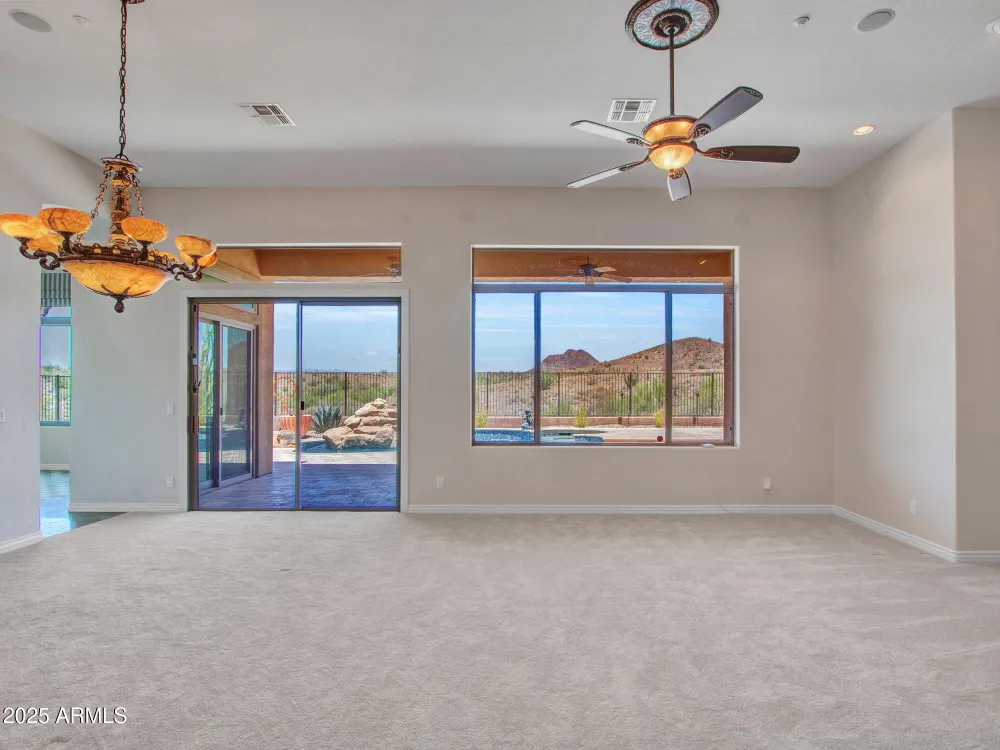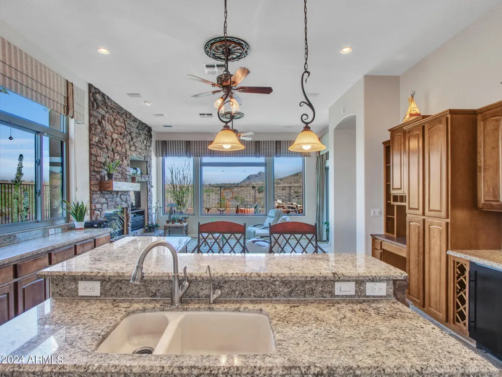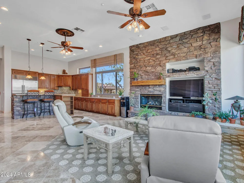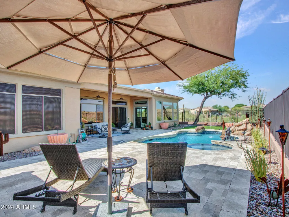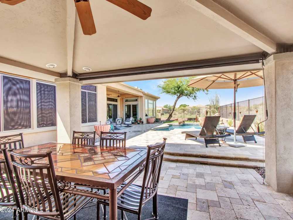 Experience the epitome of luxury living in this beautifully updated Anthem Country Club home, boasting a perfect blend of modern convenience and elegant design. Nestled on a prime lot with unobstructed views of both Daisy Mountain and Gavilan Peak, this property offers a serene backdrop that is simply breathtaking. Key Upgrades: • Brand new air conditioning system installed in September 2024 • New roof added in 2020 • Freshly painted interiors highlighting the home's sophisticated design This residence is a haven of high-end features, including upscale kitchen appliances like Sub-Zero, and a Scotsman. Every detail exudes luxury, from the soaring 12' ceilings and stone accent walls to the stunning alabaster chandeliers and intricate marble medallion. Additional luxury touches include: " Granite counters and stone flooring " Plantation shutters and custom draperies " Custom-built bookcases " Central vacuum system Step outside to your resort-style backyard, a private retreat perfect for entertaining or unwinding. Swim year-round in the heated pool and spa, complete with a rock waterfall. An outdoor kitchen awaits under a ramada, featuring a 48'' DCS gas grill, sink, refrigerator, and a cozy fireplaceideal for enjoying Arizona evenings. Whether you're relaxing poolside or hosting a barbecue, the spectacular mountain views will make every moment unforgettable. This home truly offers the best of Anthem Country Club living.