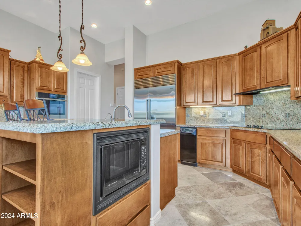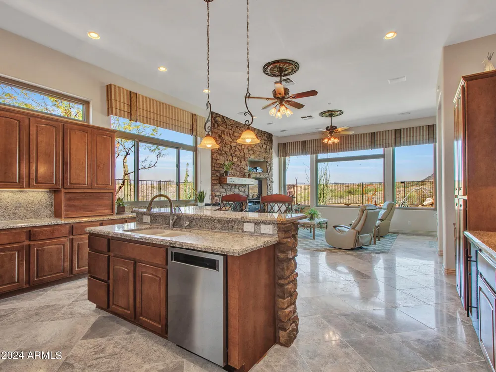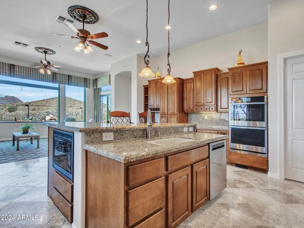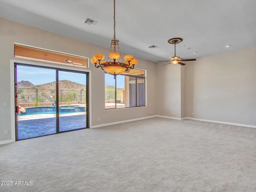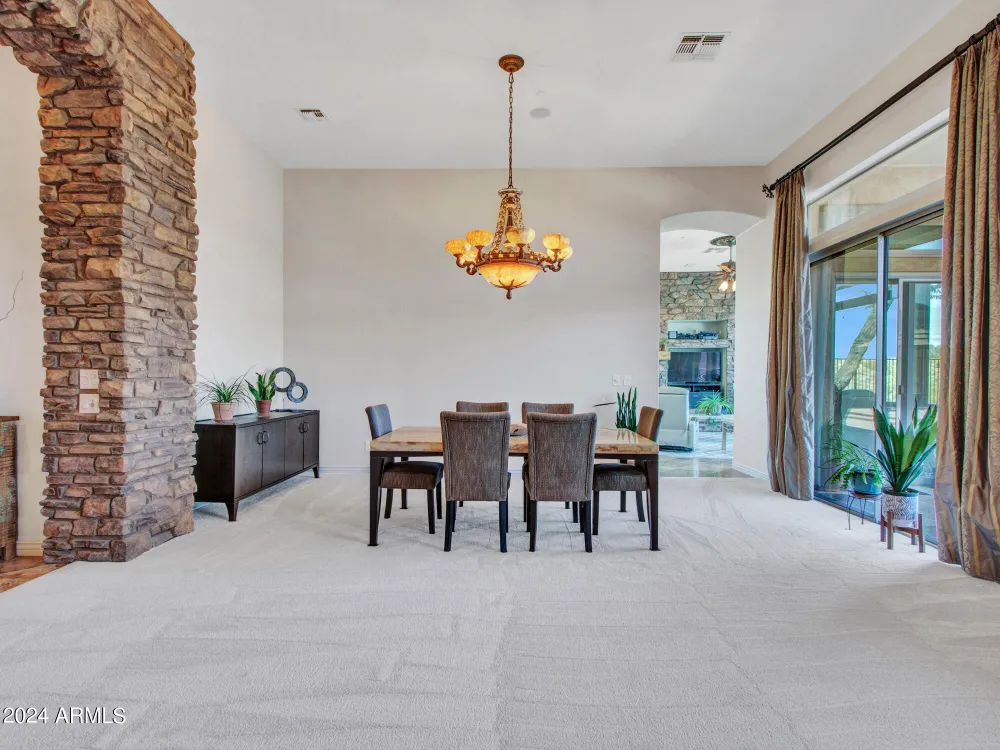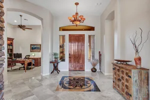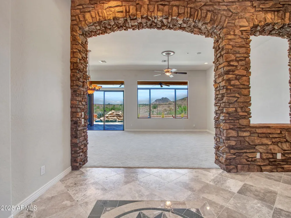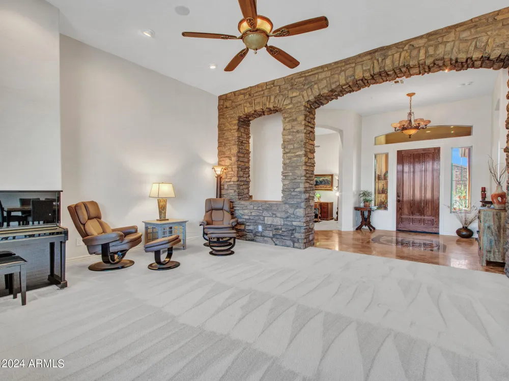 Experience the epitome of luxury living in this beautifully updated Anthem Country Club home, boasting a perfect blend of modern convenience and elegant design. Nestled on a prime lot with unobstructed views of both Daisy Mountain and Gavilan Peak, this property offers a serene backdrop that is simply breathtaking. Key Upgrades: • Brand new air conditioning system installed in September 2024 • New roof added in 2020 • Freshly painted interiors highlighting the home's sophisticated design This residence is a haven of high-end features, including upscale kitchen appliances like Sub-Zero, and a Scotsman. Every detail exudes luxury, from the soaring 12' ceilings and stone accent walls to the stunning alabaster chandeliers and intricate marble medallion. Additional luxury touches include: " Granite counters and stone flooring " Plantation shutters and custom draperies " Custom-built bookcases " Central vacuum system Step outside to your resort-style backyard, a private retreat perfect for entertaining or unwinding. Swim year-round in the heated pool and spa, complete with a rock waterfall. An outdoor kitchen awaits under a ramada, featuring a 48'' DCS gas grill, sink, refrigerator, and a cozy fireplaceideal for enjoying Arizona evenings. Whether you're relaxing poolside or hosting a barbecue, the spectacular mountain views will make every moment unforgettable. This home truly offers the best of Anthem Country Club living.