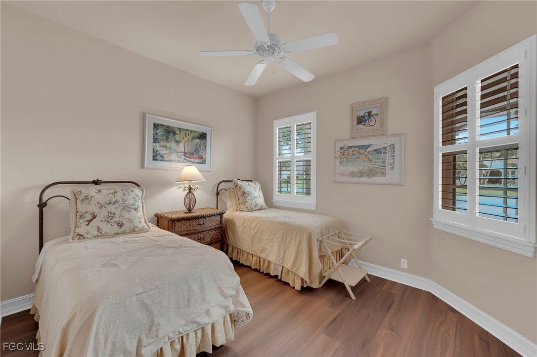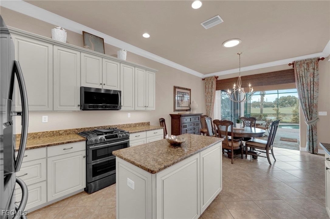 Welcome to 3221 Orangetree Bend, a beautifully maintained single-family home located in the gated community of Verandah in Fort Myers. Offering breathtaking golf course, lake, and landscaped views, this 2-bedroom and a den, 2-bath residence with over 1,835 square feet of living space seamlessly blends comfort, elegance, and Florida lifestyle living. Step inside to discover an inviting open-concept floor plan highlighted by vaulted and tray ceilings, rich tile and wood flooring, and an abundance of natural light streaming through. The chef’s kitchen features a spacious double island, walk-in pantry, and modern stainless steel appliances- perfect for entertaining or everyday living. The primary suite is a peaceful retreat complete with dual sinks, a walk-in closet, and a beautifully tiled shower, while the split-bedroom layout ensures privacy for guests. Step outside to your private hurricane screened lanai and pool, overlooking the shimmering lake and golf course, a serene backdrop for morning coffee or sunset gatherings. This home includes a two-car attached garage, paver driveway, and lush tropical landscaping. Located in the sought-after Verandah community, residents enjoy access to an optional golf membership which offers 36 holes, scenic walking and biking trails, and resort-style amenities that celebrate the best of Southwest Florida living.