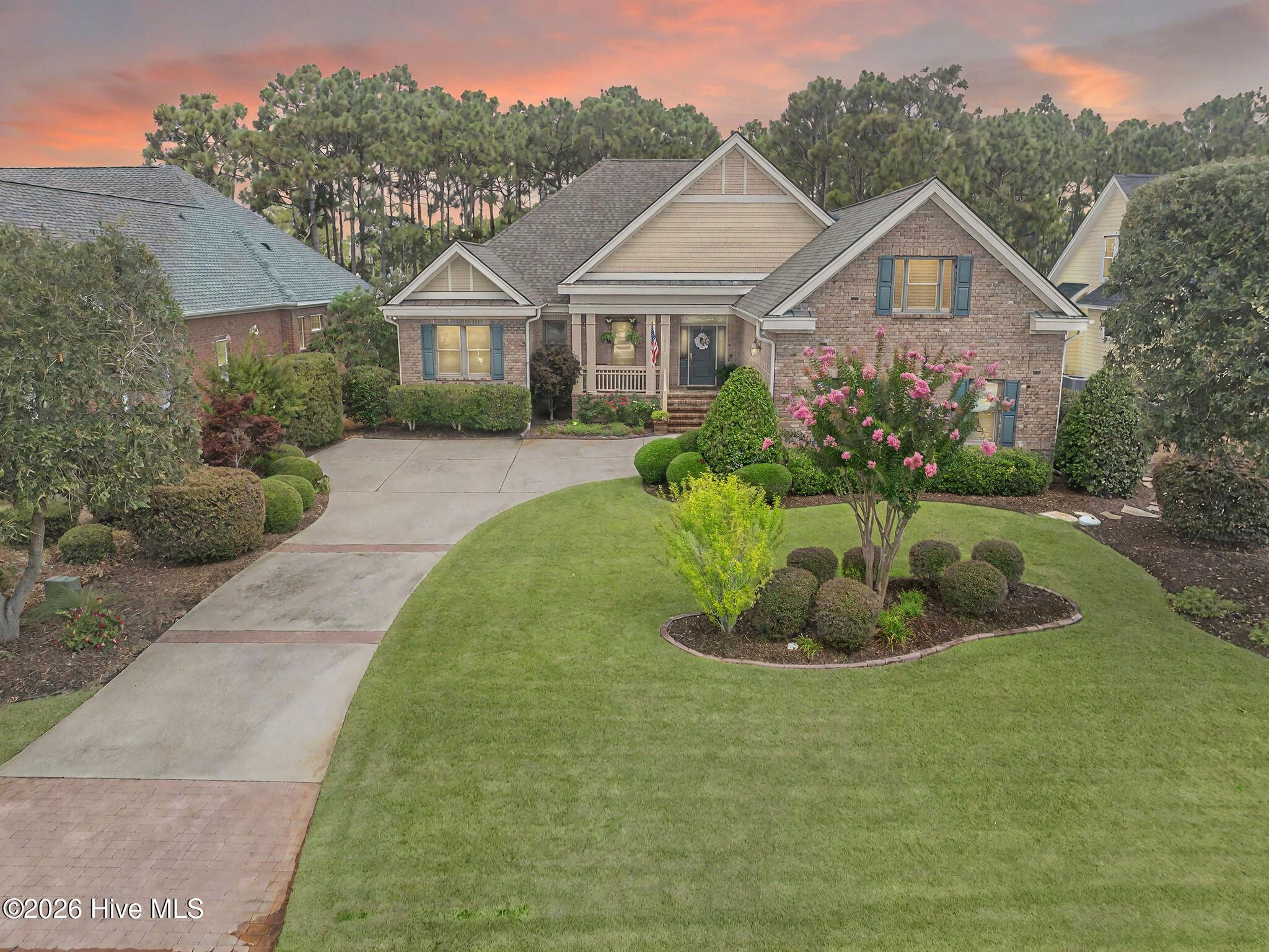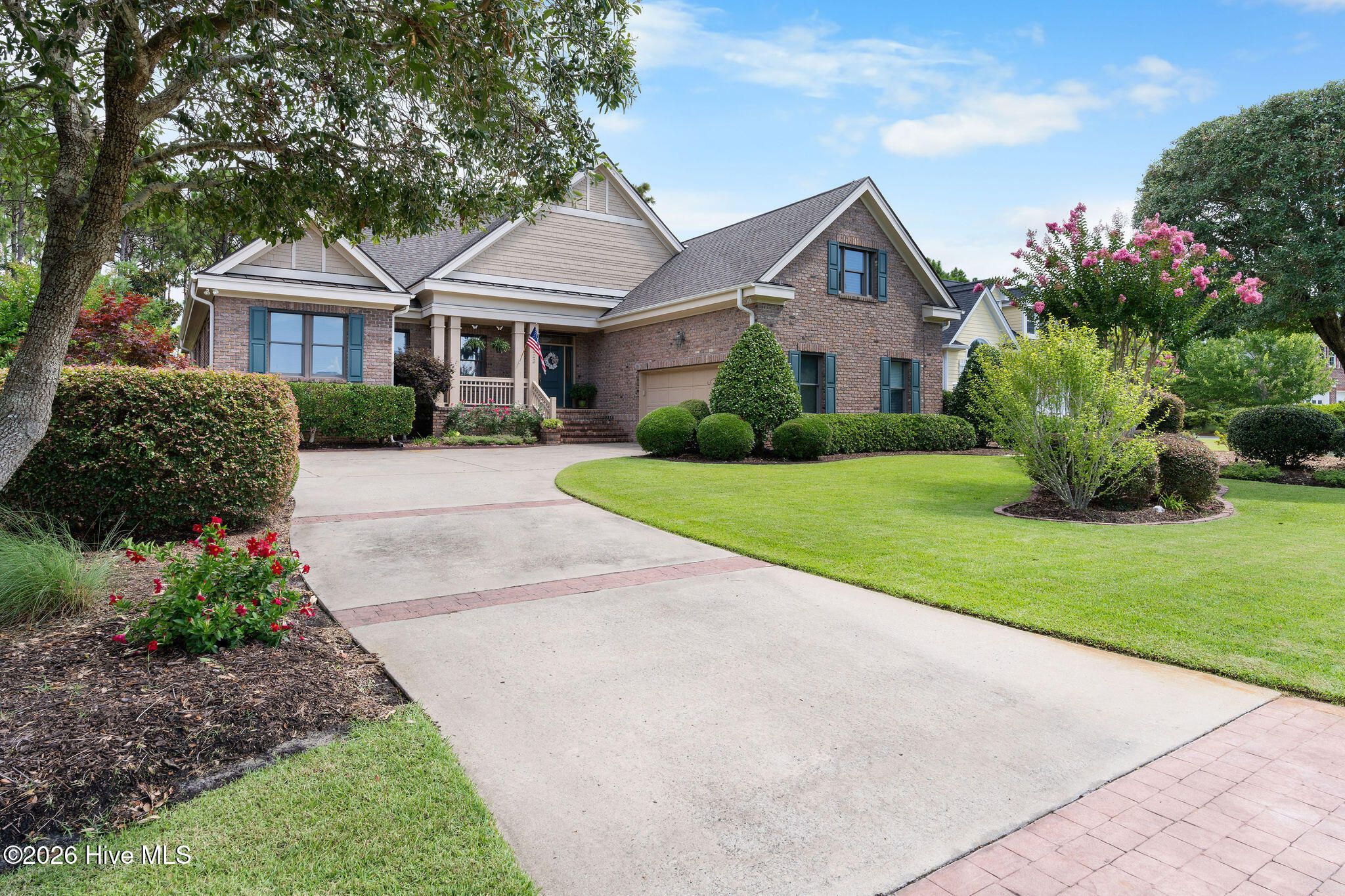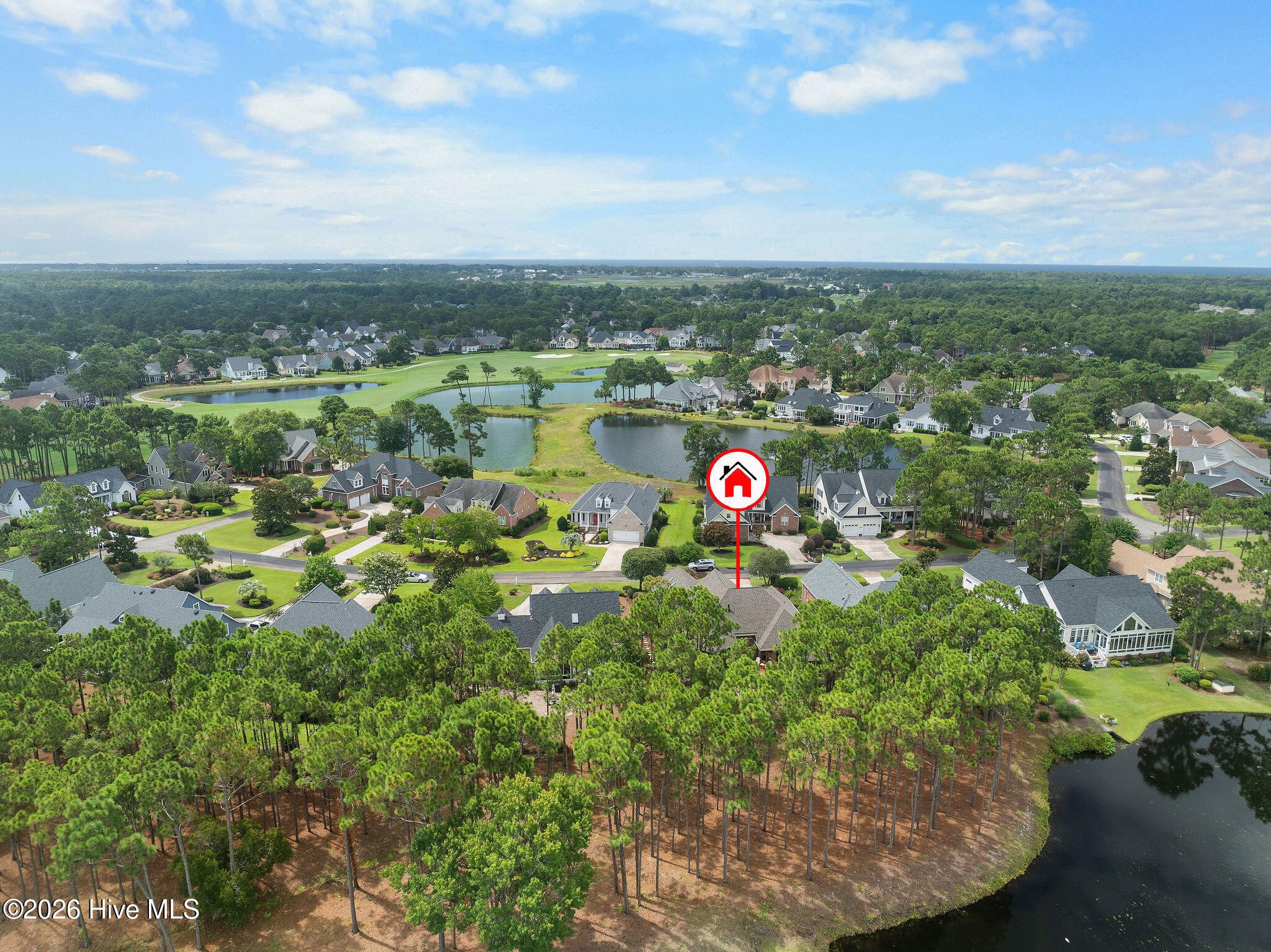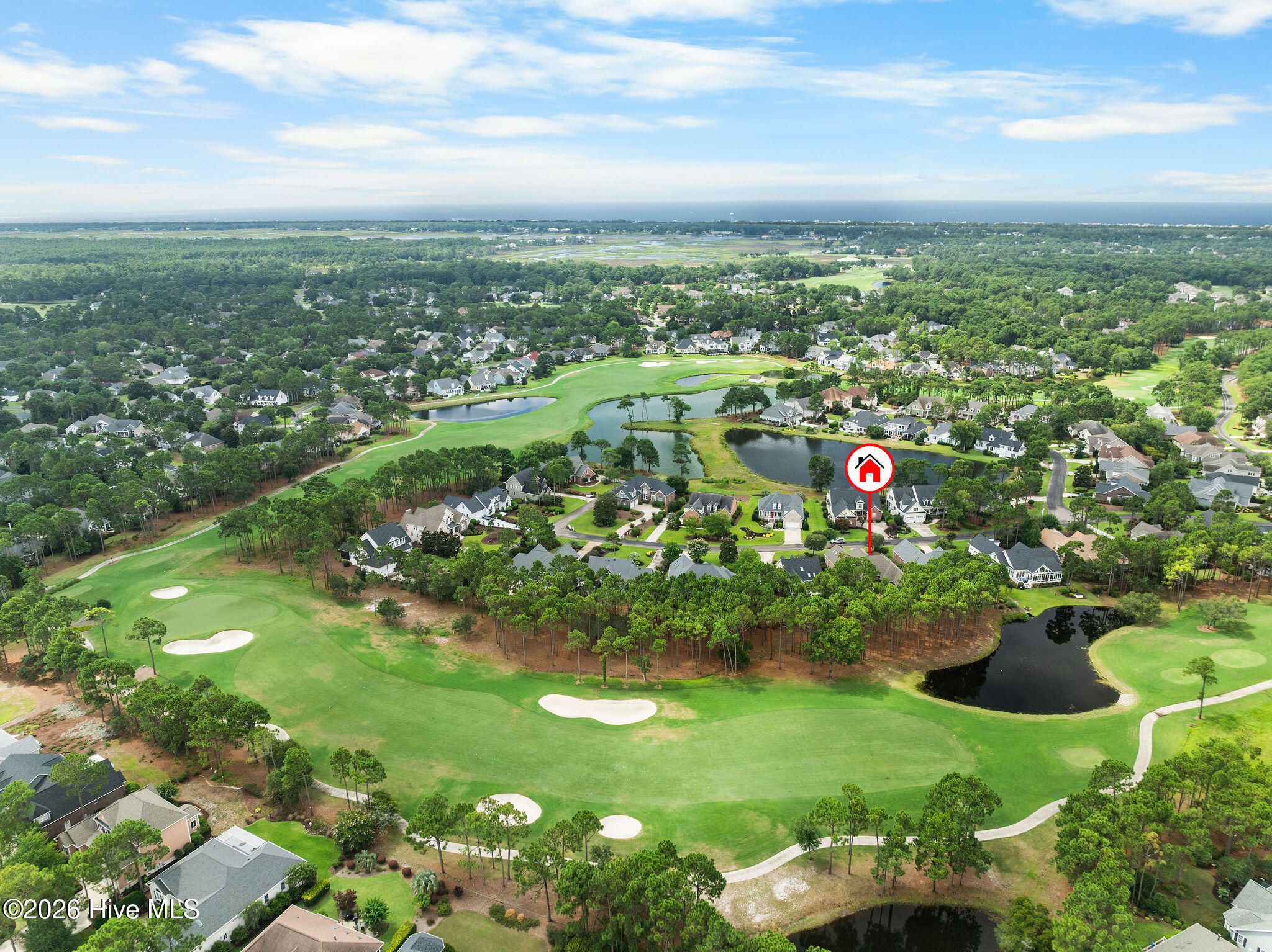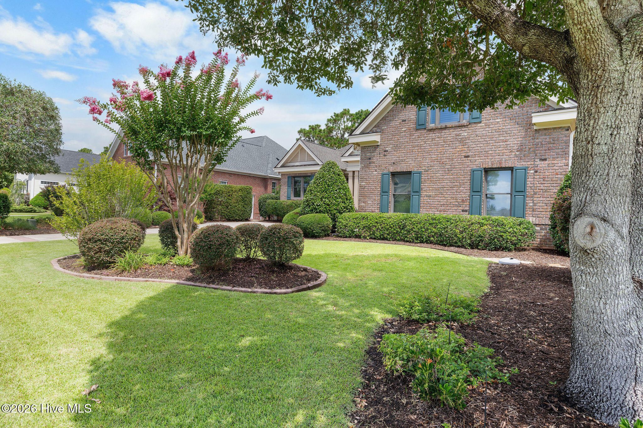 This custom-built all brick home is beautifully positioned along the 14th hole of the Members Golf Course in St. James Plantation, enjoying panoramic golf course and pond views. Impeccably maintained the one-story living floor plan offers 3 bedrooms, 3 full baths with 2,819 heated square feet of thoughtfully designed living space. The distinctive rake joint masonry work is impressive around the entire house and gives the brick a more pronounced look and texture. A paved driveway with brick accents leads to a courtyard entry garage, while the inviting front porch with tile flooring, a wood ceiling, and a leaded-glass front door welcomes you inside. This home includes a Premier Club Membership transfer, with the option to upgrade to a Signature Membership for $10,000, representing a savings in membership purchase of $20,000-$25,000 compared to purchasing a new membership separately. Inside, rich hickory wood flooring flows through the main living areas, complemented by pocket doors, crown molding, and elevated ceilings that enhance the home's open and comfortable feel. The formal dining room opens seamlessly to the great room, which features a gas fireplace, custom built-ins, and expansive glass doors with transom windows framing views of the backyard, pond, and golf course. The Carolina Room is a true highlight of the home, offering tiled floors, a beadboard ceiling, and walls of windows that capture peaceful pond and golf course views. This serene space is ideal for relaxing or entertaining and connects effortlessly to the kitchen and outdoor living areas. The kitchen offers ample cabinetry with pantry storage, solid surface countertops, tiled backsplash, stainless steel appliances, and a multi-level island with seating. A breakfast nook set within a bay window provides additional dining space overlooking the backyard. The desirable split-bedroom layout offers privacy for both owners and guests. The owner's suite features wood flooring, a tray ceiling, an angled bay window, two walk-in closets, and an en-suite bath with dual vanities, a walk-in shower, and a jetted soaking tub. A guest bedroom and full bath are conveniently located on the main level, while the upstairs bonus room/3rd bedroom with full bath and cedar closet provides flexible space ideal for guests, a home office, or recreation. Outdoor living includes an open deck and paver patio overlooking the pond and golf course, perfect for enjoying the mild Carolina weather. Notable updates include a new roof installed in 2022 and a dual-unit gas pack heating and air system installed in 2019, along with a crawlspace dehumidifier. There is no lack of storage with an oversized 2 car garage and walk-in attic storage. If you have been searching for a well-maintained home with incredible golf course and pond views, this property delivers. Located in St. James Plantation, residents enjoy access to exceptional amenities including multiple championship golf courses, private beach club, marina, walking and biking trails, fitness facilities, swimming pools, tennis, pickleball, and dining offering a true coastal lifestyle just minutes from historic Southport and area beaches.