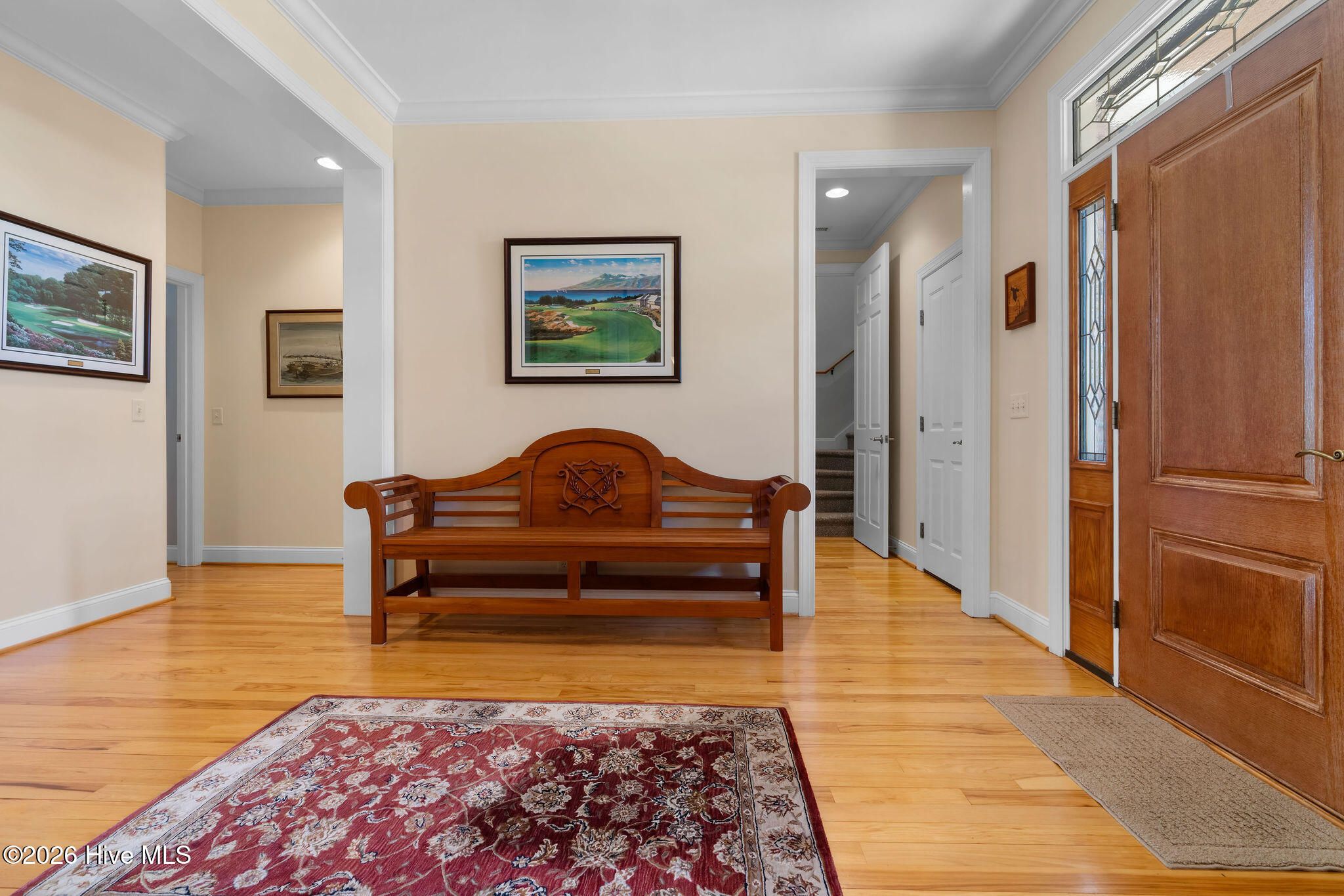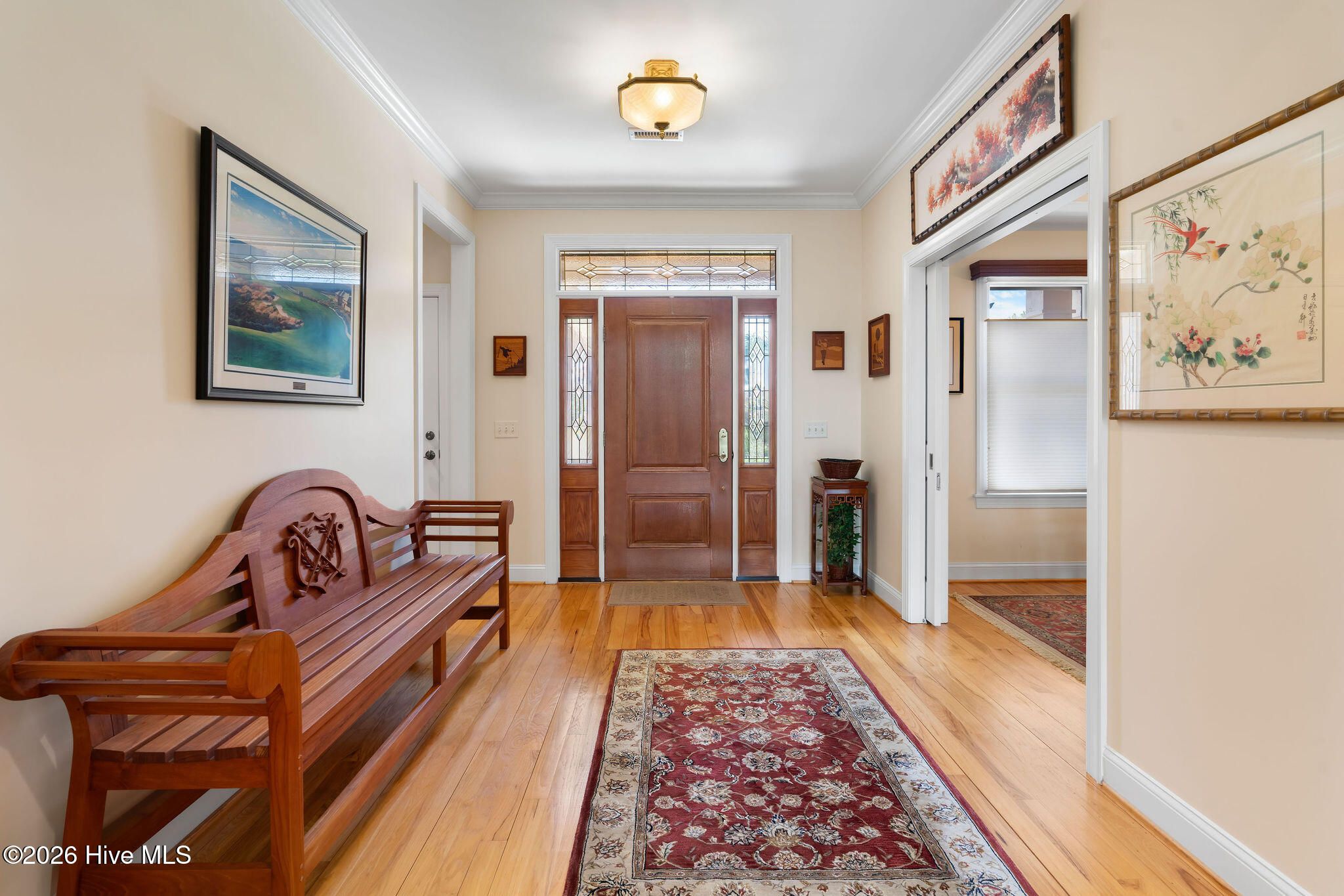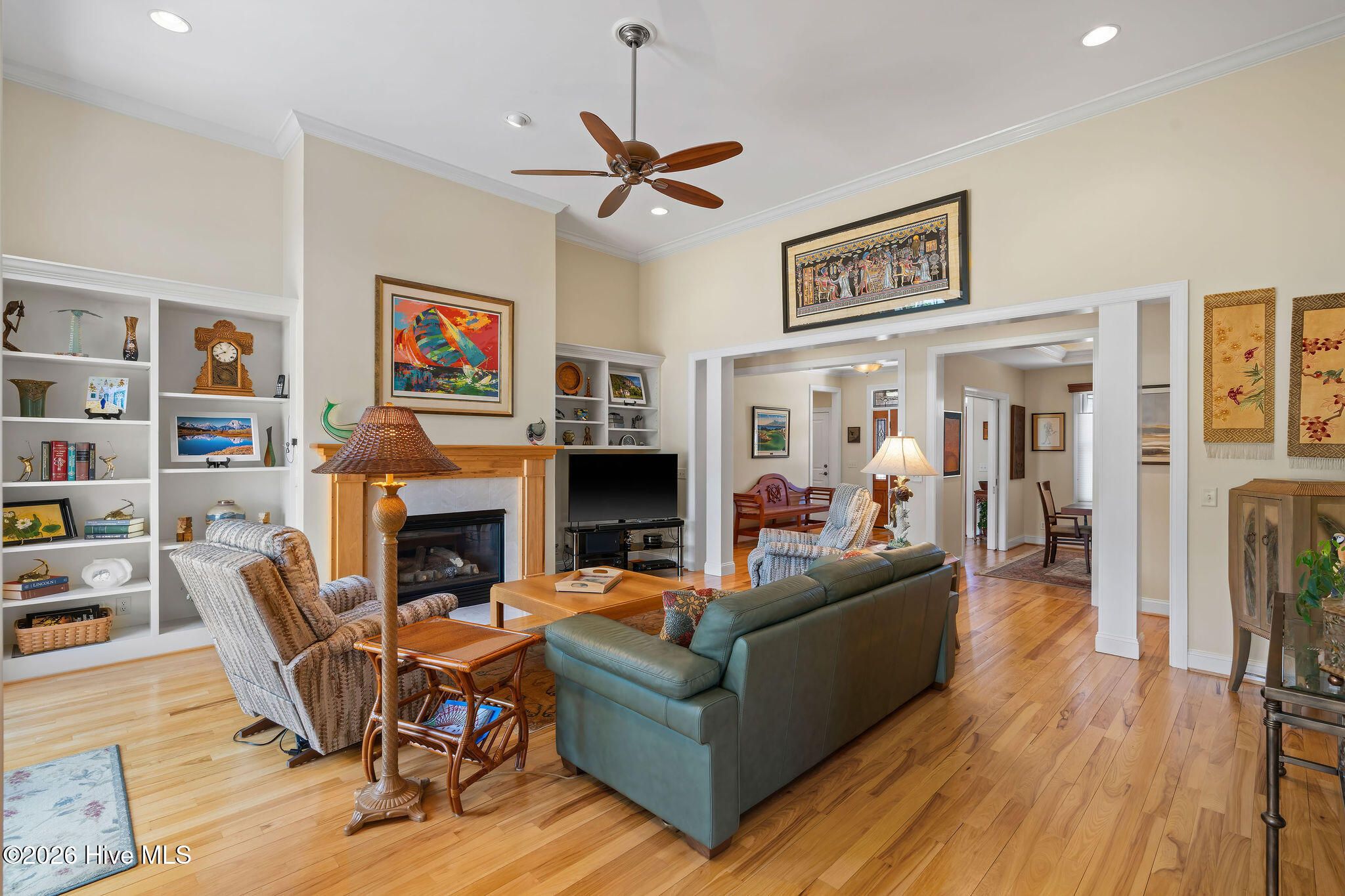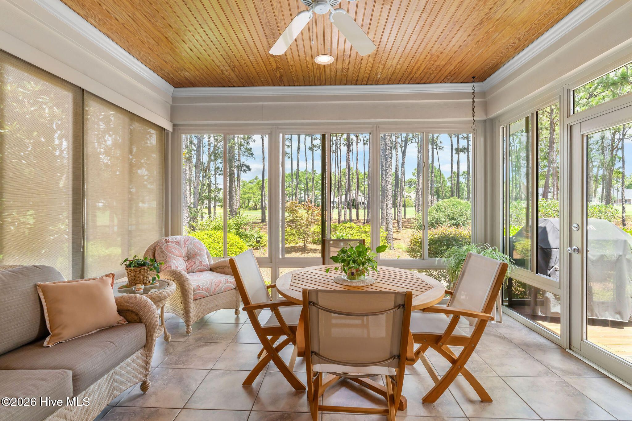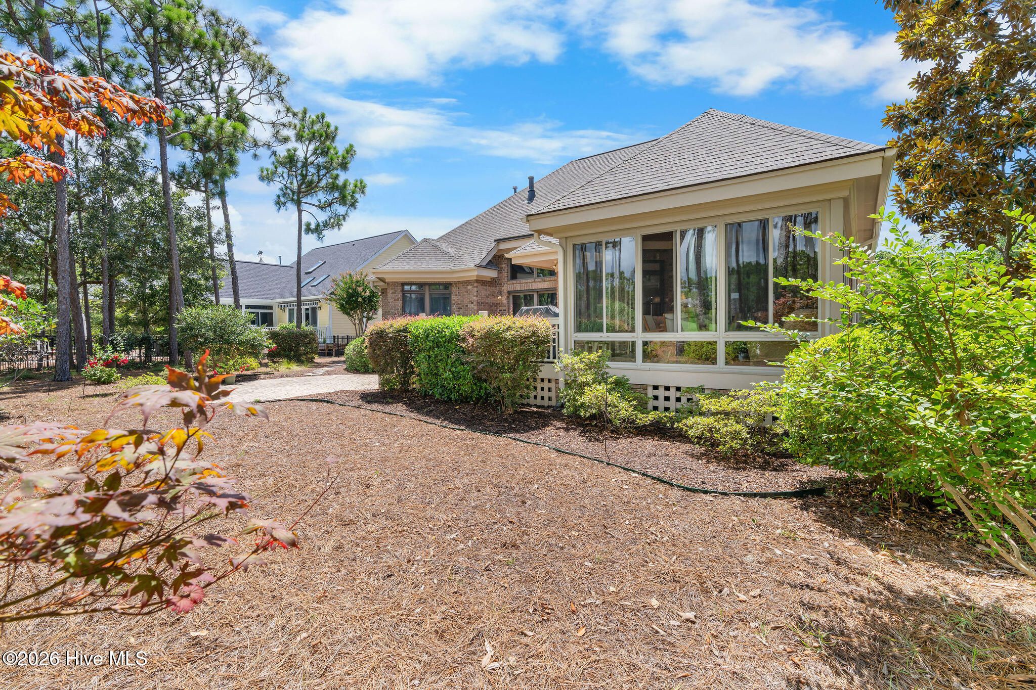 This custom-built all brick home is beautifully positioned along the 14th hole of the Members Golf Course in St. James Plantation, enjoying panoramic golf course and pond views. Impeccably maintained the one-story living floor plan offers 3 bedrooms, 3 full baths with 2,819 heated square feet of thoughtfully designed living space. The distinctive rake joint masonry work is impressive around the entire house and gives the brick a more pronounced look and texture. A paved driveway with brick accents leads to a courtyard entry garage, while the inviting front porch with tile flooring, a wood ceiling, and a leaded-glass front door welcomes you inside. This home includes a Premier Club Membership transfer, with the option to upgrade to a Signature Membership for $10,000, representing a savings in membership purchase of $20,000-$25,000 compared to purchasing a new membership separately. Inside, rich hickory wood flooring flows through the main living areas, complemented by pocket doors, crown molding, and elevated ceilings that enhance the home's open and comfortable feel. The formal dining room opens seamlessly to the great room, which features a gas fireplace, custom built-ins, and expansive glass doors with transom windows framing views of the backyard, pond, and golf course. The Carolina Room is a true highlight of the home, offering tiled floors, a beadboard ceiling, and walls of windows that capture peaceful pond and golf course views. This serene space is ideal for relaxing or entertaining and connects effortlessly to the kitchen and outdoor living areas. The kitchen offers ample cabinetry with pantry storage, solid surface countertops, tiled backsplash, stainless steel appliances, and a multi-level island with seating. A breakfast nook set within a bay window provides additional dining space overlooking the backyard. The desirable split-bedroom layout offers privacy for both owners and guests. The owner's suite features wood flooring, a tray ceiling, an angled bay window, two walk-in closets, and an en-suite bath with dual vanities, a walk-in shower, and a jetted soaking tub. A guest bedroom and full bath are conveniently located on the main level, while the upstairs bonus room/3rd bedroom with full bath and cedar closet provides flexible space ideal for guests, a home office, or recreation. Outdoor living includes an open deck and paver patio overlooking the pond and golf course, perfect for enjoying the mild Carolina weather. Notable updates include a new roof installed in 2022 and a dual-unit gas pack heating and air system installed in 2019, along with a crawlspace dehumidifier. There is no lack of storage with an oversized 2 car garage and walk-in attic storage. If you have been searching for a well-maintained home with incredible golf course and pond views, this property delivers. Located in St. James Plantation, residents enjoy access to exceptional amenities including multiple championship golf courses, private beach club, marina, walking and biking trails, fitness facilities, swimming pools, tennis, pickleball, and dining offering a true coastal lifestyle just minutes from historic Southport and area beaches.