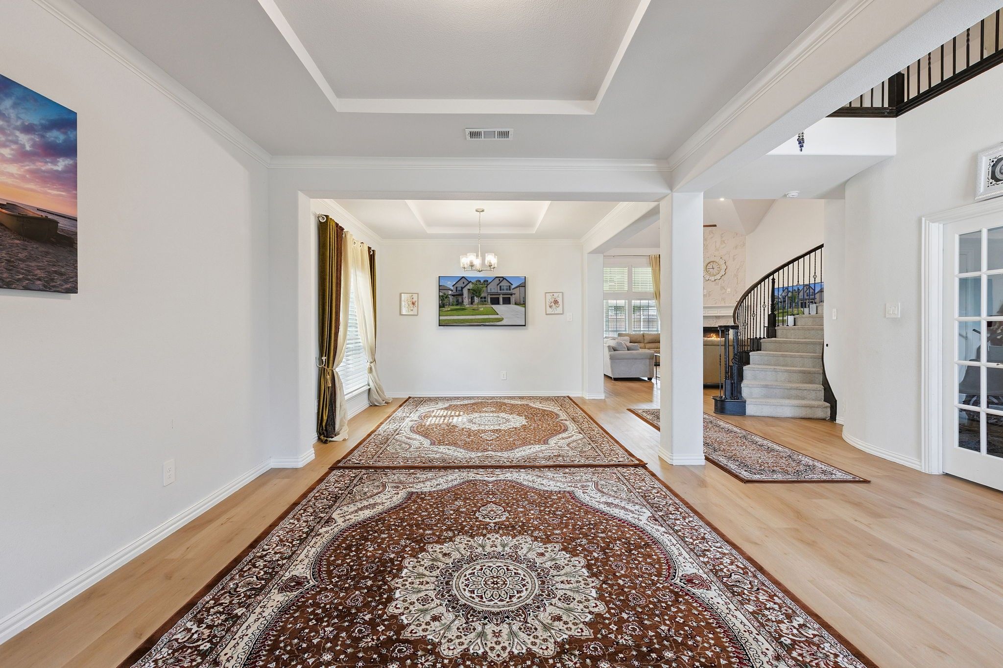 Stunning Home in Highly Sought after new phase of WoodBridge in Wylie! Soaring 20 ft ceilings, gourmet kitchen, stunning custom finishes! Perfect for entertaining with large yard! Near amazing shopping centers in Wylie including the future HEB. Downstairs office can also be used as a 6th Bedroom. Perfect for a big family. Resort style Hoa Pool. Highly rated Wylie ISD schools. New roof! High Energy efficiency home. Priced to Sell.