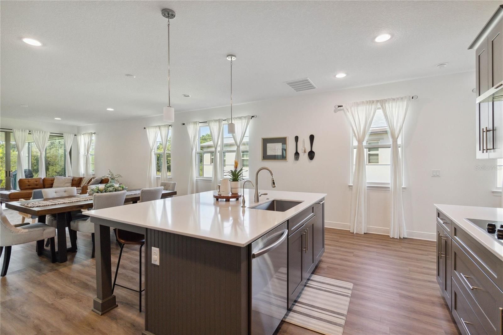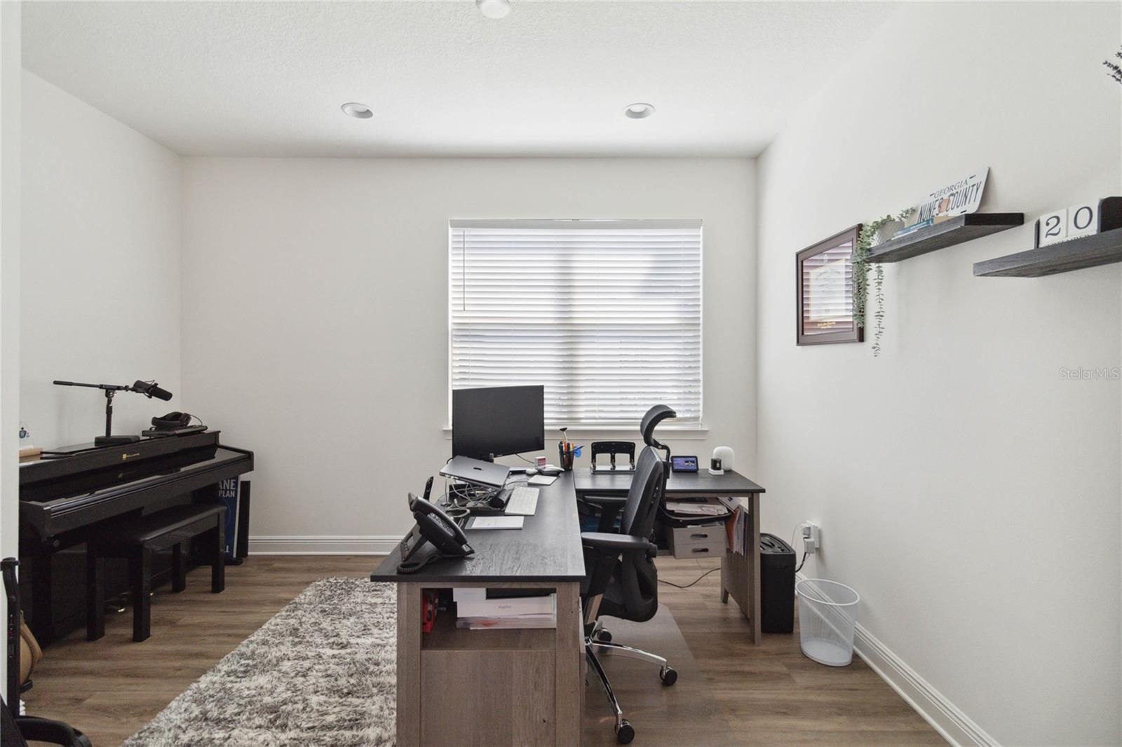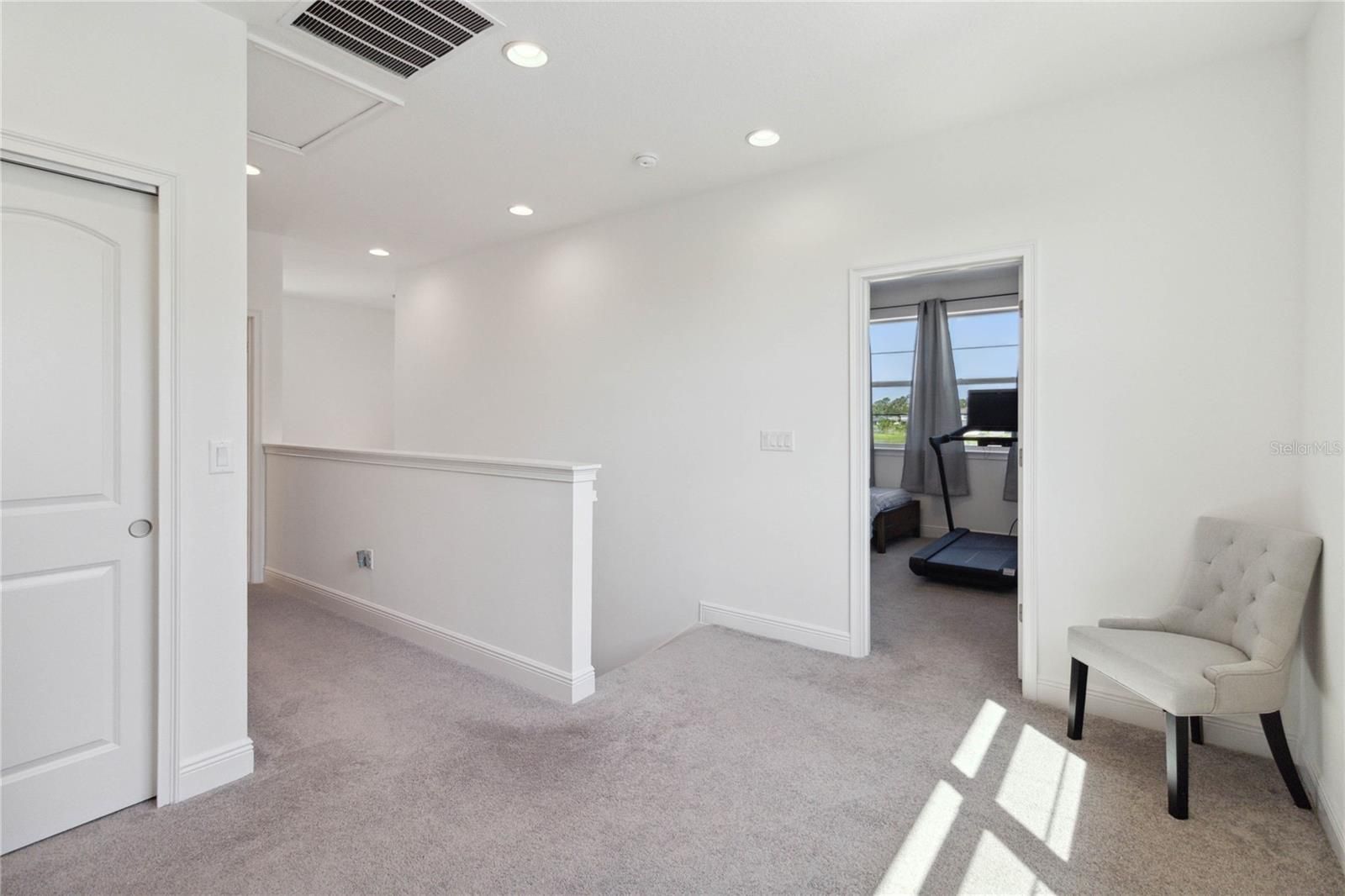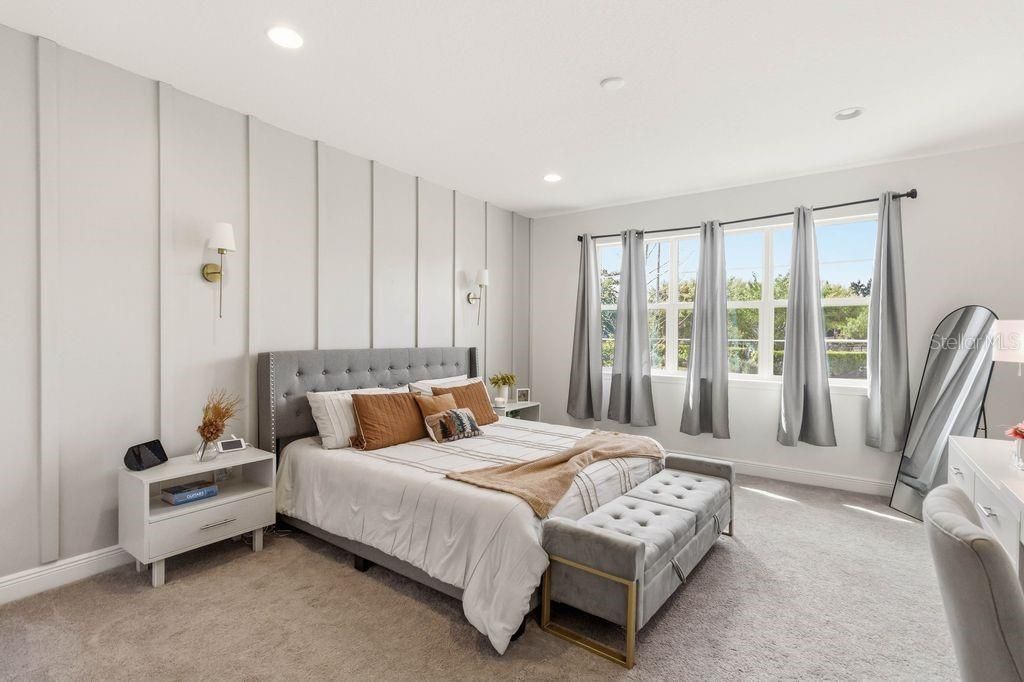Welcome to this stunning, spacious home in the highly sought-after Harmony community—a gated, family-friendly neighborhood known for its top-rated, A-rated schools and exceptional amenities. This thoughtfully designed residence features 4 generous bedrooms, including a luxurious primary suite conveniently located on the main floor. Upstairs, you'll find a versatile layout with one bedroom offering a private ensuite, plus two additional bedrooms, a full bathroom, and a cozy loft. The main level boasts an open-concept design that seamlessly connects the living, dining, and beautifully upgraded kitchen—ideal for both everyday living and entertaining. The kitchen is a true centerpiece, showcasing modern finishes and high-end appliances that will delight any home chef. A dedicated office downstairs offers flexibility and can easily serve as a 5th bedroom. Additional conveniences include a laundry room and a half bath on the main floor. Natural light pours into the home through large windows and expansive sliding glass doors, leading to a serene screened-in lanai. Enjoy peaceful outdoor living with a spacious, private backyard and no neighbors in the front or rear—providing rare privacy and tranquility. Living in Harmony means access to incredible amenities, including two resort-style pools, a splash pad, basketball and volleyball courts, a soccer field, boat dock, scenic nature trails, and dog parks—all surrounded by beautiful natural landscapes. Don’t miss the opportunity to own this exceptional home in one of the area’s most desirable communities!