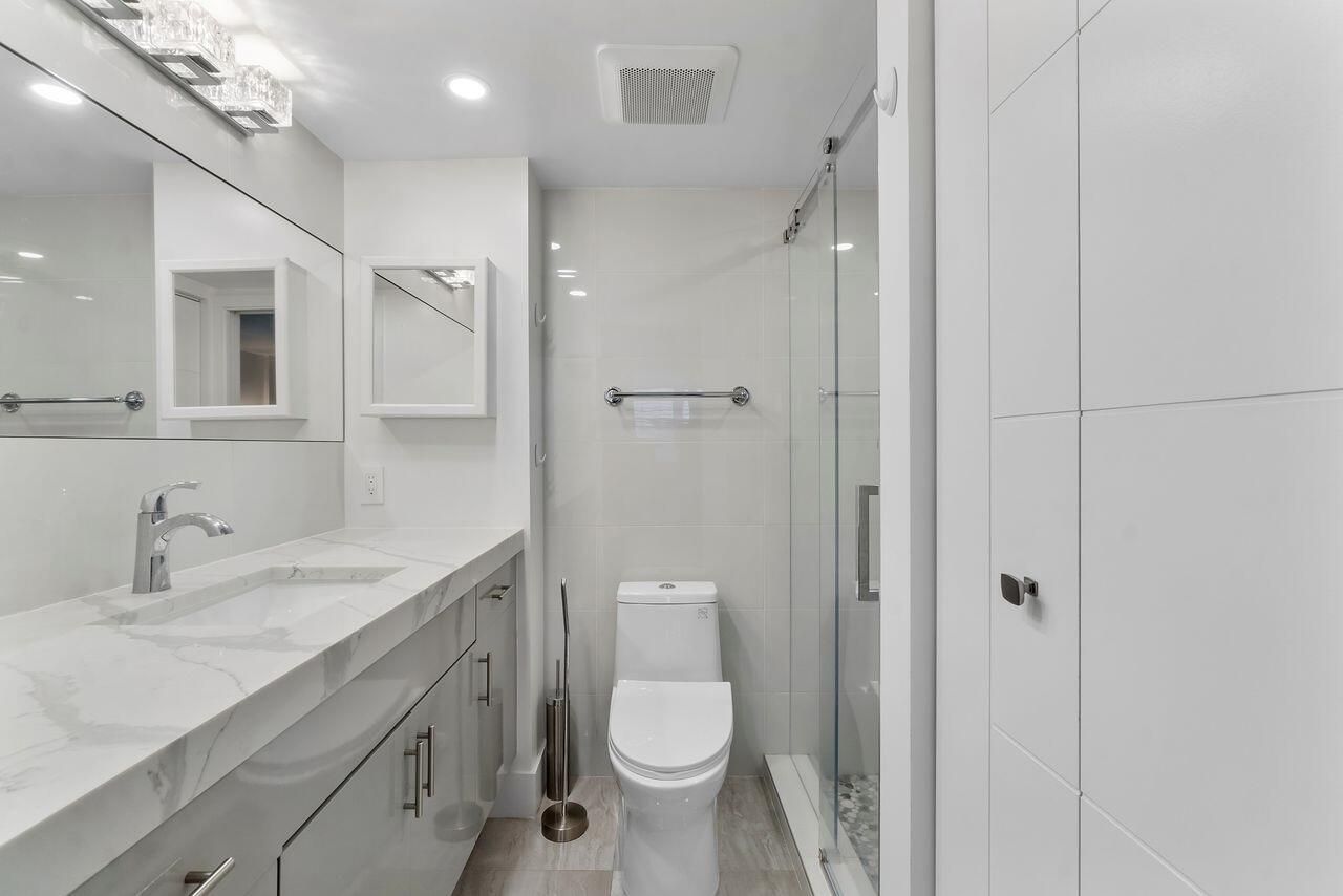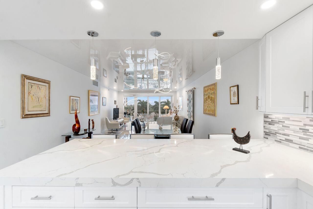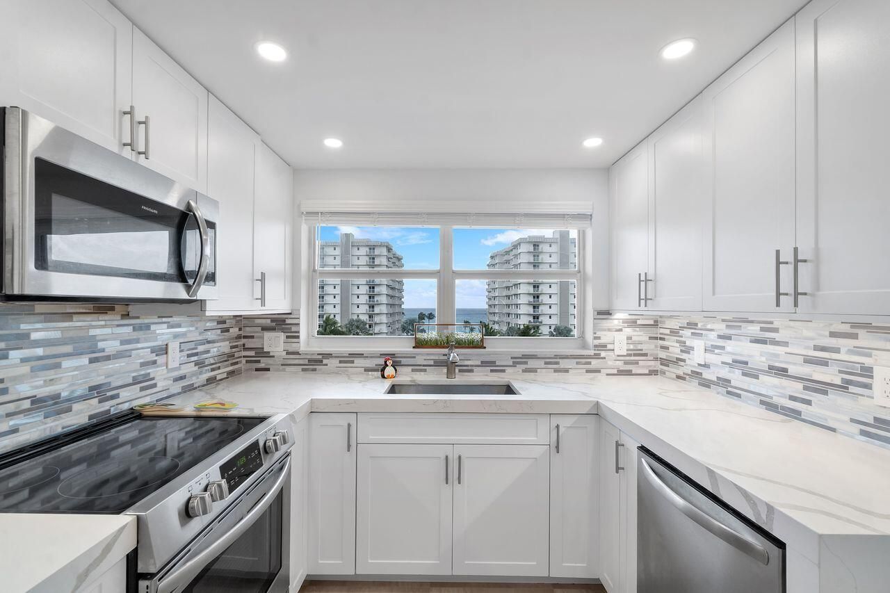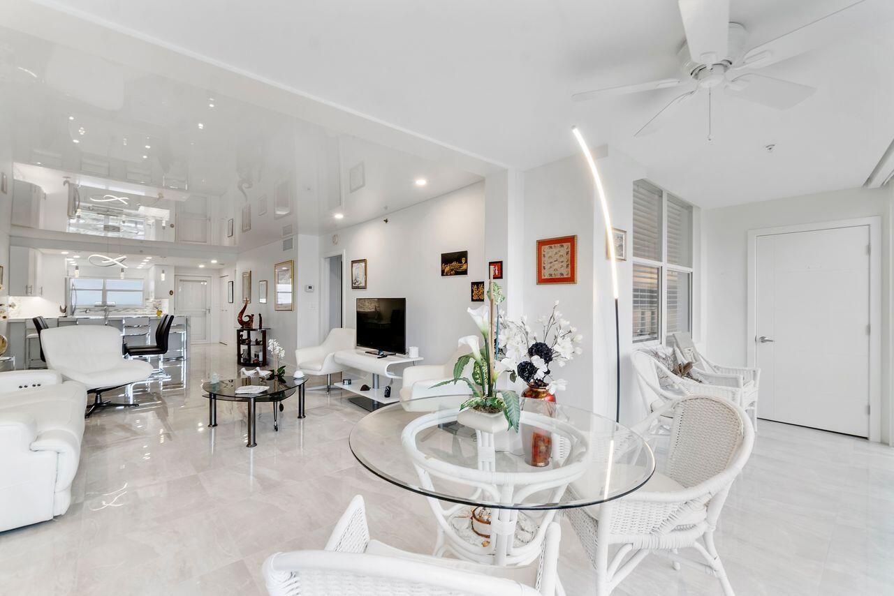Elegantly Remodeled 2/2 Residence with the Perfect Height and Vantage to Savor Intracoastal and Ocean Views. Ocean and Intracoastal Views throughout every angle. This residence is recently remodeled 2 years ago w neutral toned elegant modern high-end finishes.The property includes AC 3 years,HWH 2-3 years new,Big Open Kitchen with Custom Quartz White Vein Island Bar with extended space for 5 bar stools,new cabinetry, new stainless steel appliances,new remote auto window treatments,new doors,new pantry doors & new front door hurricane impact,smooth vinyl shimmering ceilings with upgraded electrical,remodeled bathrooms,large custom walk in closet,large neutral tone marble tile flooring,new baseboards,full hurricane impact balcony sliders and windows,fresh paint & rare covered corner parking
