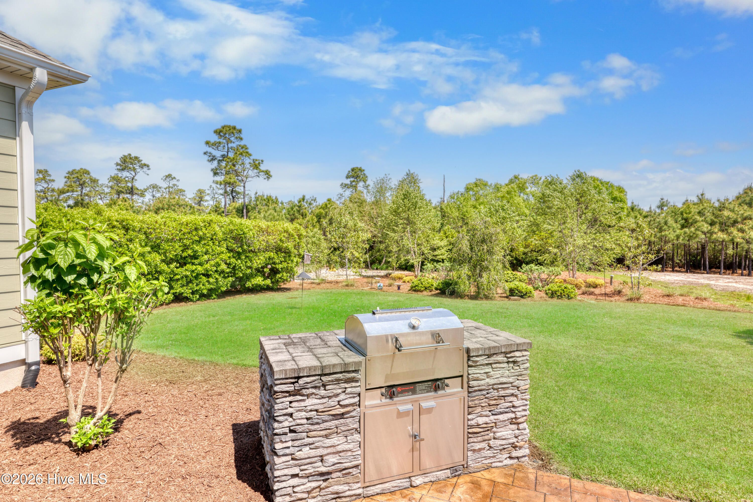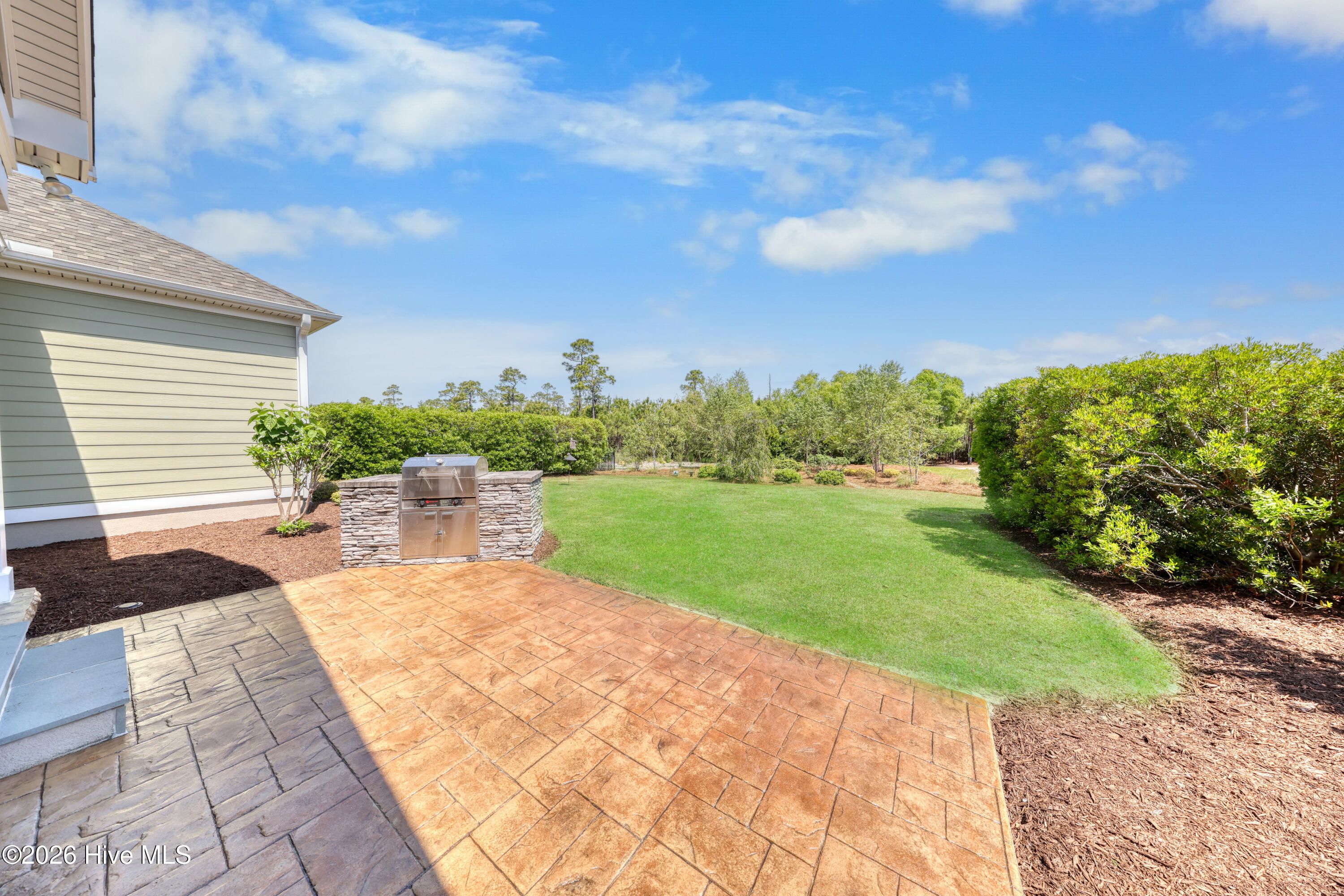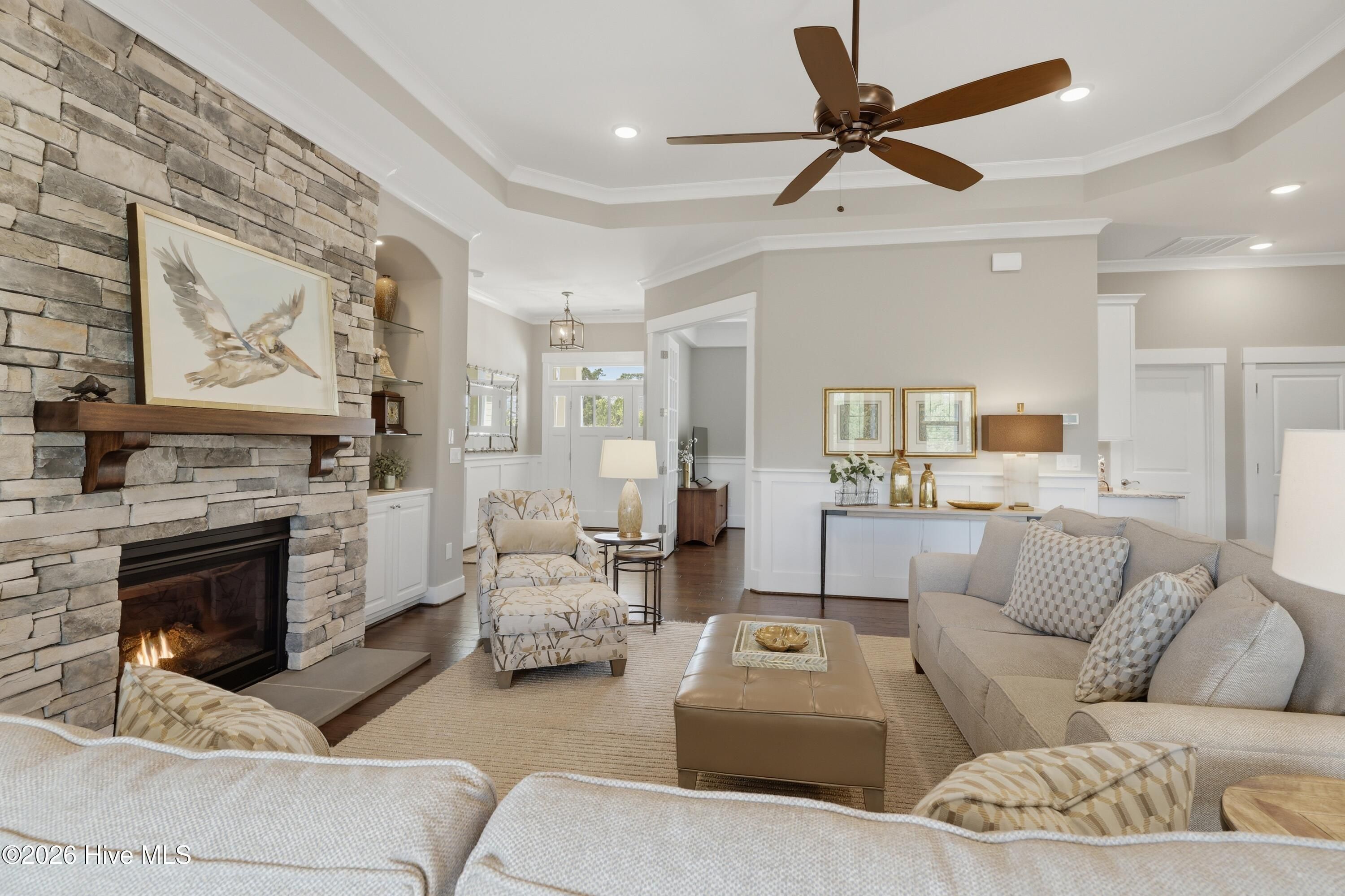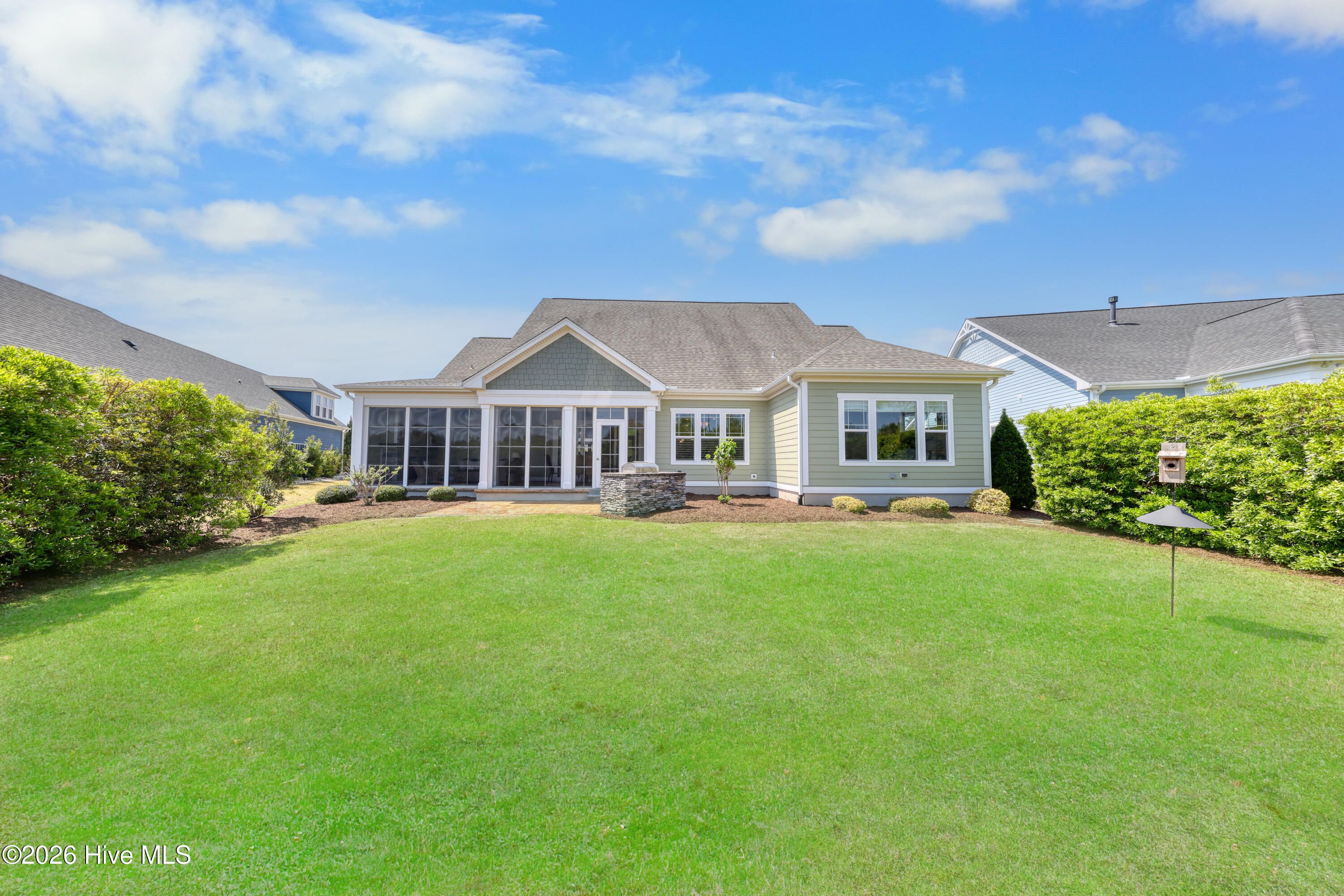 Stunning, free-flowing open-concept residence offering refined coastal living with thoughtful upgrades and elevated finishes throughout. Impeccably maintained and presented with model-home quality throughout, this well-designed home features 4 bedrooms, 3.5 baths, and a French-door office or sitting room on the main level, along with a spacious bonus room or 4th bedroom with full bath upstairs--ideal for guests or private retreat space. Ideally located within the desirable Reserve neighborhood, just moments from the Seaside Fitness Center and convenient gate access. Beautifully styled in contemporary coastal neutrals, the home showcases extensive custom millwork, crown molding, custom built-ins in all closets, plantation shutters throughout, and engineered hardwood flooring throughout the main living areas, creating a polished yet inviting atmosphere. The chef's kitchen is both functional and sophisticated, featuring Cambria quartz countertops, induction cooktop, GE Avantium wall oven and microwave, Bosch dishwasher, LG refrigerator, Blanco granite composite sink, walk-in pantry with custom shelving, and a dedicated coffee bar. The spacious great room is anchored by a propane stone floor to ceiling fireplace with lighted built-ins and flows seamlessly into a bright three-season Carolina room with a second stone fireplace, overlooking a private, lightly wooded backyard. The primary suite offers a true retreat with tray ceiling, dual custom walk-in closets with built-ins, and a well-appointed ensuite featuring dual vanities and a large walk-in shower. Direct access to the laundry room enhances everyday functionality. Upstairs, the oversized bonus room with full bath provides flexible living space, abundant storage, and a large walk-in attic. Outdoor living is a standout feature, with an insulated loggia, stone fireplace, and a permanently installed Wilmington Grill, all set on an oversized private homesite with deeper setback and enhanced privacy from neighboring properties, backing to a designated private wildlife habitat and surrounded by mature landscaping with zoysia grass. This home has been extensively enhanced beyond the standard build, including a recently replaced HVAC air handler, radiant barrier roof sheathing, added insulation, full exterior repaint, and an expanded garage with large storage closet. Experience the unmatched St. James lifestyle, featuring 81 holes of championship golf, Har-Tru tennis and pickleball, over 35 miles of walking and biking trails, a 475-slip marina, Waterway Park with kayak launch, amphitheater, tiki bar, and a private oceanfront beach club.