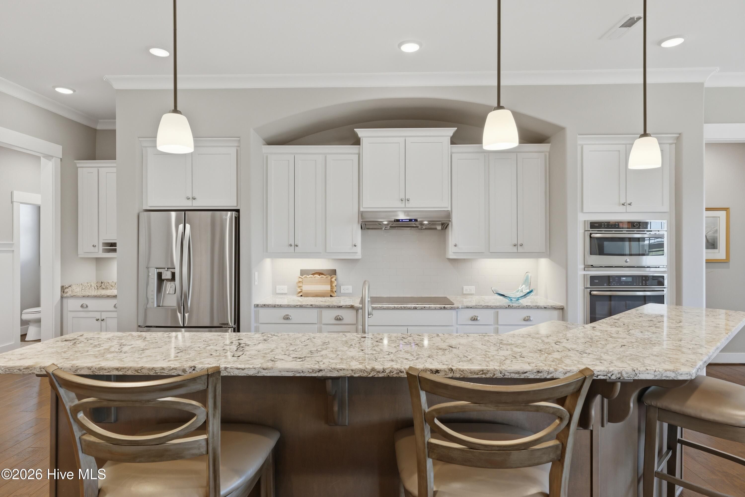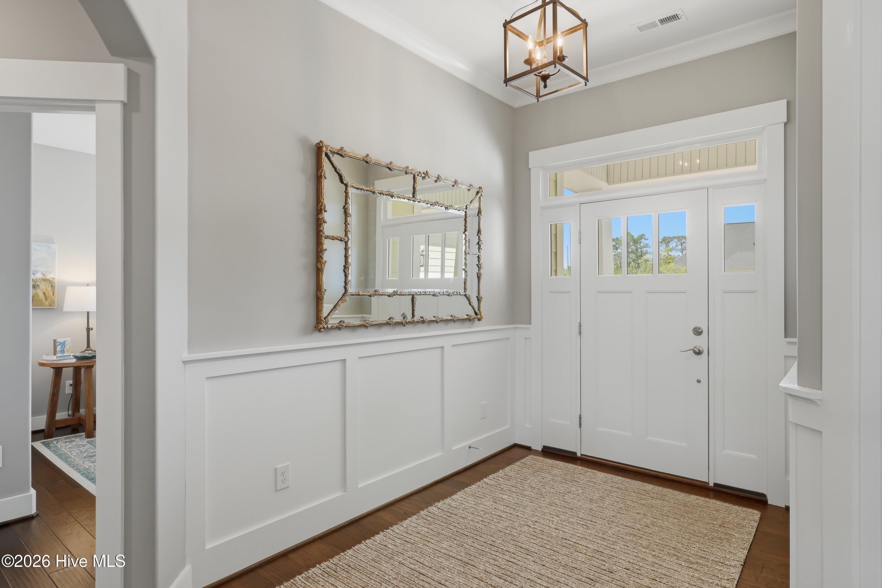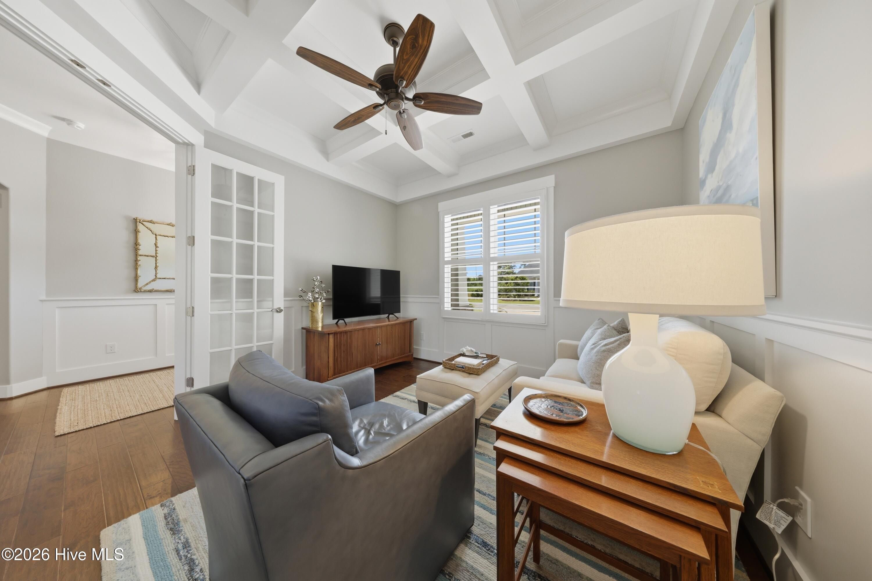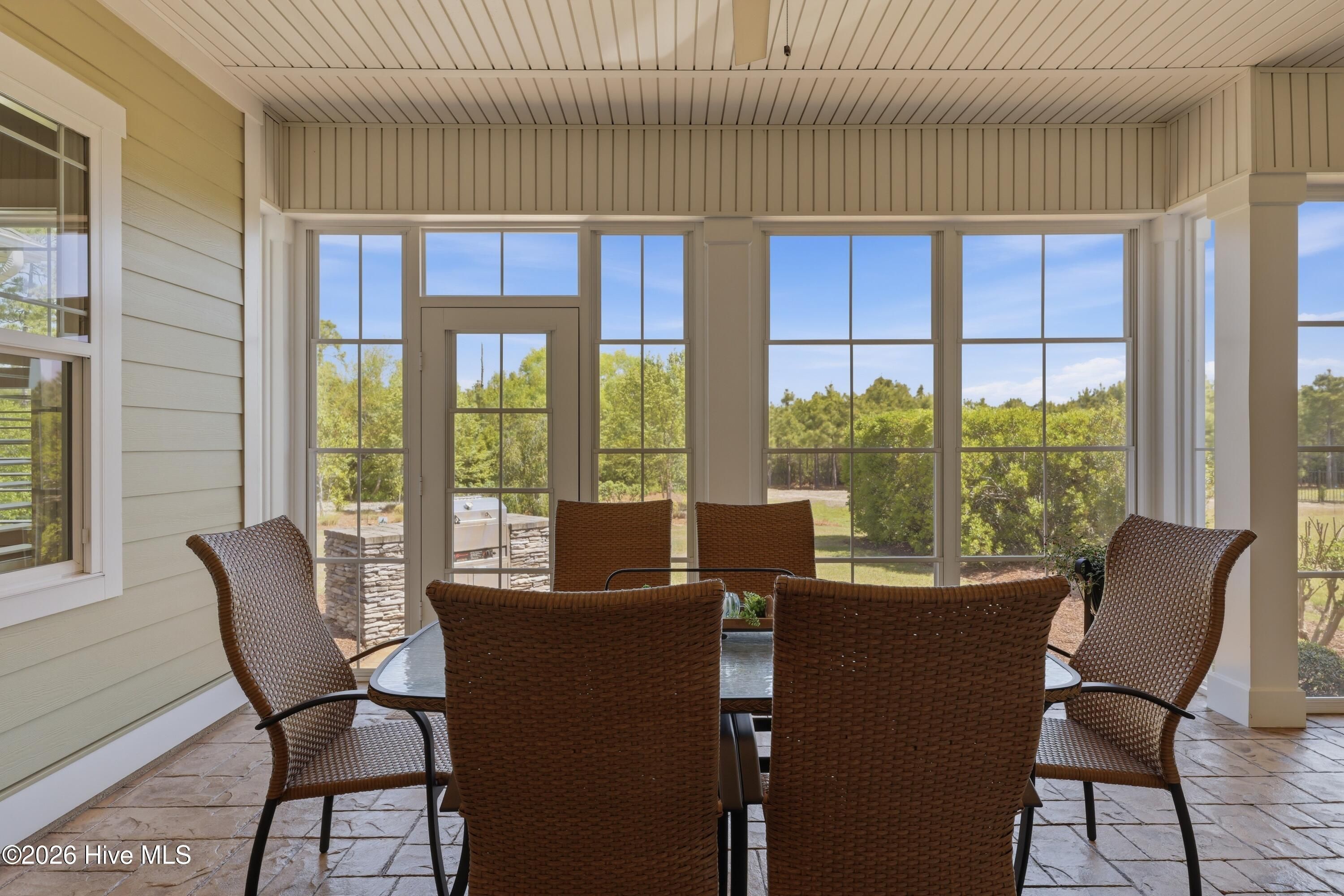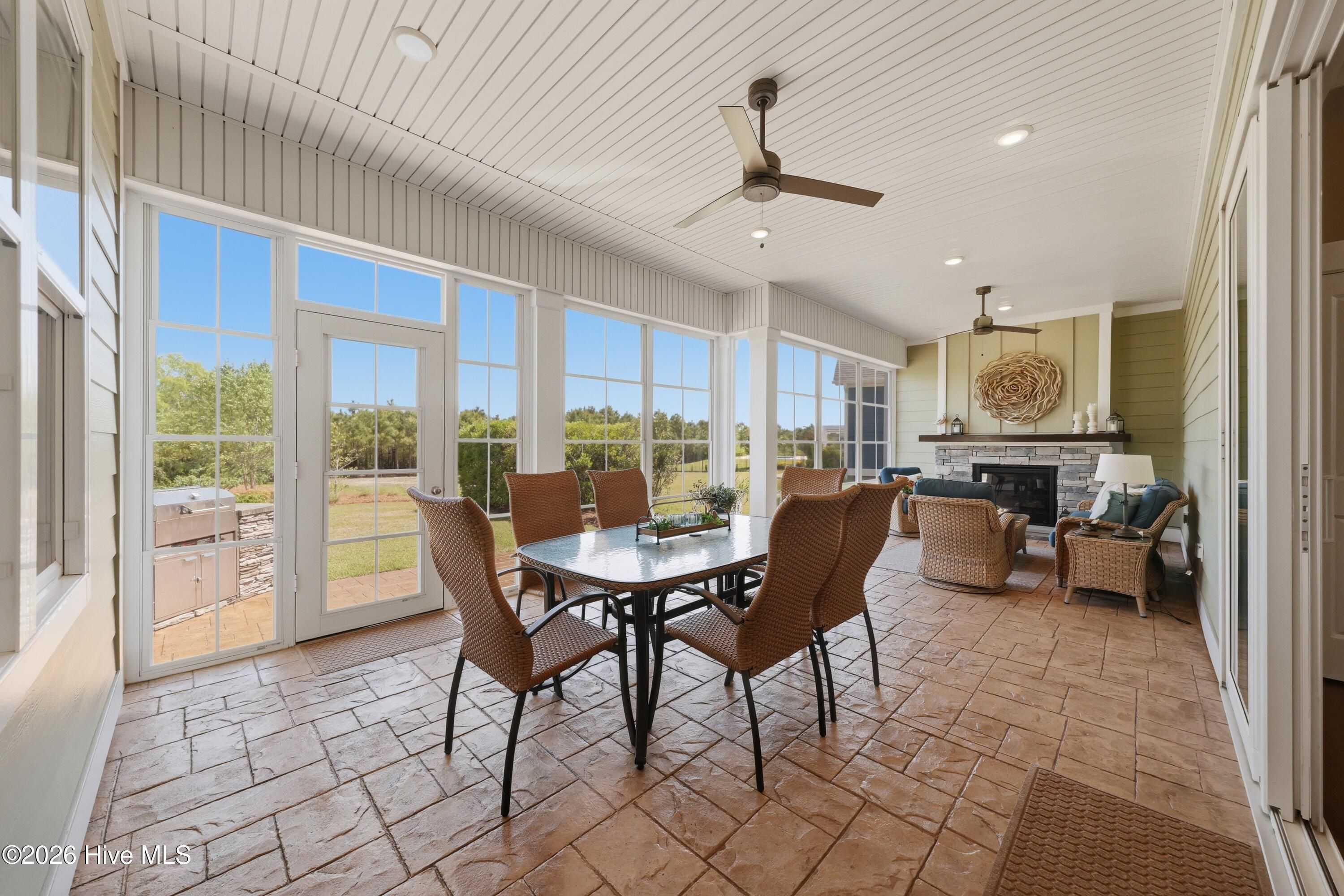 Stunning, free-flowing open-concept residence offering refined coastal living with thoughtful upgrades and elevated finishes throughout. Impeccably maintained and presented with model-home quality throughout, this well-designed home features 4 bedrooms, 3.5 baths, and a French-door office or sitting room on the main level, along with a spacious bonus room or 4th bedroom with full bath upstairs--ideal for guests or private retreat space. Ideally located within the desirable Reserve neighborhood, just moments from the Seaside Fitness Center and convenient gate access. Beautifully styled in contemporary coastal neutrals, the home showcases extensive custom millwork, crown molding, custom built-ins in all closets, plantation shutters throughout, and engineered hardwood flooring throughout the main living areas, creating a polished yet inviting atmosphere. The chef's kitchen is both functional and sophisticated, featuring Cambria quartz countertops, induction cooktop, GE Avantium wall oven and microwave, Bosch dishwasher, LG refrigerator, Blanco granite composite sink, walk-in pantry with custom shelving, and a dedicated coffee bar. The spacious great room is anchored by a propane stone floor to ceiling fireplace with lighted built-ins and flows seamlessly into a bright three-season Carolina room with a second stone fireplace, overlooking a private, lightly wooded backyard. The primary suite offers a true retreat with tray ceiling, dual custom walk-in closets with built-ins, and a well-appointed ensuite featuring dual vanities and a large walk-in shower. Direct access to the laundry room enhances everyday functionality. Upstairs, the oversized bonus room with full bath provides flexible living space, abundant storage, and a large walk-in attic. Outdoor living is a standout feature, with an insulated loggia, stone fireplace, and a permanently installed Wilmington Grill, all set on an oversized private homesite with deeper setback and enhanced privacy from neighboring properties, backing to a designated private wildlife habitat and surrounded by mature landscaping with zoysia grass. This home has been extensively enhanced beyond the standard build, including a recently replaced HVAC air handler, radiant barrier roof sheathing, added insulation, full exterior repaint, and an expanded garage with large storage closet. Experience the unmatched St. James lifestyle, featuring 81 holes of championship golf, Har-Tru tennis and pickleball, over 35 miles of walking and biking trails, a 475-slip marina, Waterway Park with kayak launch, amphitheater, tiki bar, and a private oceanfront beach club.