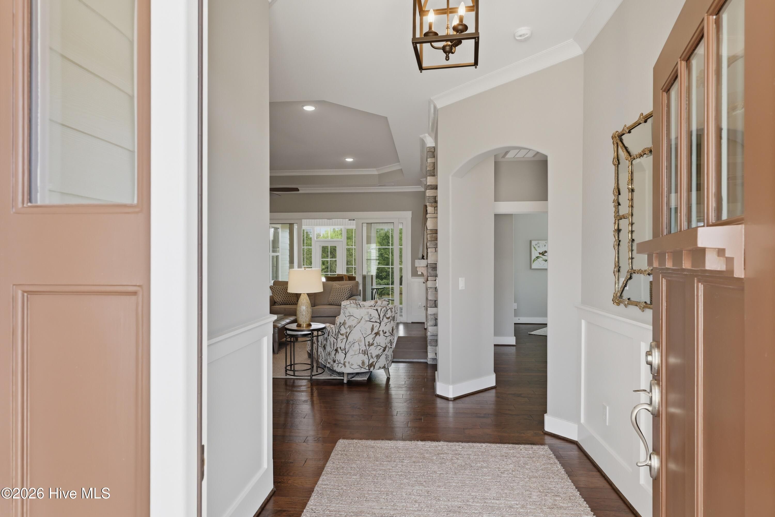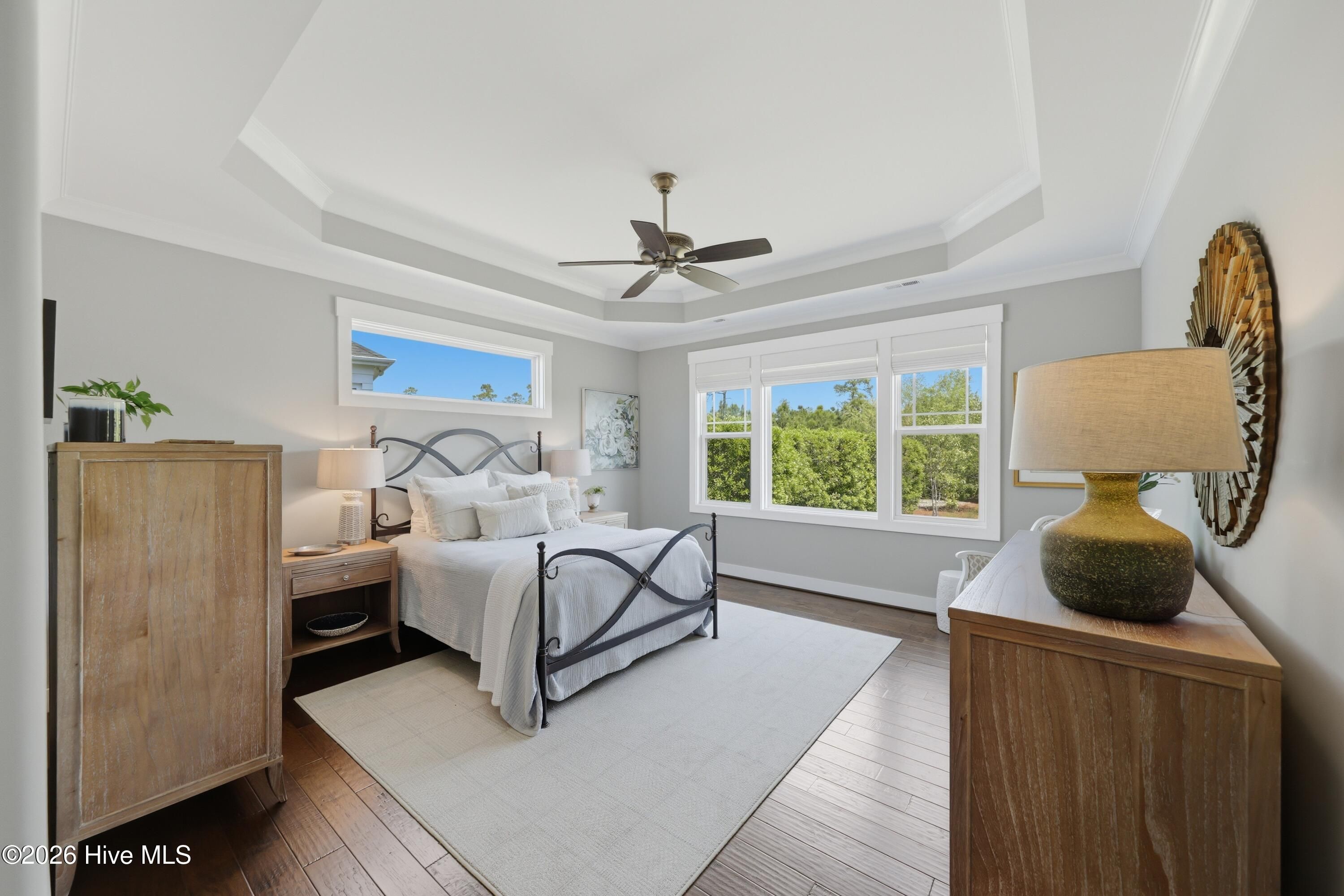 - Master Downstairs, Walk-in Closet(s), Tray Ceiling(s), High Ceilings, Entrance Foyer, Bookcases, Kitchen Island, Ceiling Fan(s), Pantry, Walk-in Shower