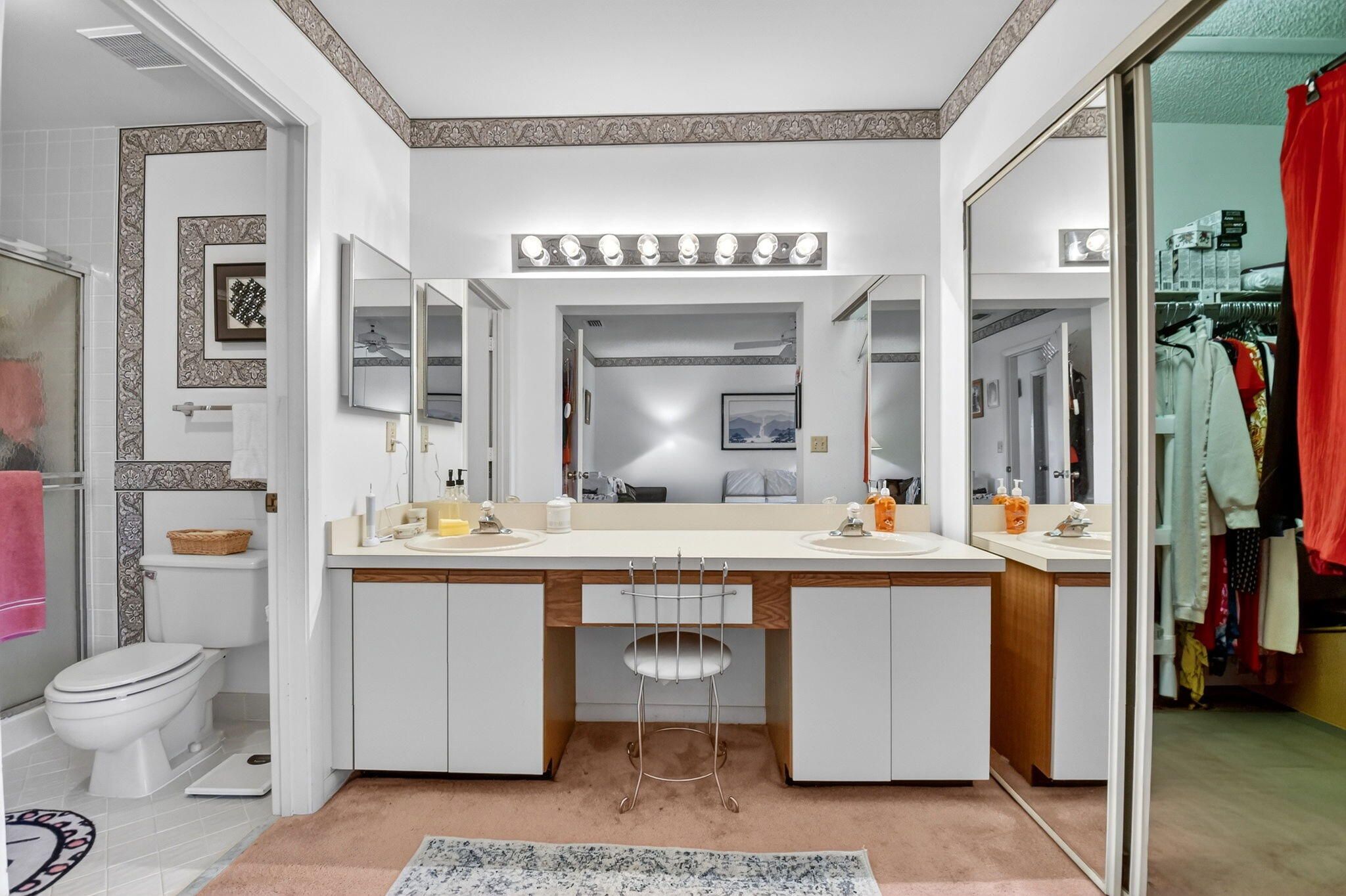 Located within the desirable 55+ community of Park Pointe in Greenacres, this second-floor Aruba model condo offers generous living space and an excellent opportunity to customize and add value. The open and airy layout is enhanced by vaulted ceilings, creating a bright and welcoming atmosphere throughout the home. The residence features two bedrooms and two full bathrooms, ideal for comfortable everyday living or hosting visiting guests. Recent mechanical updates provide peace of mind, including a new AC system and hot water heater installed in 2021. Additional 2021 improvements include a new garbage disposal, kitchen faucet, and shut-off valve under the kitchen sink, along with a new refrigerator added in 2024. In 2025, the AC ducts were professionally cleaned and sanitized, further