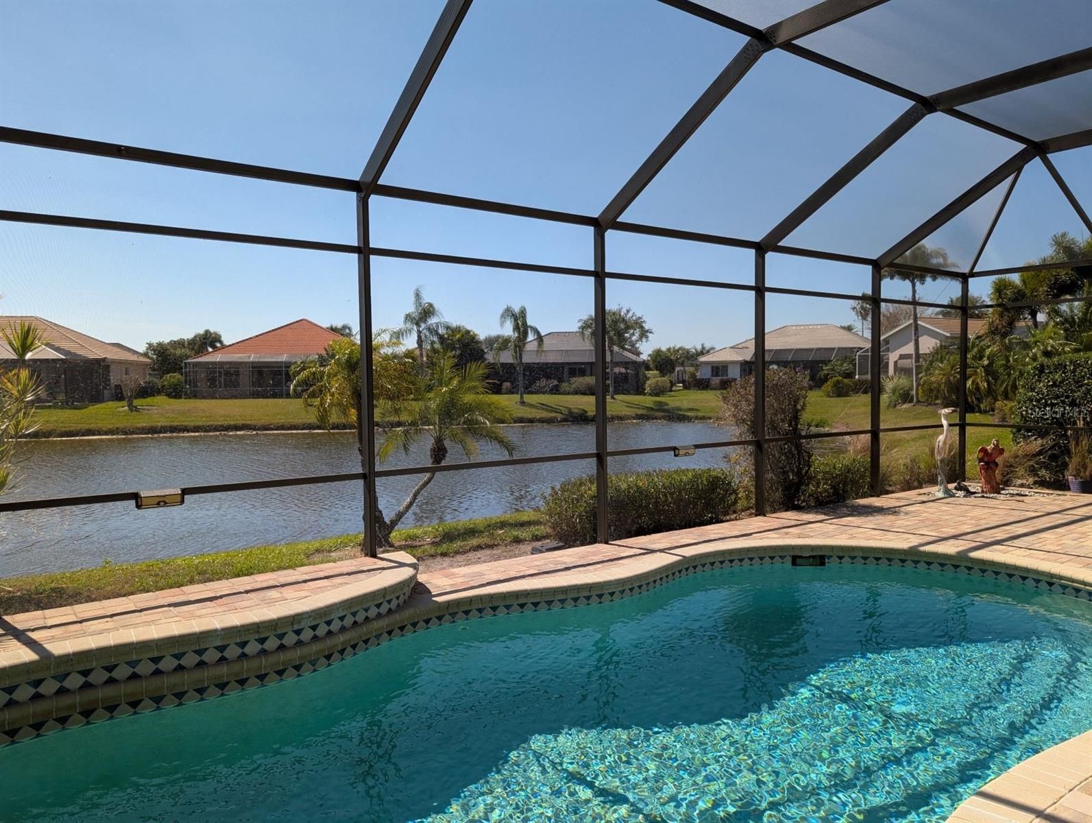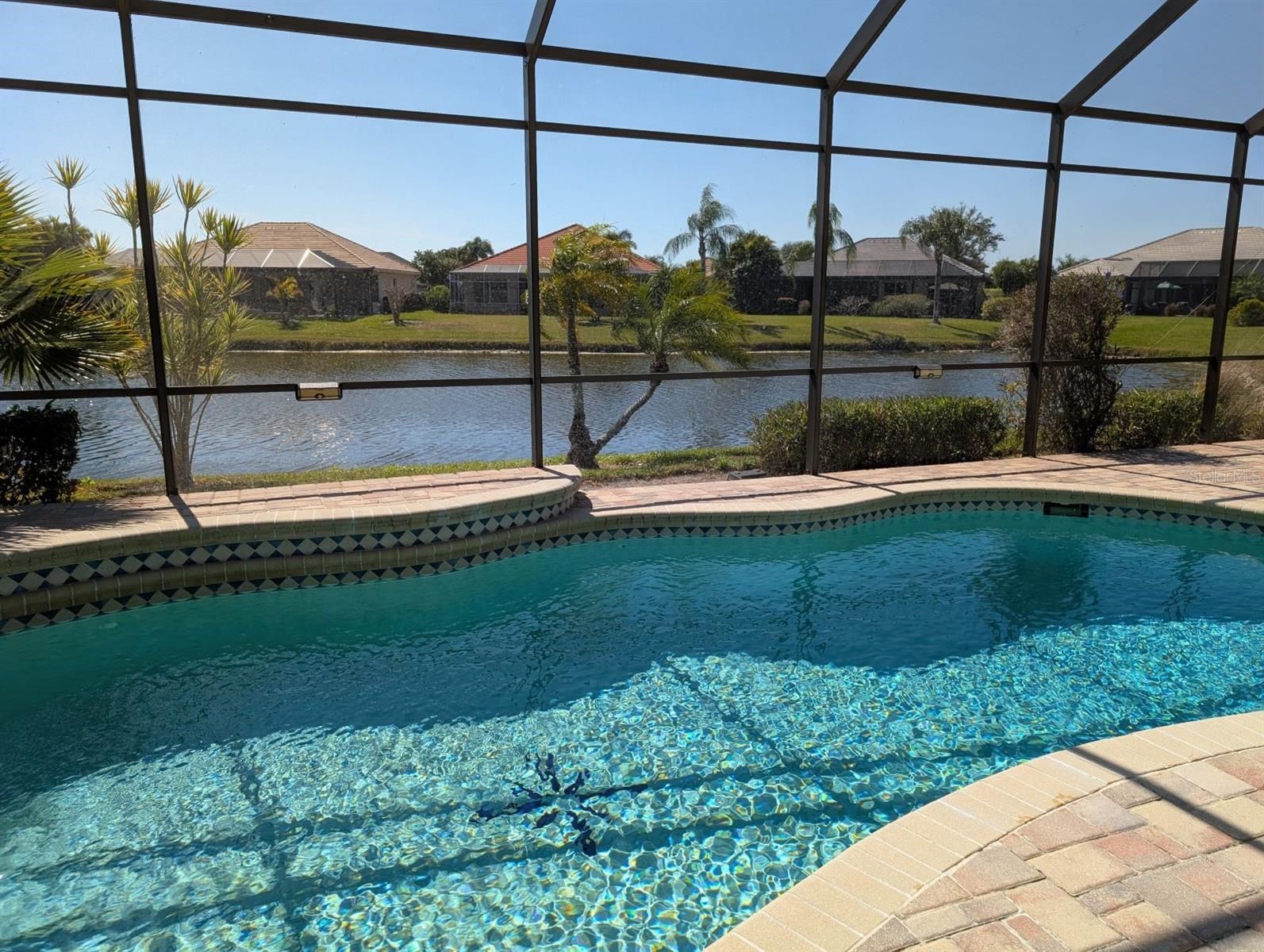NEW ROOF 2023! Lovely well-appointed "Areca" home in the desired Bay Ridge neighborhood of Riverwood. Approach the home on the beautiful paved driveway. As you enter, the newly painted formal living area leads you into the updated eat in kitchen with granite counter tops, new backsplash and stainless steel appliances. The open concept family room boasts a sleek and stylish built-in entertainment center for organizing your media equipment and TV. Plantation shutters allow for plenty of natural light. The sliding glass doors will lead you to the expansive resurfaced paved lanai with an inviting pool, water fall and relaxing water view. The primary bedroom with access to the lanai offers a updated modern en-suite bathroom. A split floor plan, the guest bedrooms with a jack-and-jill bathroom, provides privacy for you and your guests. The laundry room is complete with a newer washer/dryer. Other updates include updated flooring, an epoxy garage floor and storm shutters. There is no pool heater. Schedule a showing today and begin living the grand Florida lifestyle you have been dreaming of! Property taxes include an annual CDD fee. Riverwood stands as a premier community in Southwest Florida, offering an exquisitely landscaped setting along the tranquil Myakka River, nestled between Fort Myers and Sarasota in Port Charlotte. Spanning 1300 acres, Riverwood's master-planned community seamlessly blends natural beauty with modern living trends. Enjoy an array of lifestyle amenities, including a recreational center equipped with state-of-the-art fitness facilities, a Lap Pool and Resort Style pool, 6 hard tru tennis courts, Pickell Ball Courts, Lawn croquet, and a Dog Park, among others! Riverwood Golf Club is recognized as a Golf Digest-rated 4 ½ star Golf Course, and Riverwood Beach Club on the Gulf of Mexico offers memberships based on availability. Conveniently located near the new Sunseeker Resort, which boasts a variety of restaurants, the Tampa Rays and Atlanta Braves Spring Training facilities, Boating, World-Class Fishing, and the pristine beaches of Southwest Florida, Riverwood’s location provides easy access to a wealth of cultural and lifestyle opportunities.