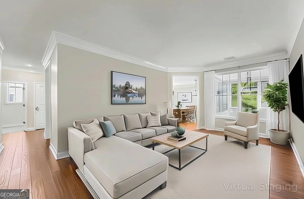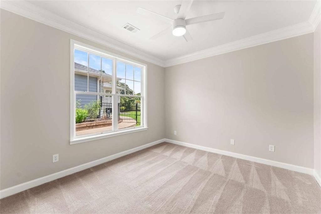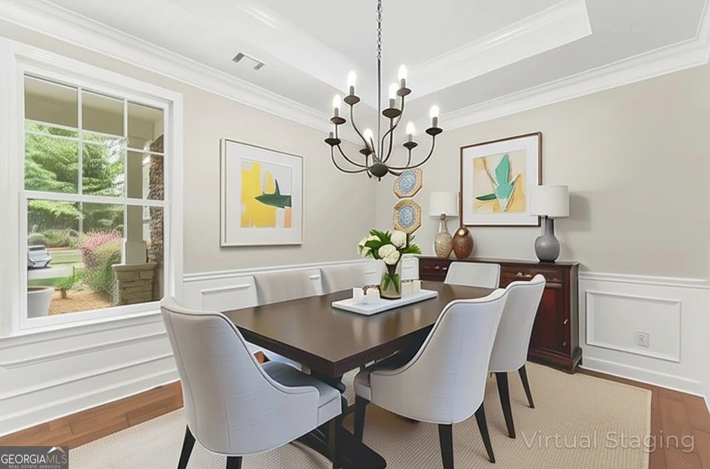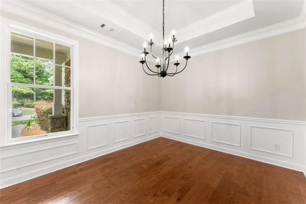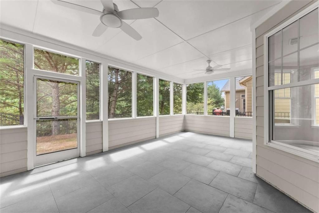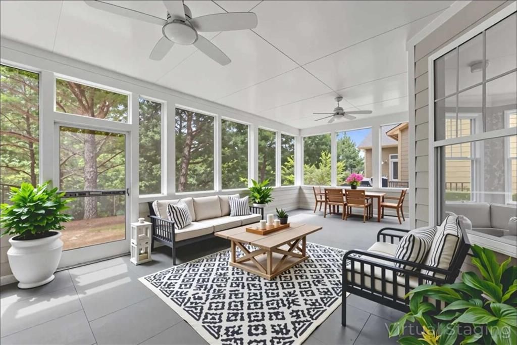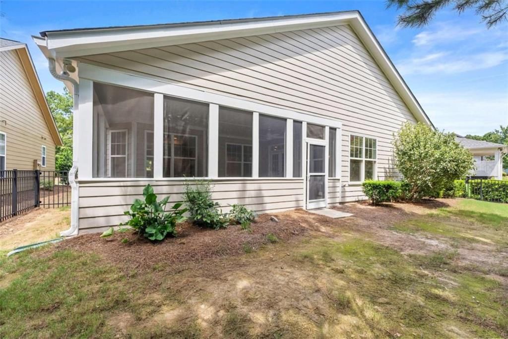 This beautifully updated home offers the rare combination of generous square footage and true single-level living-all in one of the most private and desirable areas of Cresswind at Lake Lanier, the premier 55+ active adult community. Set on a lot that backs to a tranquil, community-owned natural area and faces a quiet, tree-lined street, this home offers peaceful surroundings while still being close to the clubhouse, walking trails, and community garden. Inside, you'll find a smart, flowing layout with both formal and casual living and dining spaces. Elegant tray ceilings in the owner's suite and dining room, along with crown molding and wainscoting throughout, add a refined, high-end touch. The kitchen features granite countertops and a decorative tile backsplash, while the oversized screened-in porch invites you to relax and enjoy frequent bird-watching and deer sightings. Recent updates include a new roof, new water heater, and fresh interior and exterior paint. A full list of seller improvements is available upon request. Residents of Cresswind enjoy award-winning amenities including a 42,000-square-foot clubhouse, indoor and outdoor pools, tennis and pickleball courts, a fitness center, theater, over 120 clubs, dog park, walking trails, garden plots, and a private marina on Lake Lanier. If you're looking for gracious one-level living with space, privacy, and style, this may be the one you've been waiting for. Some images in this listing have been virtually staged to illustrate the potential use of space. All virtual staging is for visual reference only. No actual furnishings, fixtures, or improvements depicted in the staged images are present in the home.