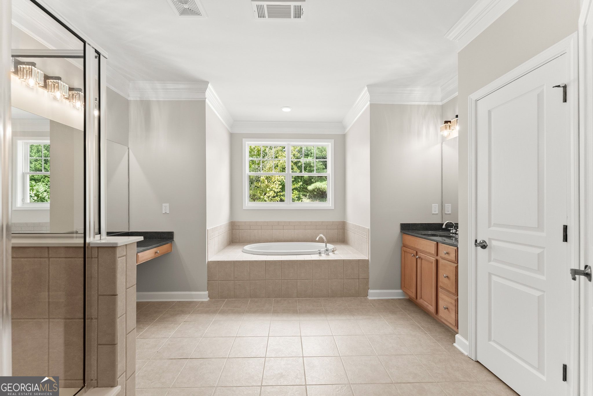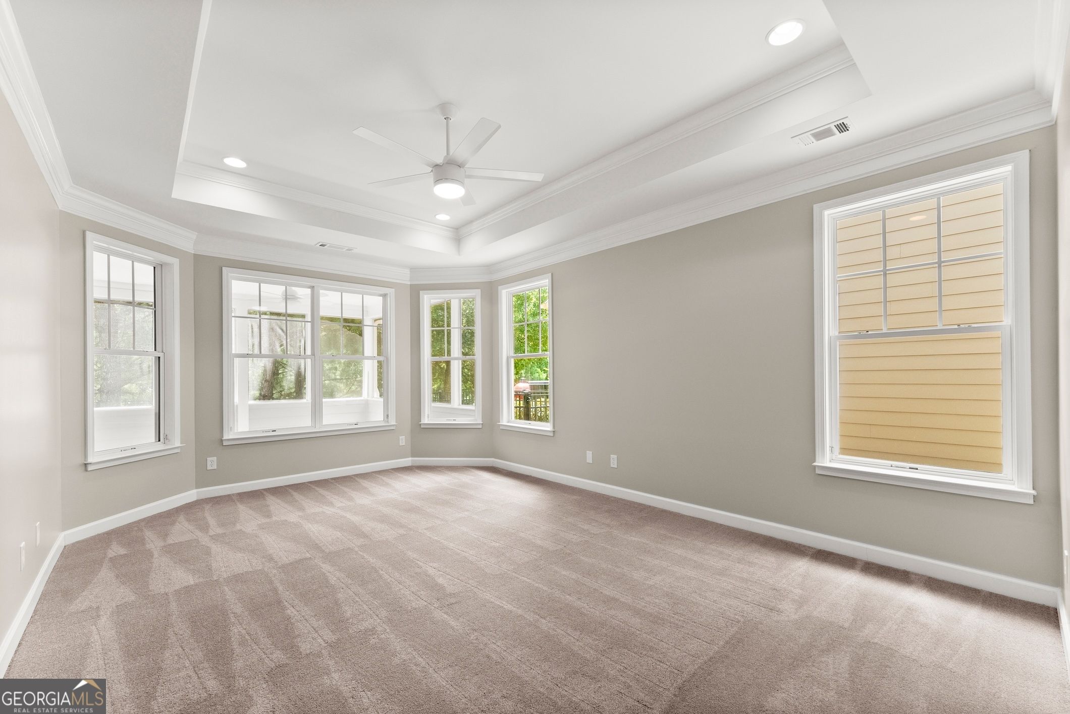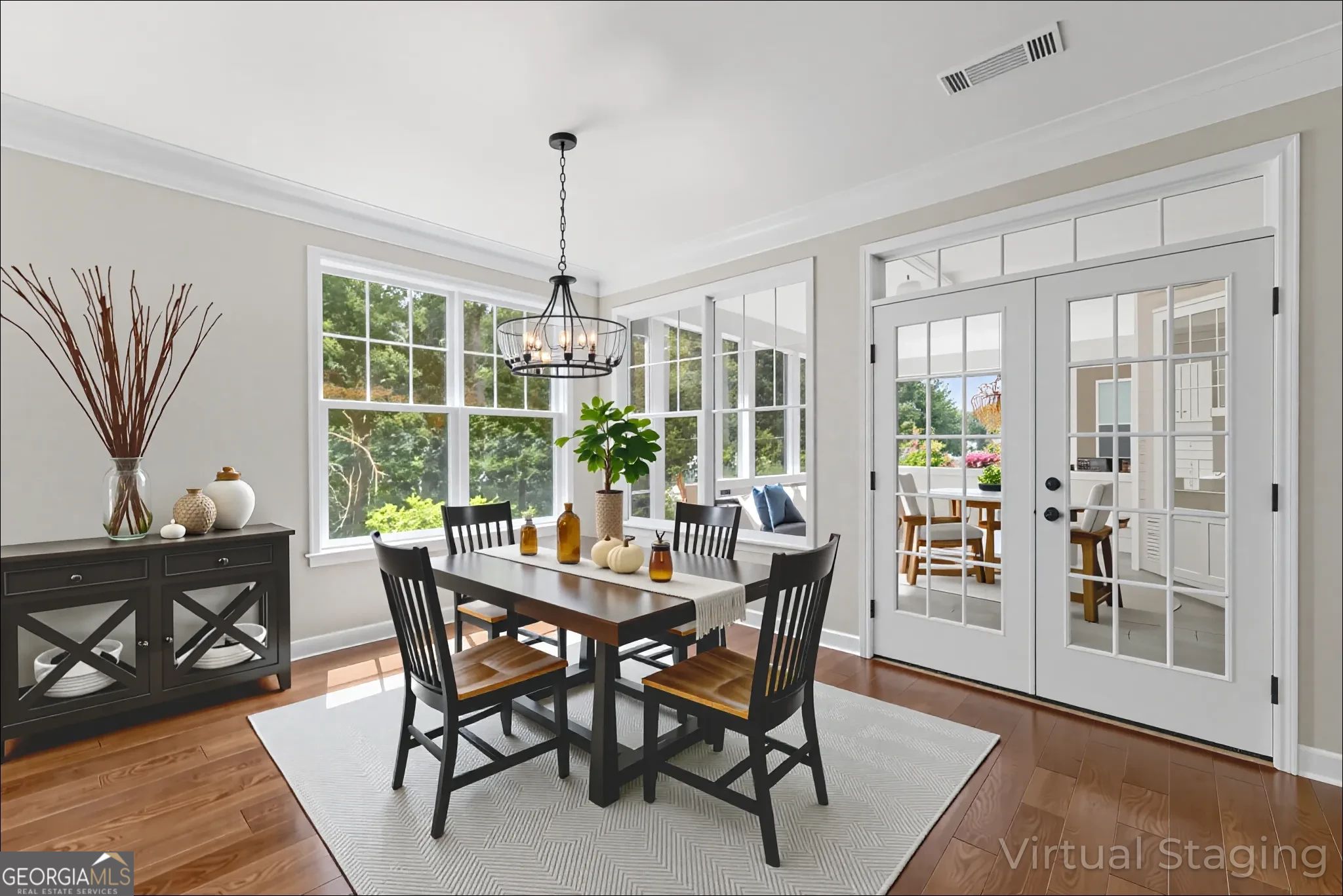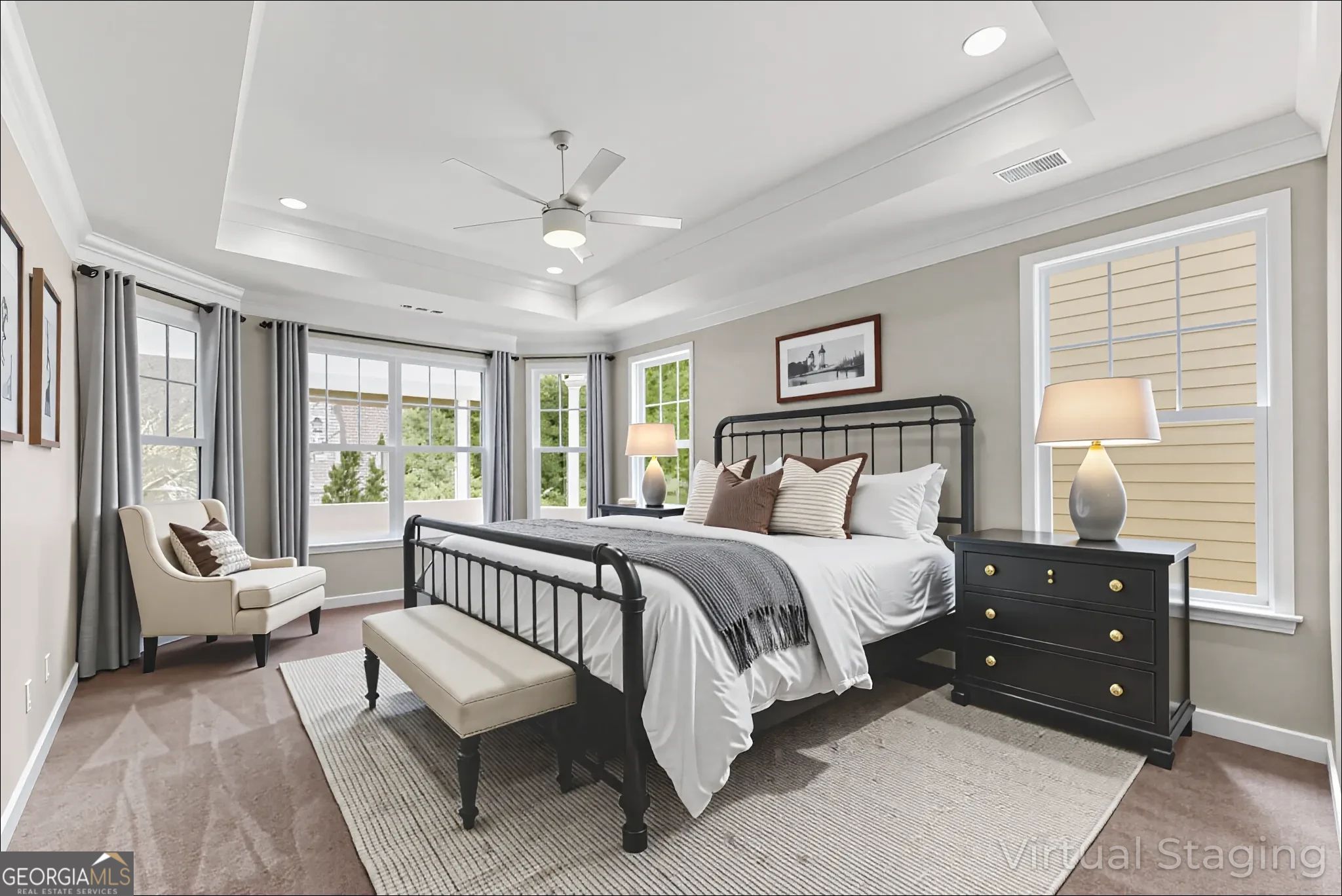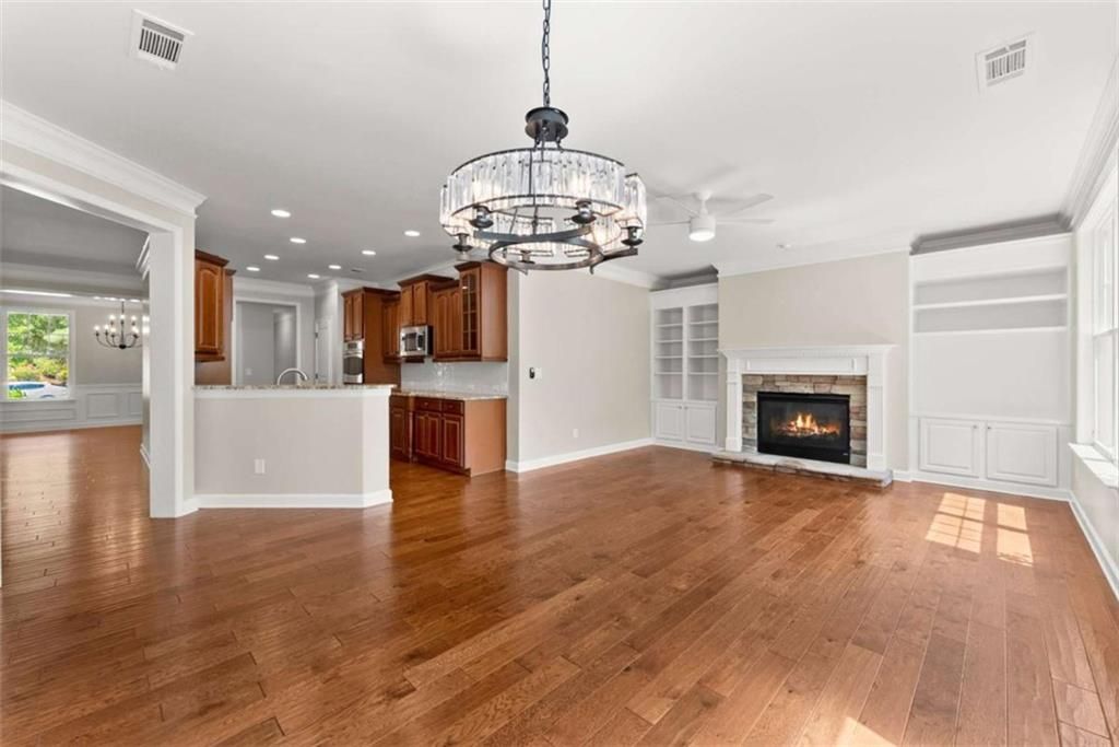 This beautifully updated home offers the rare combination of generous square footage and true single-level living-all in one of the most private and desirable areas of Cresswind at Lake Lanier, the premier 55+ active adult community. Set on a lot that backs to a tranquil, community-owned natural area and faces a quiet, tree-lined street, this home offers peaceful surroundings while still being close to the clubhouse, walking trails, and community garden. Inside, you'll find a smart, flowing layout with both formal and casual living and dining spaces. Elegant tray ceilings in the owner's suite and dining room, along with crown molding and wainscoting throughout, add a refined, high-end touch. The kitchen features granite countertops and a decorative tile backsplash, while the oversized screened-in porch invites you to relax and enjoy frequent bird-watching and deer sightings. Recent updates include a new roof, new water heater, and fresh interior and exterior paint. A full list of seller improvements is available upon request. Residents of Cresswind enjoy award-winning amenities including a 42,000-square-foot clubhouse, indoor and outdoor pools, tennis and pickleball courts, a fitness center, theater, over 120 clubs, dog park, walking trails, garden plots, and a private marina on Lake Lanier. If you're looking for gracious one-level living with space, privacy, and style, this may be the one you've been waiting for. Some images in this listing have been virtually staged to illustrate the potential use of space. All virtual staging is for visual reference only. No actual furnishings, fixtures, or improvements depicted in the staged images are present in the home.