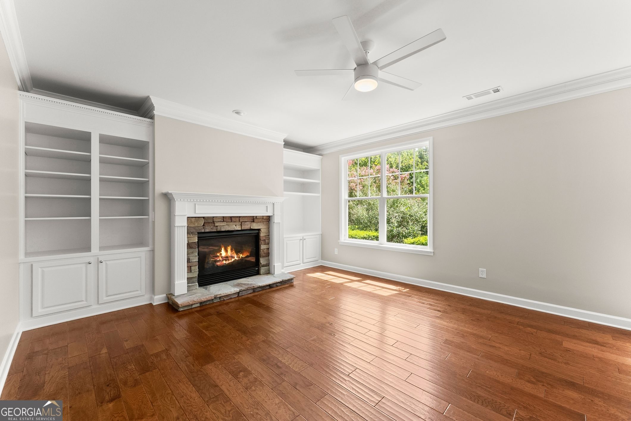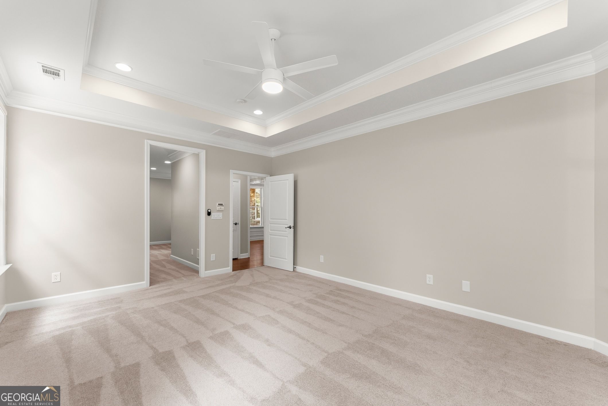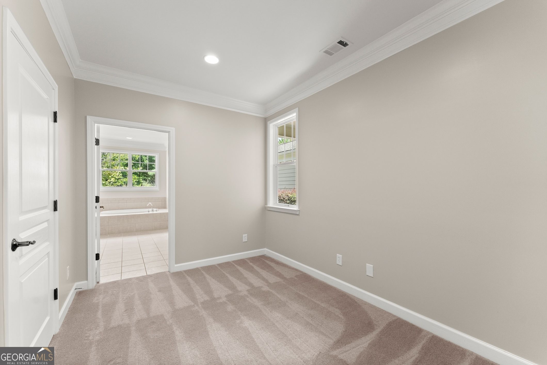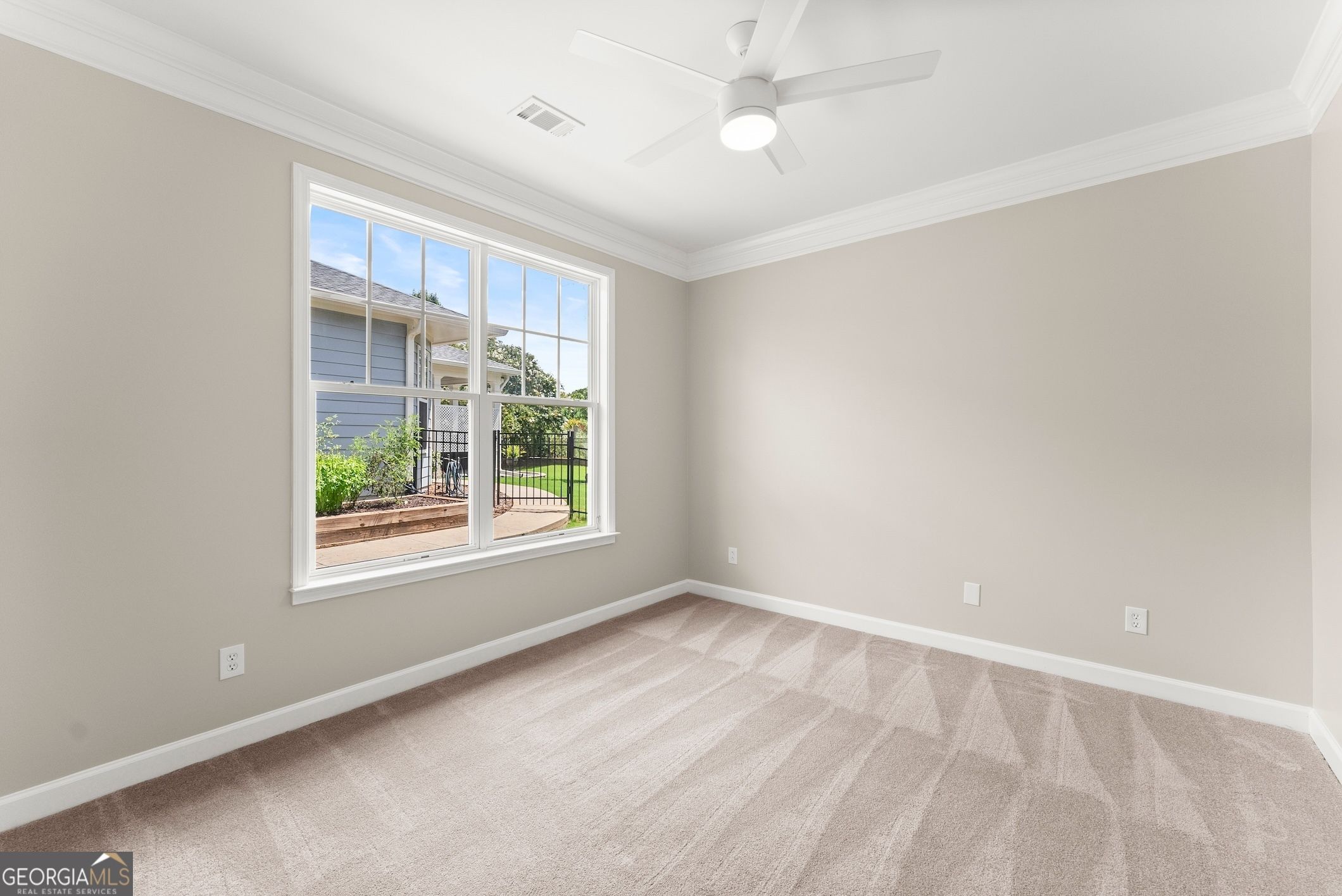 This beautifully updated home offers the rare combination of generous square footage and true single-level living-all in one of the most private and desirable areas of Cresswind at Lake Lanier, the premier 55+ active adult community. Set on a lot that backs to a tranquil, community-owned natural area and faces a quiet, tree-lined street, this home offers peaceful surroundings while still being close to the clubhouse, walking trails, and community garden. Inside, you'll find a smart, flowing layout with both formal and casual living and dining spaces. Elegant tray ceilings in the owner's suite and dining room, along with crown molding and wainscoting throughout, add a refined, high-end touch. The kitchen features granite countertops and a decorative tile backsplash, while the oversized screened-in porch invites you to relax and enjoy frequent bird-watching and deer sightings. Recent updates include a new roof, new water heater, and fresh interior and exterior paint. A full list of seller improvements is available upon request. Residents of Cresswind enjoy award-winning amenities including a 42,000-square-foot clubhouse, indoor and outdoor pools, tennis and pickleball courts, a fitness center, theater, over 120 clubs, dog park, walking trails, garden plots, and a private marina on Lake Lanier. If you're looking for gracious one-level living with space, privacy, and style, this may be the one you've been waiting for. Some images in this listing have been virtually staged to illustrate the potential use of space. All virtual staging is for visual reference only. No actual furnishings, fixtures, or improvements depicted in the staged images are present in the home.